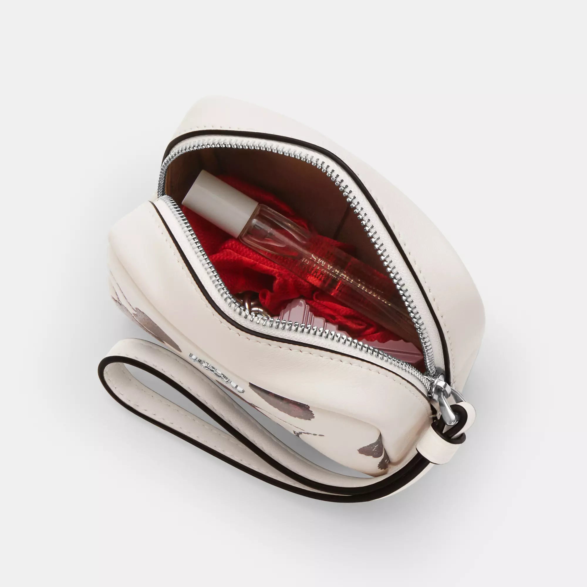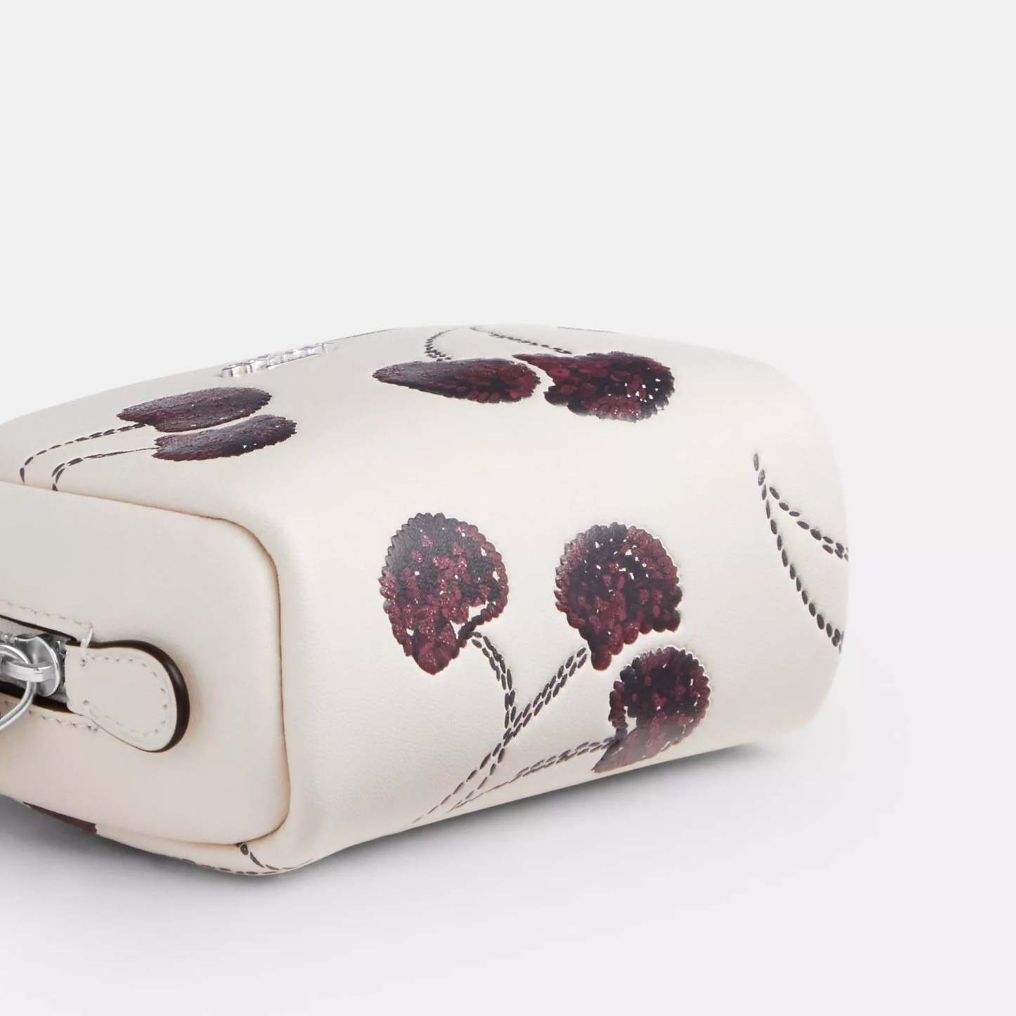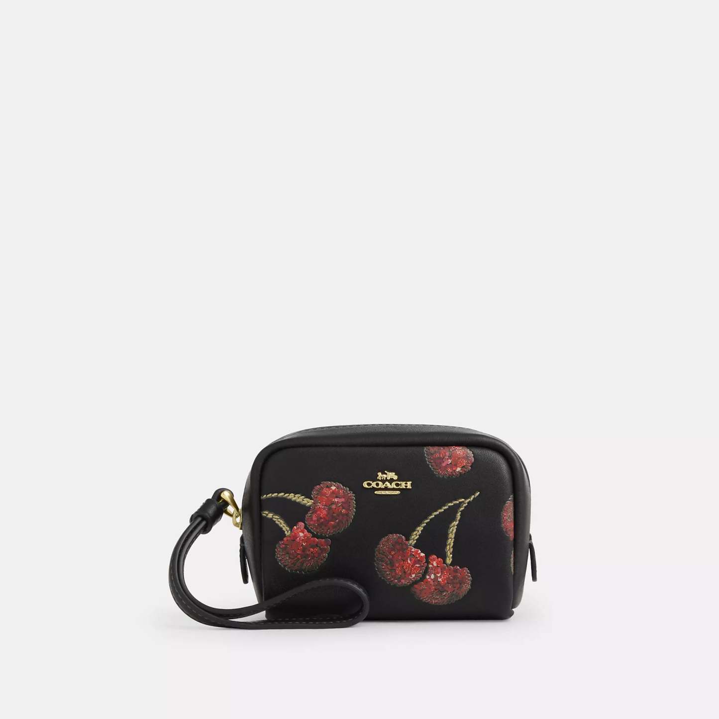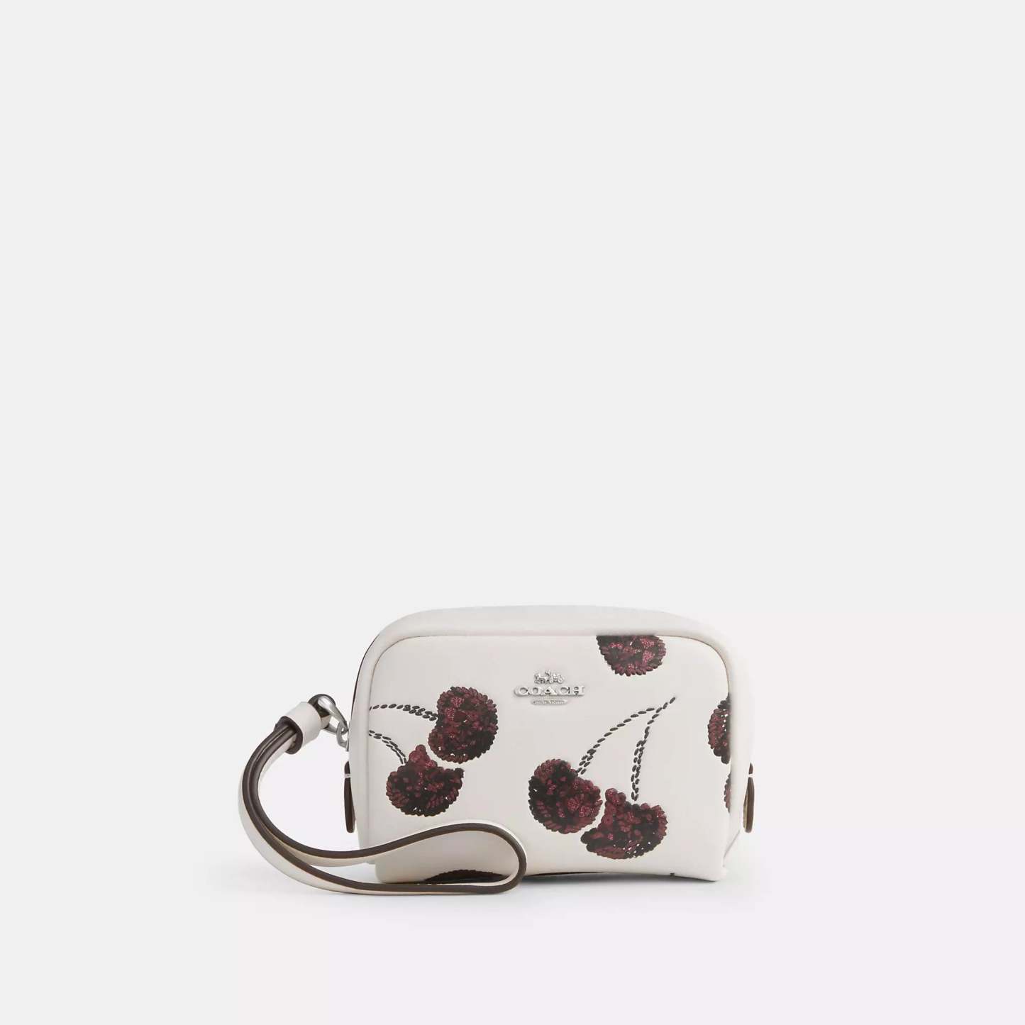 Smooth leather Zip closure fabric lining Attached wrist strap 4 1/4 (L) x 3 1/4 (H) x 2 1/4 (W) Style No. CDF01 | Coach Outlet Pouch Wristlet With Cherry Print - White, Size - Mini