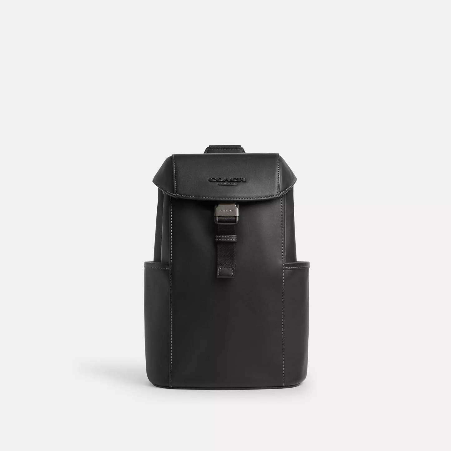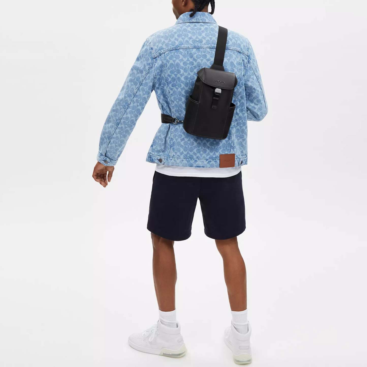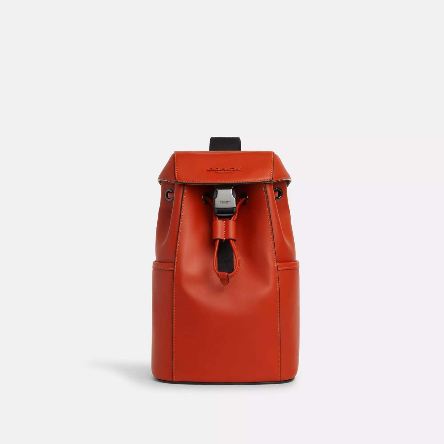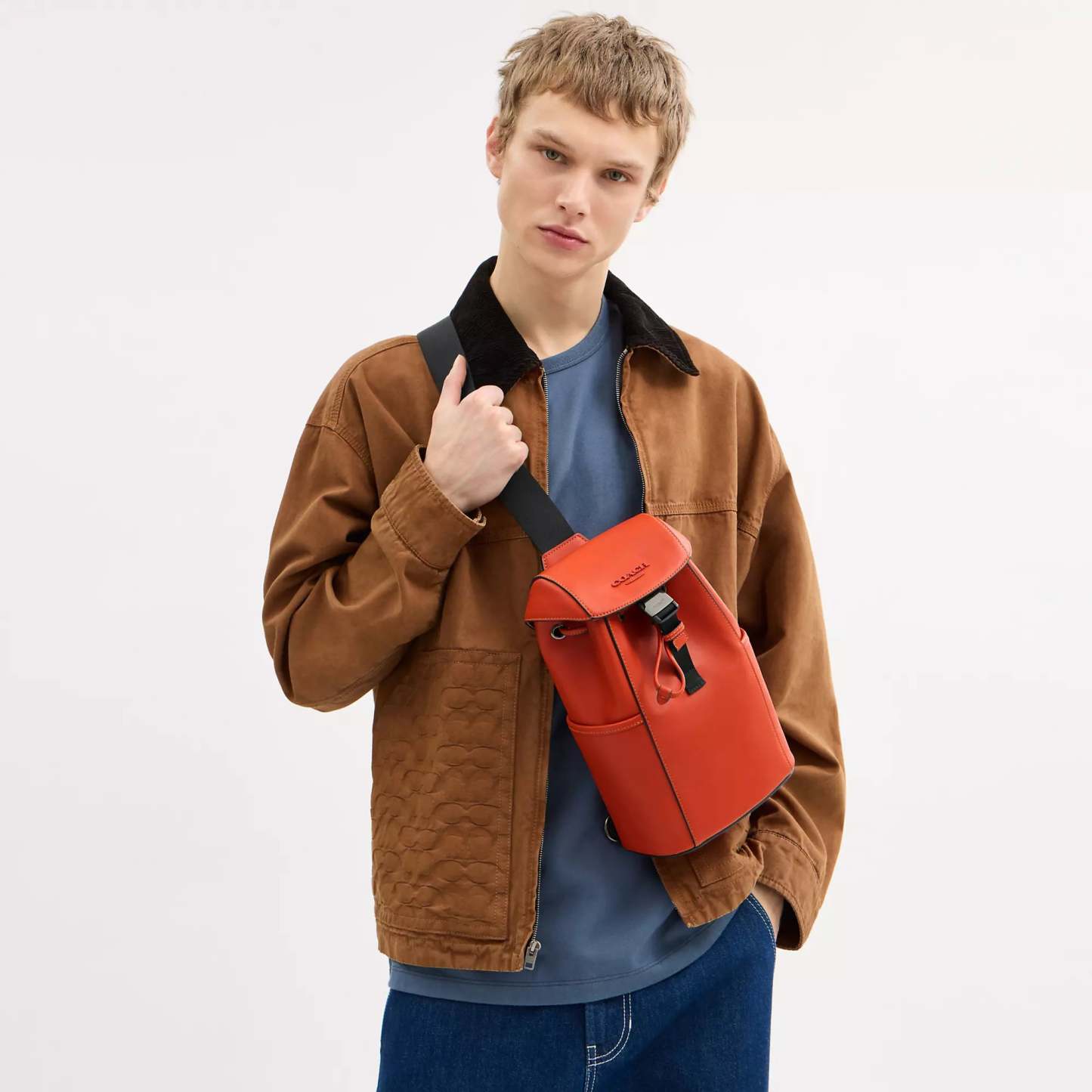 Smooth calf leather Inside zip pocket Drawstring and speedclip closures fabric lining Outside open pockets Adjustable shoulder strap with 48 length for crossbody wear (clip left or right) 7 (L) x 10 3/4 (H) x 3 3/4 (W) Style No. CU111 | Coach Outlet Racer Pack - Orange