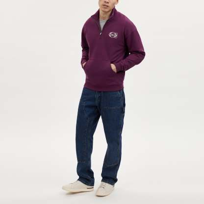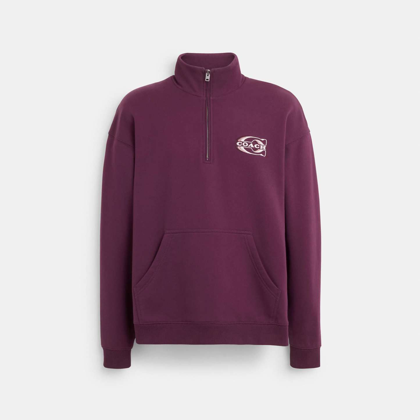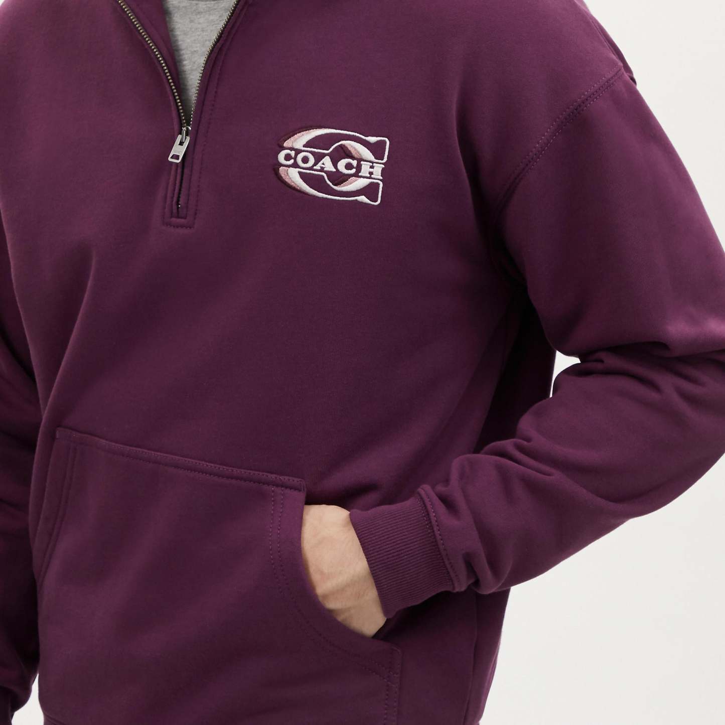 100% cotton Knit rib - 98% cotton 2% elastane Zip closure Kangaroo pocket Length - 28 Model is 6'2 (188cm) and wears a size M Style No. CK695 | Coach Outlet Relaxed Quarter Zip Sweatshirt - Purple, Size - X-Large