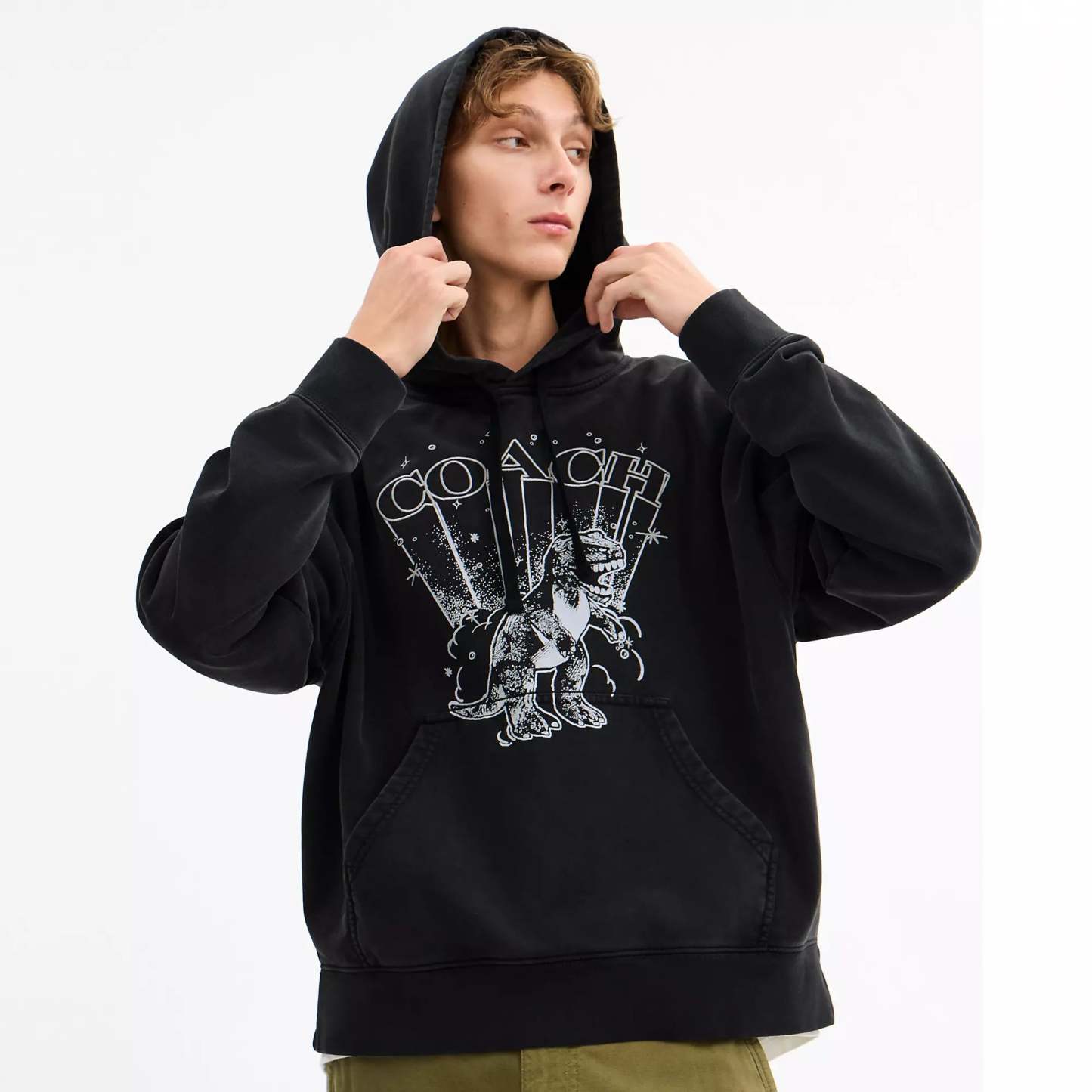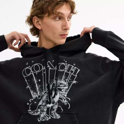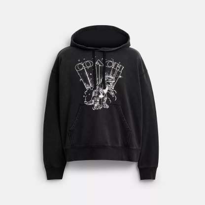 100% cotton Length - 26 Machine wash Model is 6'2 (188cm) chest 37 (94cm) waist 28 (71cm) hips 28 (71cm) and wears a size M Style No. CBV70 | Coach Outlet Rexy Hoodie - Black, Size - X-Large