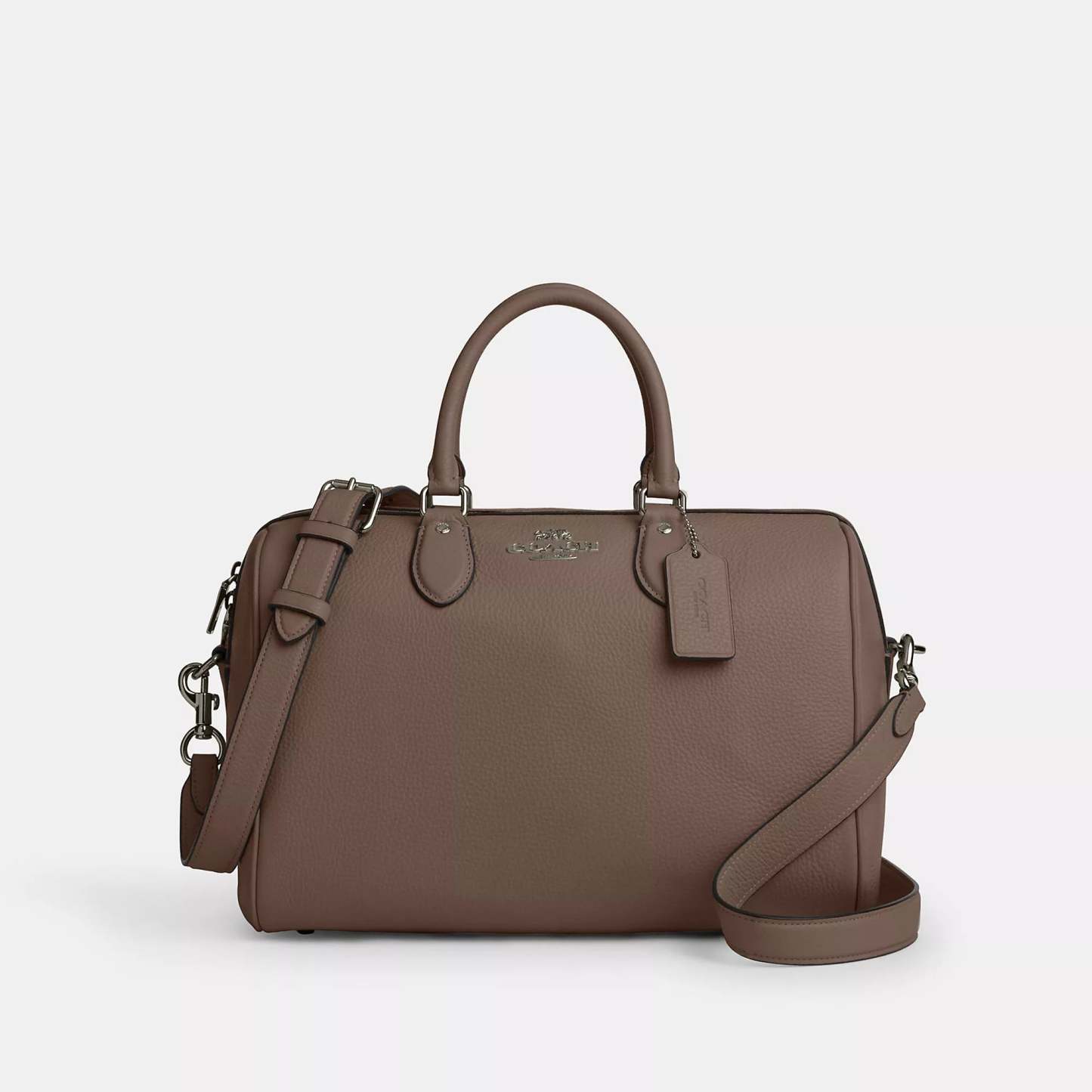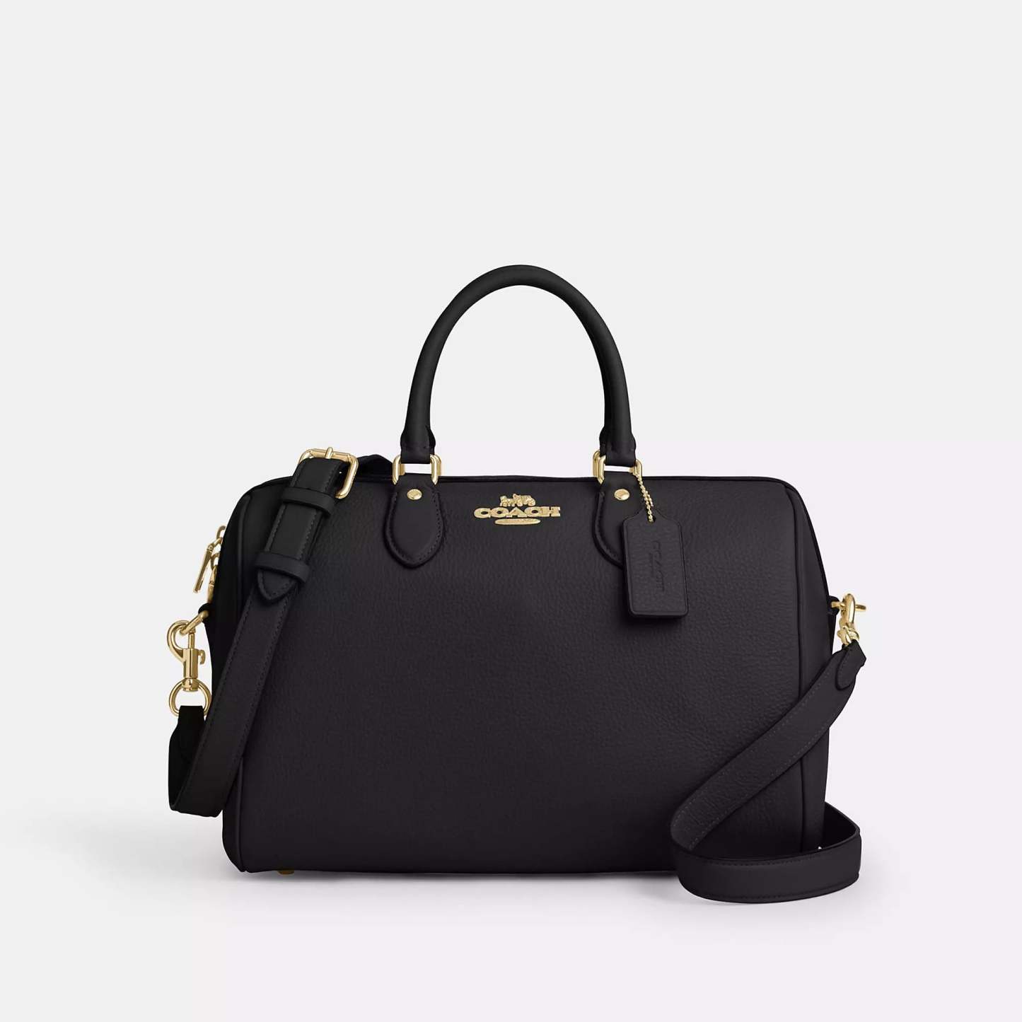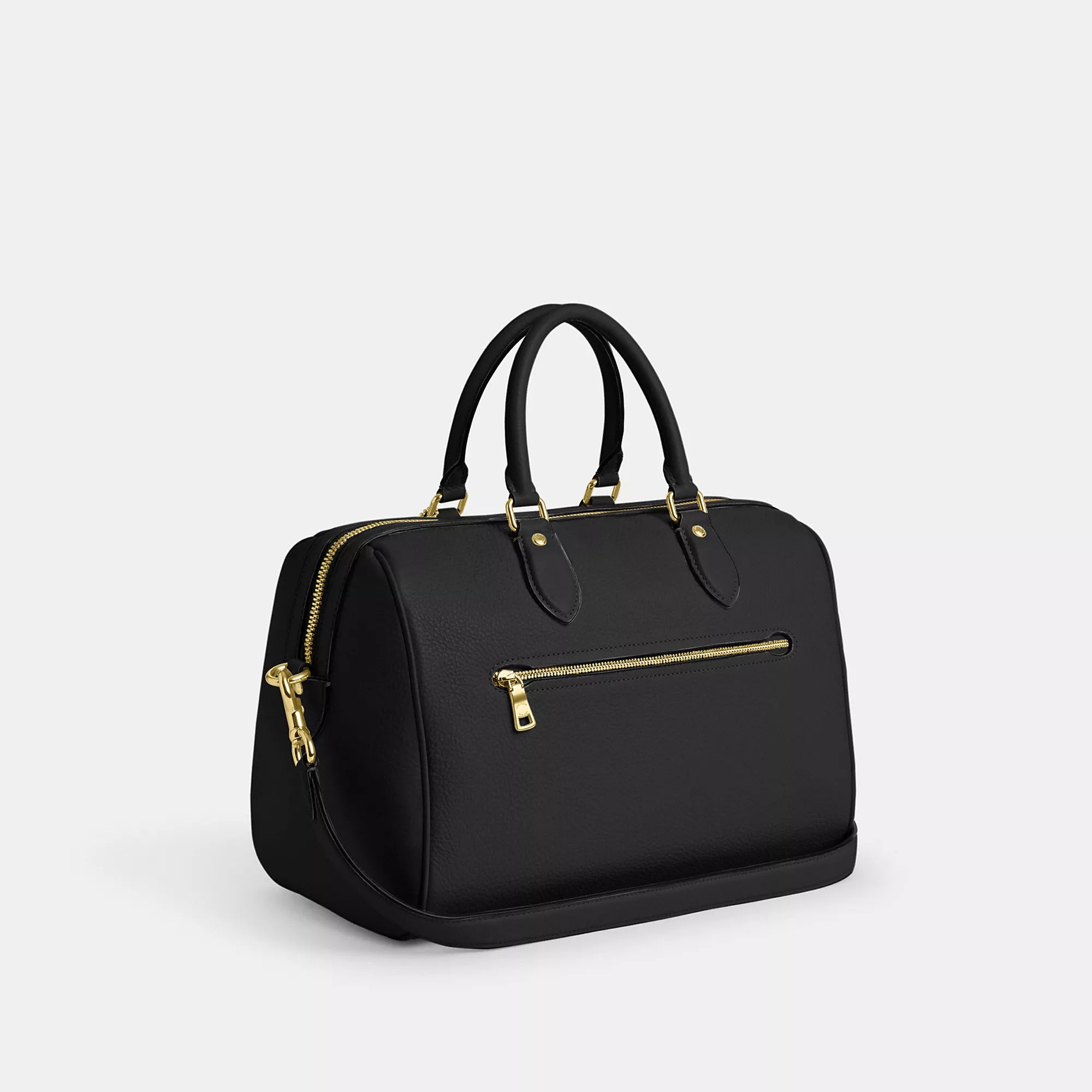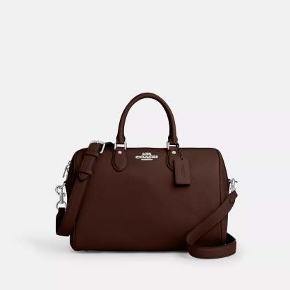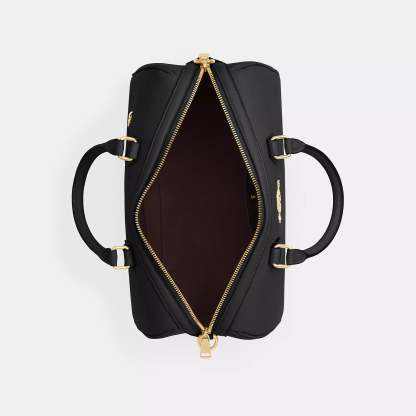 Refined pebble leather Inside snap and zip pockets Zip closure fabric lining Handle with 4 1/2 drop Outside zip pocket Detachable strap with 20 drop for shoulder or crossbody wear 11 3/4 (L) x 8 1/4 (H) x 7 (W) Style No. CV960 | Coach Outlet Rowan Large Satchel Bag - Black