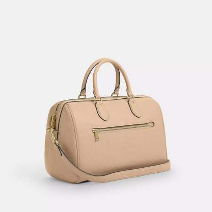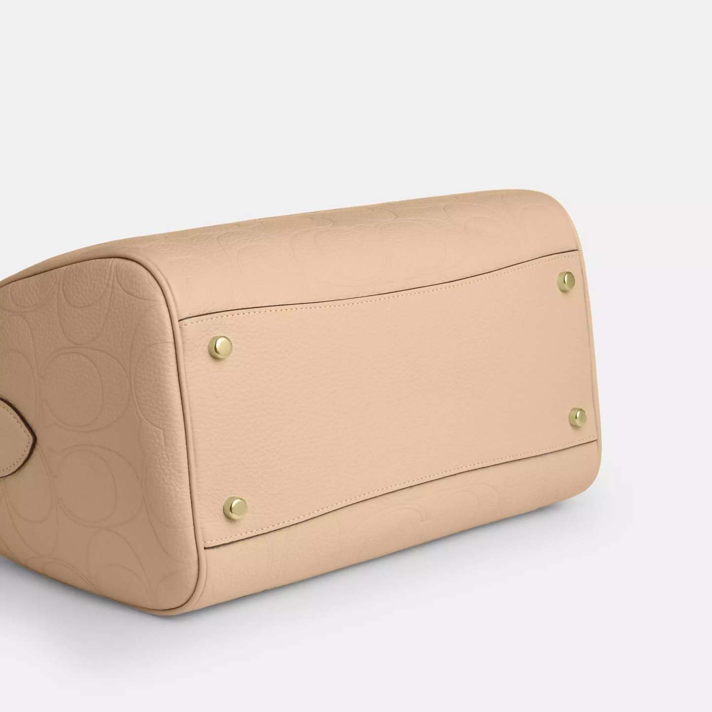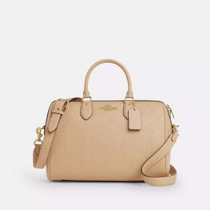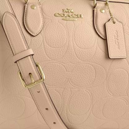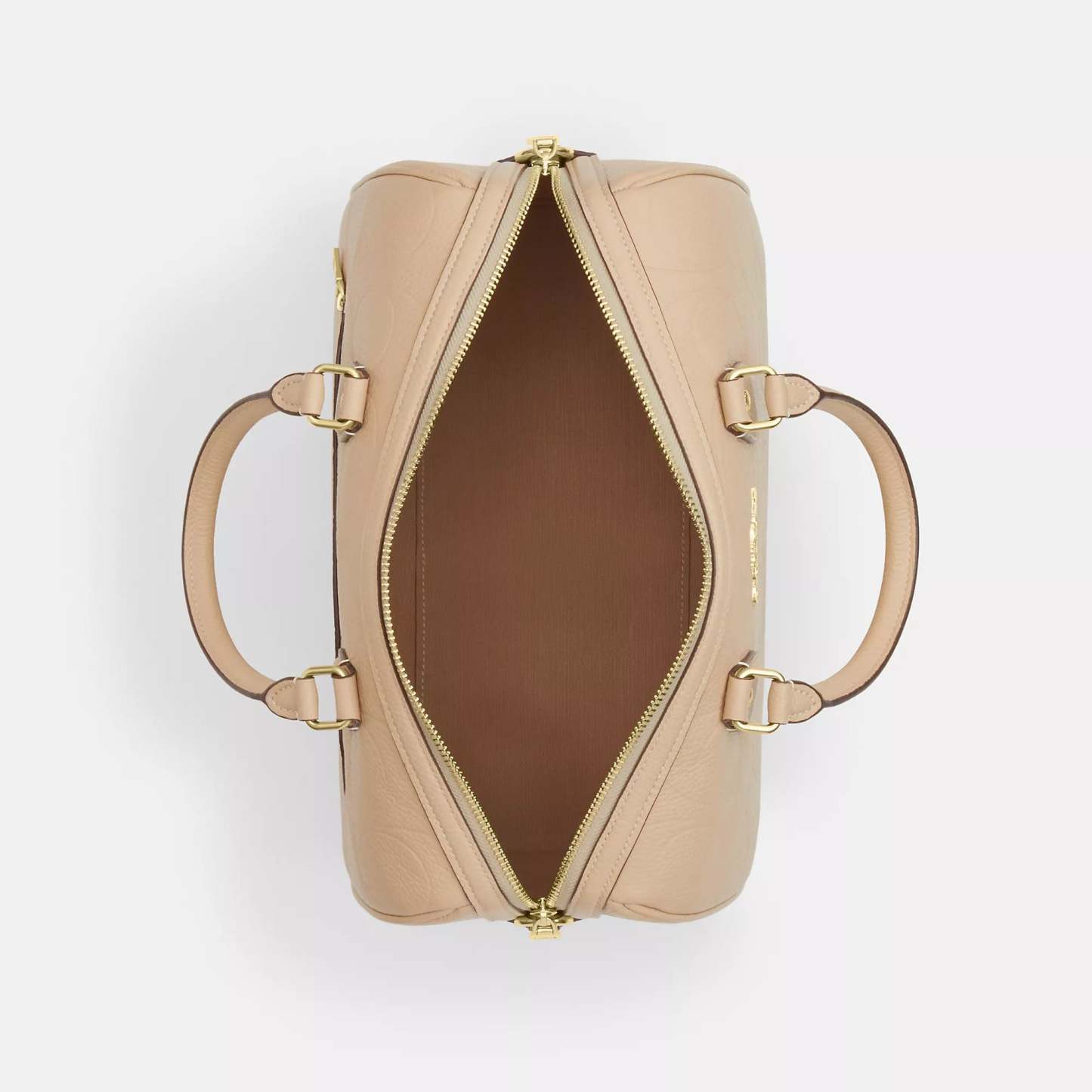 Signature pebble leather and refined pebble leather Inside snap and zip pockets Zip closure fabric lining Handle with 4 1/2 drop Outside zip pocket Detachable strap with 20 drop for shoulder or crossbody wear 11 3/4 (L) x 8 1/4 (H) x 7 (W) Style No. CCD53 | Coach Outlet Rowan Large Satchel Bag In Signature Leather - Beige