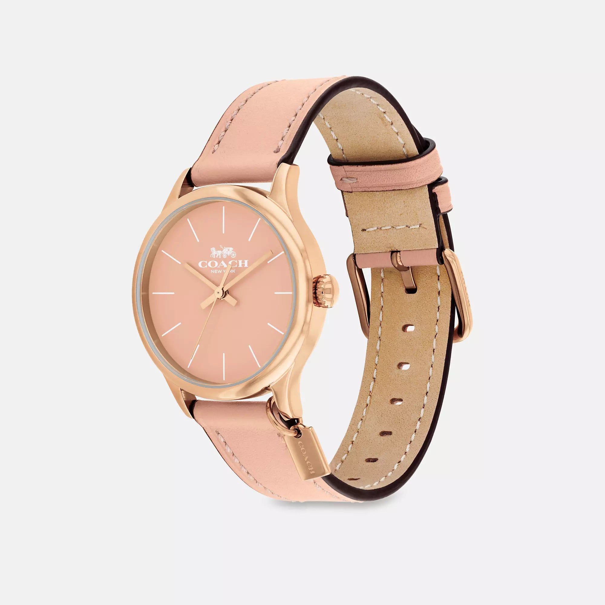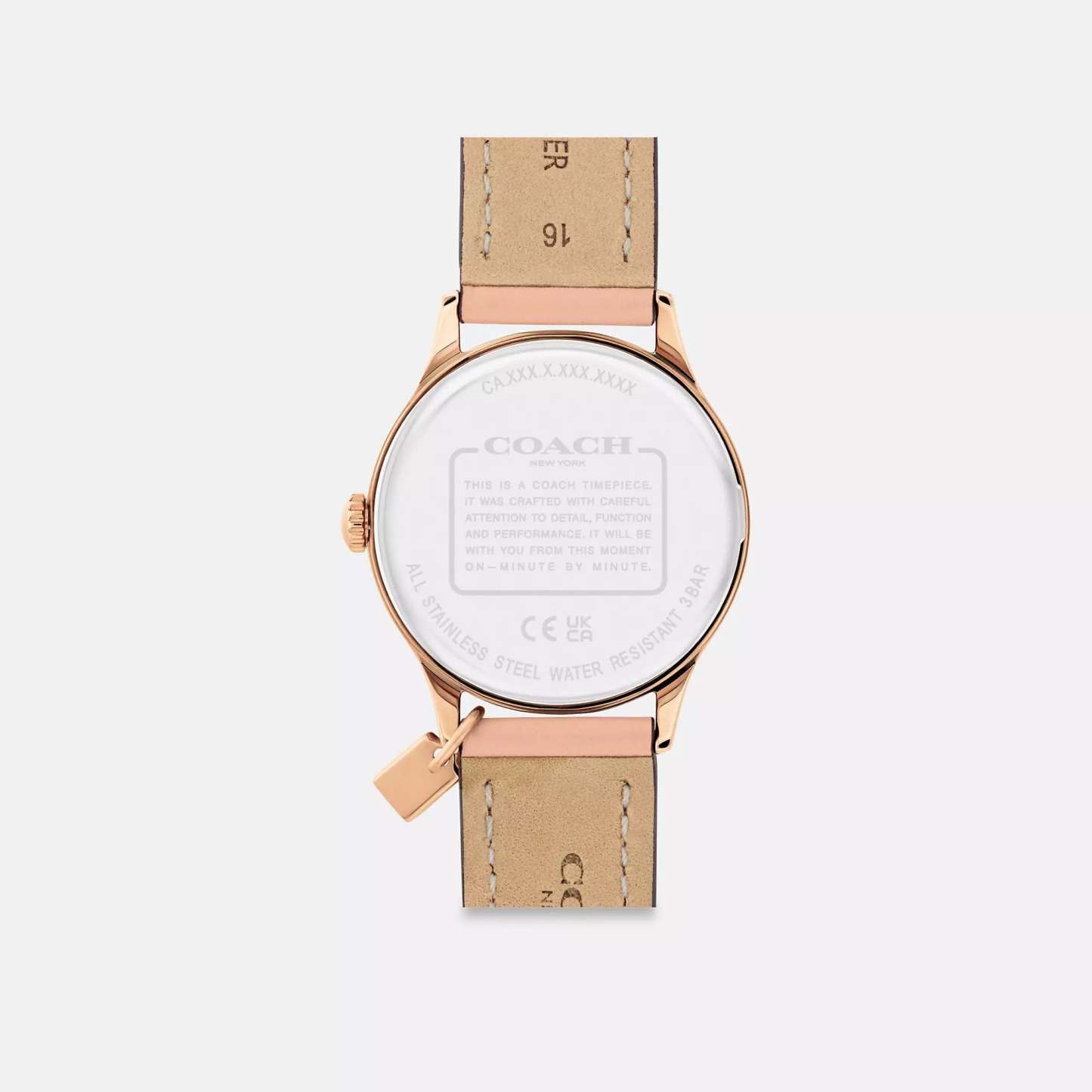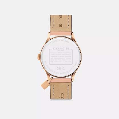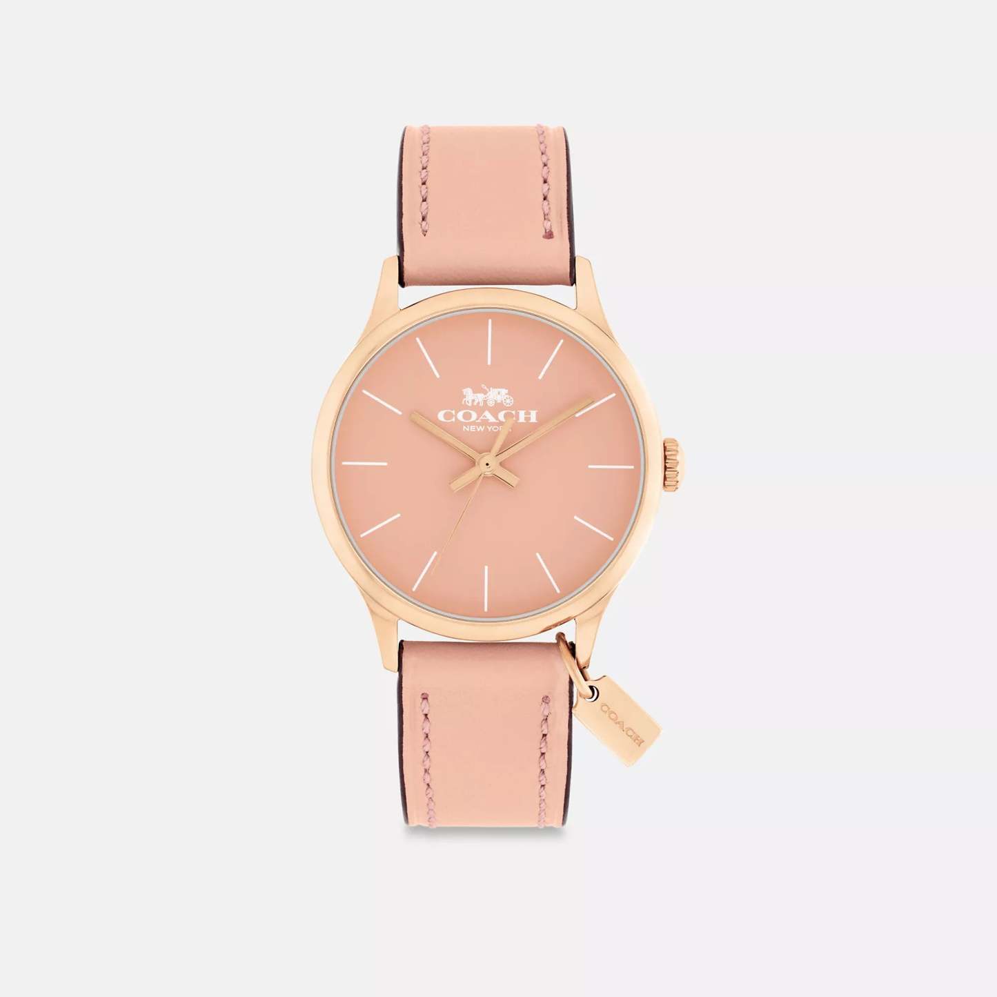 Rose gold tone case and leather strap Approx. case diameter - 32mm Mineral crystal Quartz movement Buckle closure Water-resistant to 99 feet Style No. CX691 | Coach Outlet Ruby Watch, - Pink, Size - 32 Mm