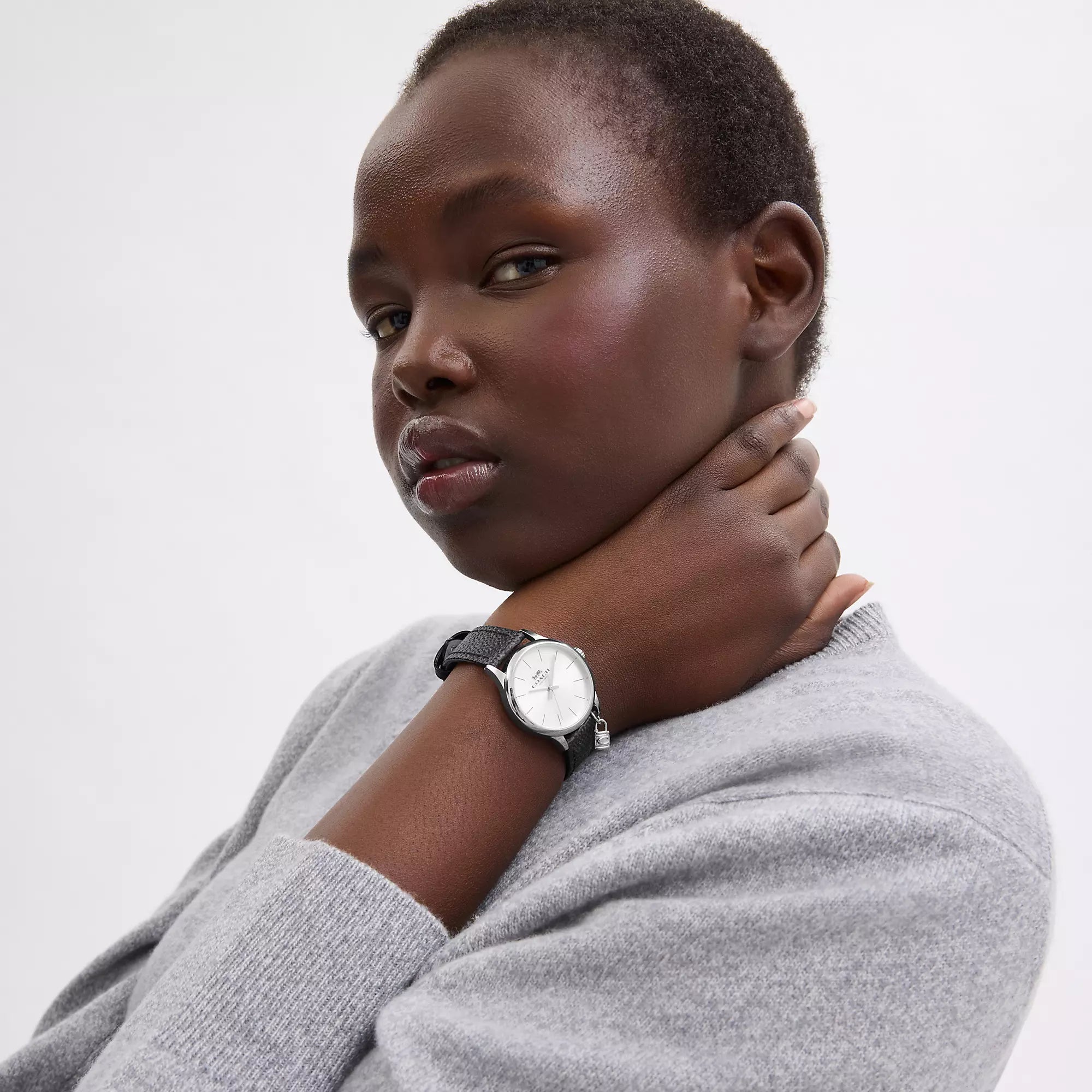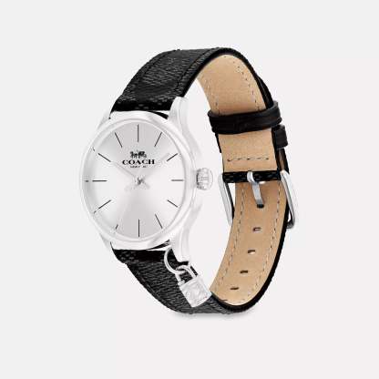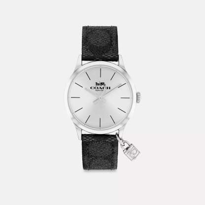 Stainless steel case and Signature coated canvas strap Approx. case diameter - 32mm Mineral crystal Quartz movement Buckle closure Water-resistant to 99 feet Style No. CX693 | Coach Outlet Ruby Watch, - Grey, Size - 32 Mm