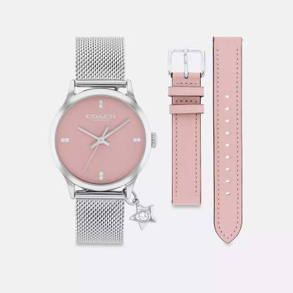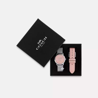 Stainless steel case and mesh bracelet Includes interchangeable leather strap with buckle closure Approx. case diameter - 32mm Mineral crystal Quartz movement Foldover clasp closure Water-resistant to 99 feet Packaged in a COACH gift box Style No. CAY94 | Coach Outlet Ruby Watch Gift Set, - Multi, Size - 32 Mm
