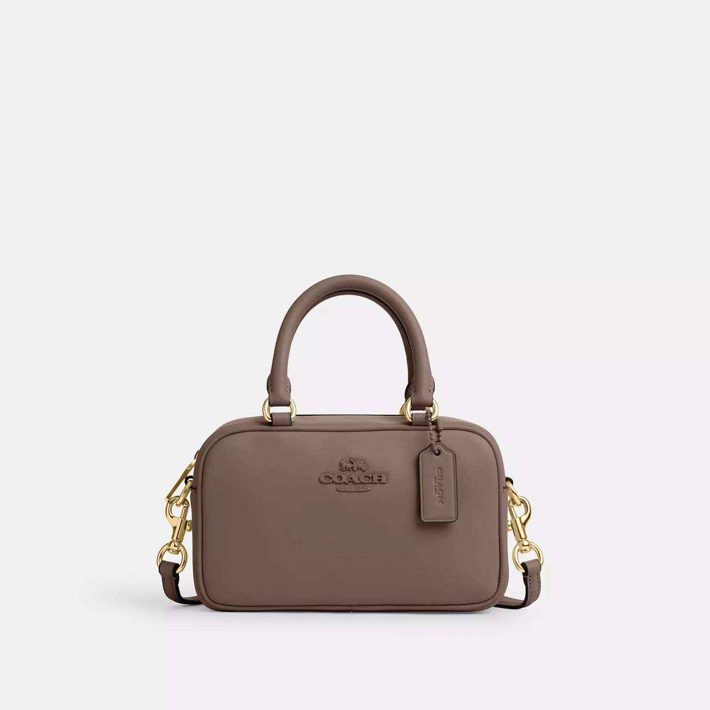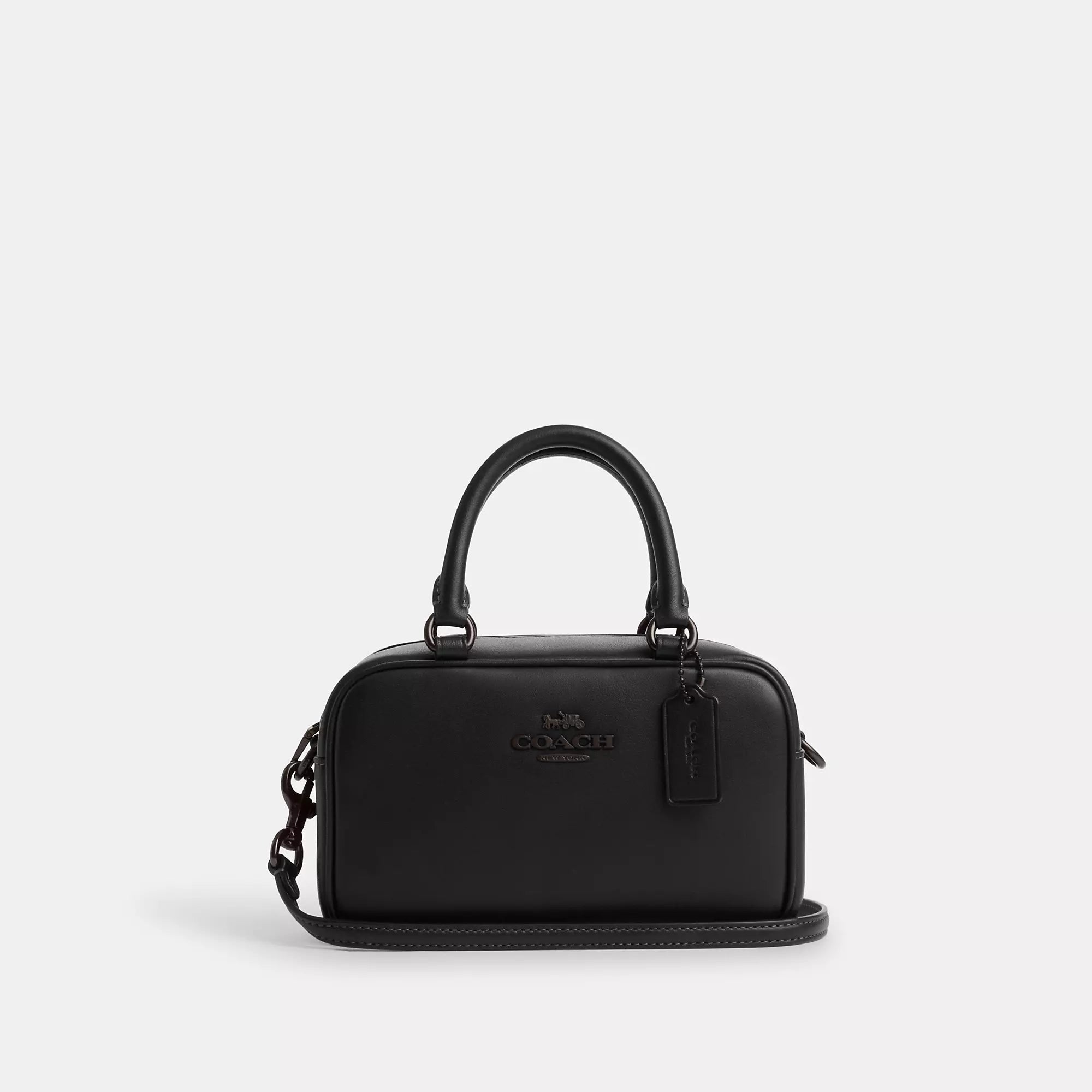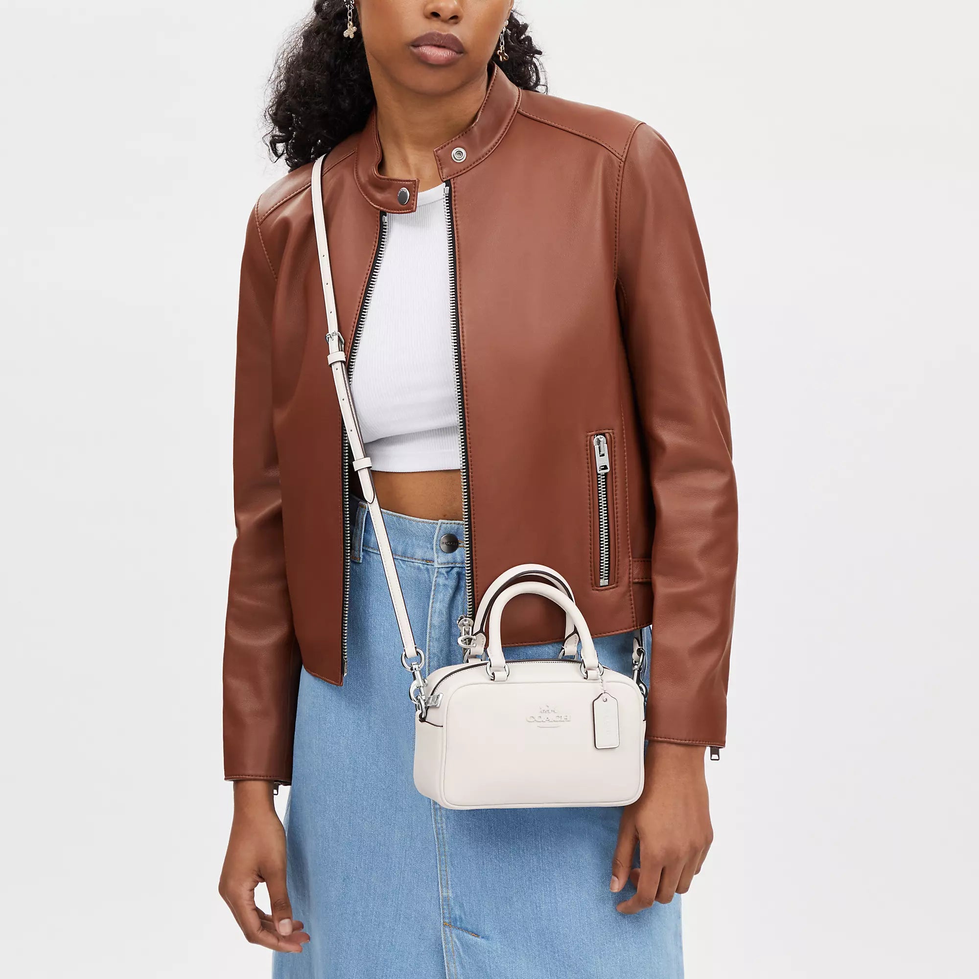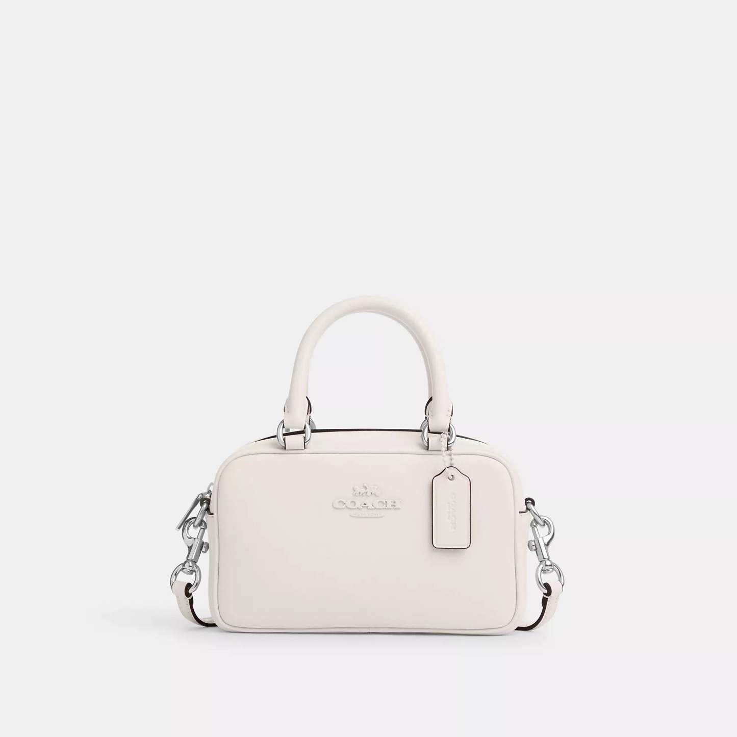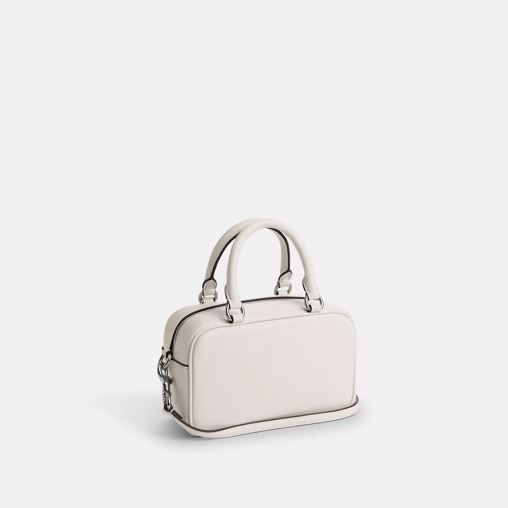 Smooth leather Two credit card slots Zip closure fabric lining Handles with 3 1/2 drop Detachable strap with 23 drop for shoulder or crossbody wear 7 1/4 (L) x 5 (H) x 2 3/4 (W) Style No. CT776 | Coach Outlet Satchel Crossbody - White