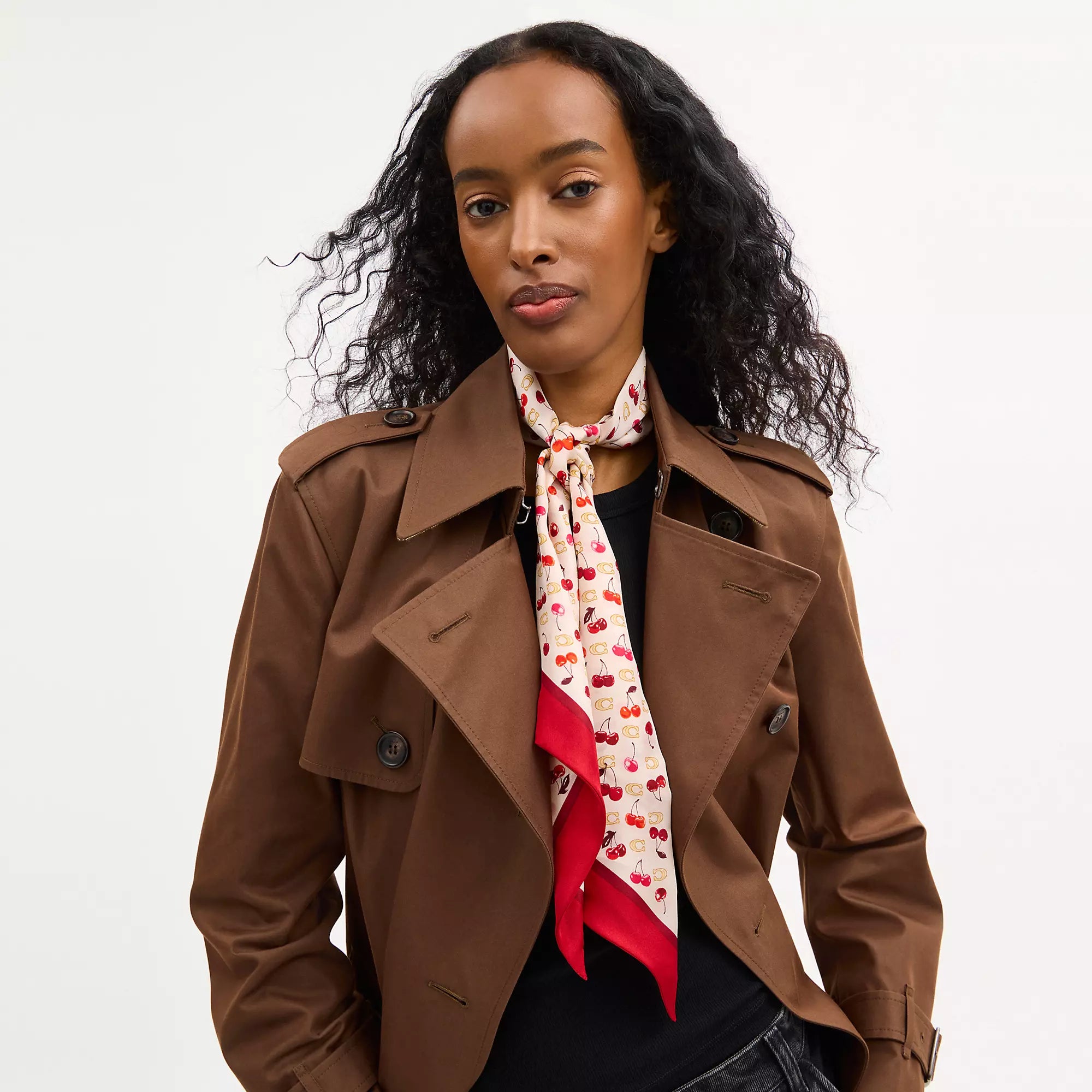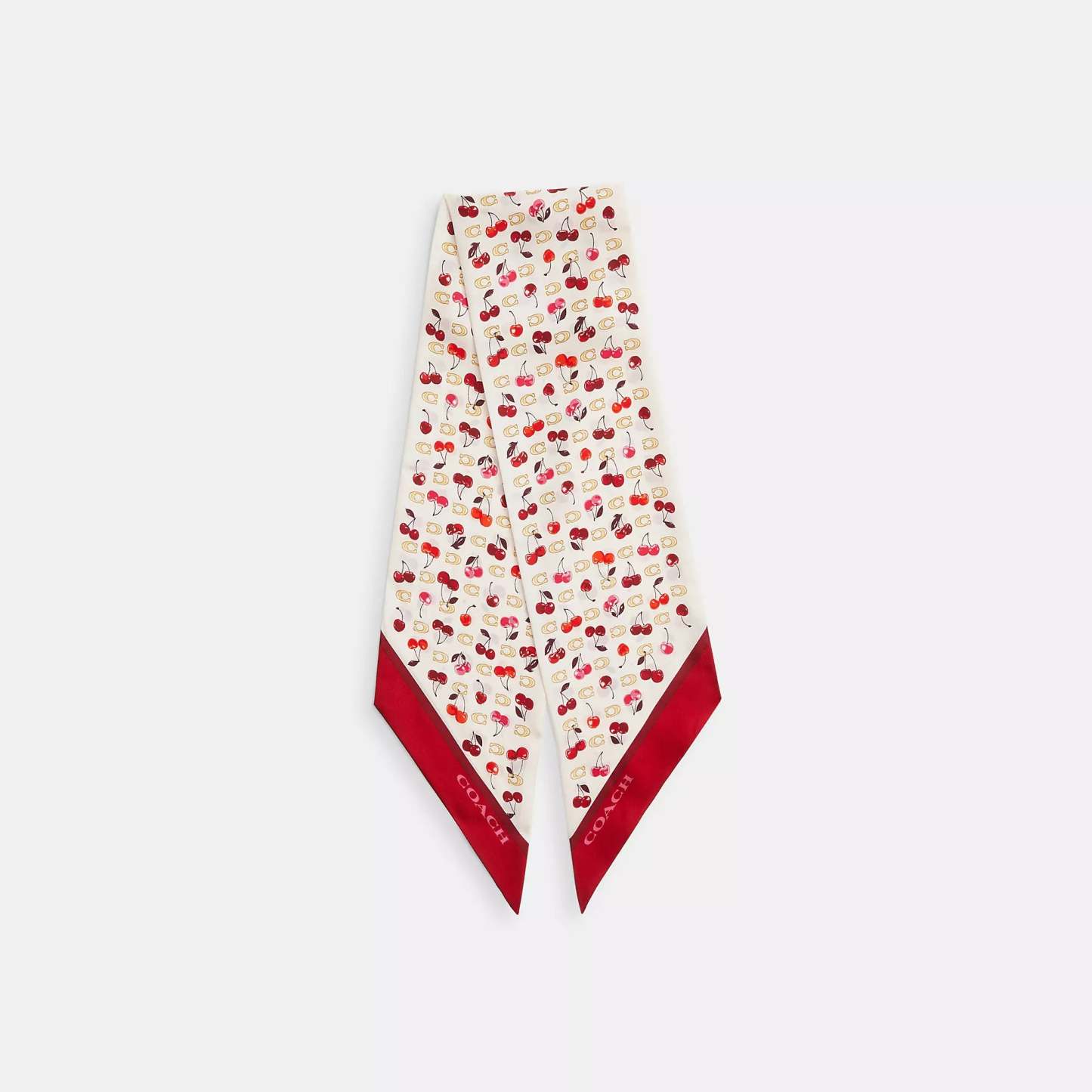 100% silk 50 x 5 Style No. CDG77 | Coach Outlet Sculpted C Cherries Print Silk Wide Skinny Scarf - White
