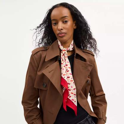 Outlet Sculpted C Cherries Print Silk Wide Skinny Scarf