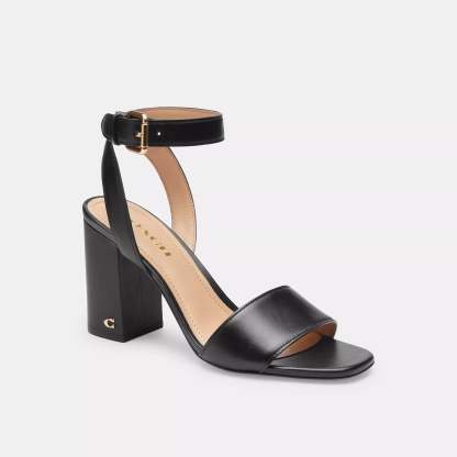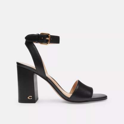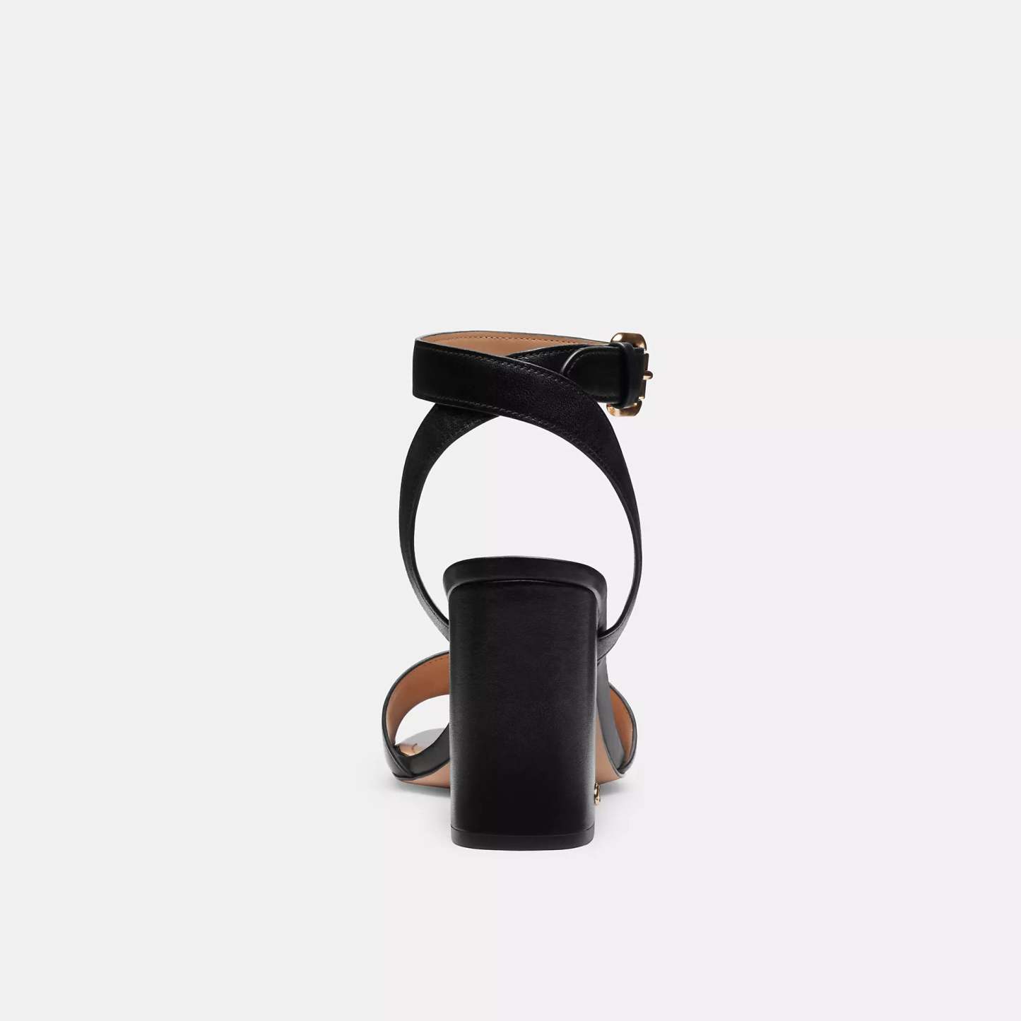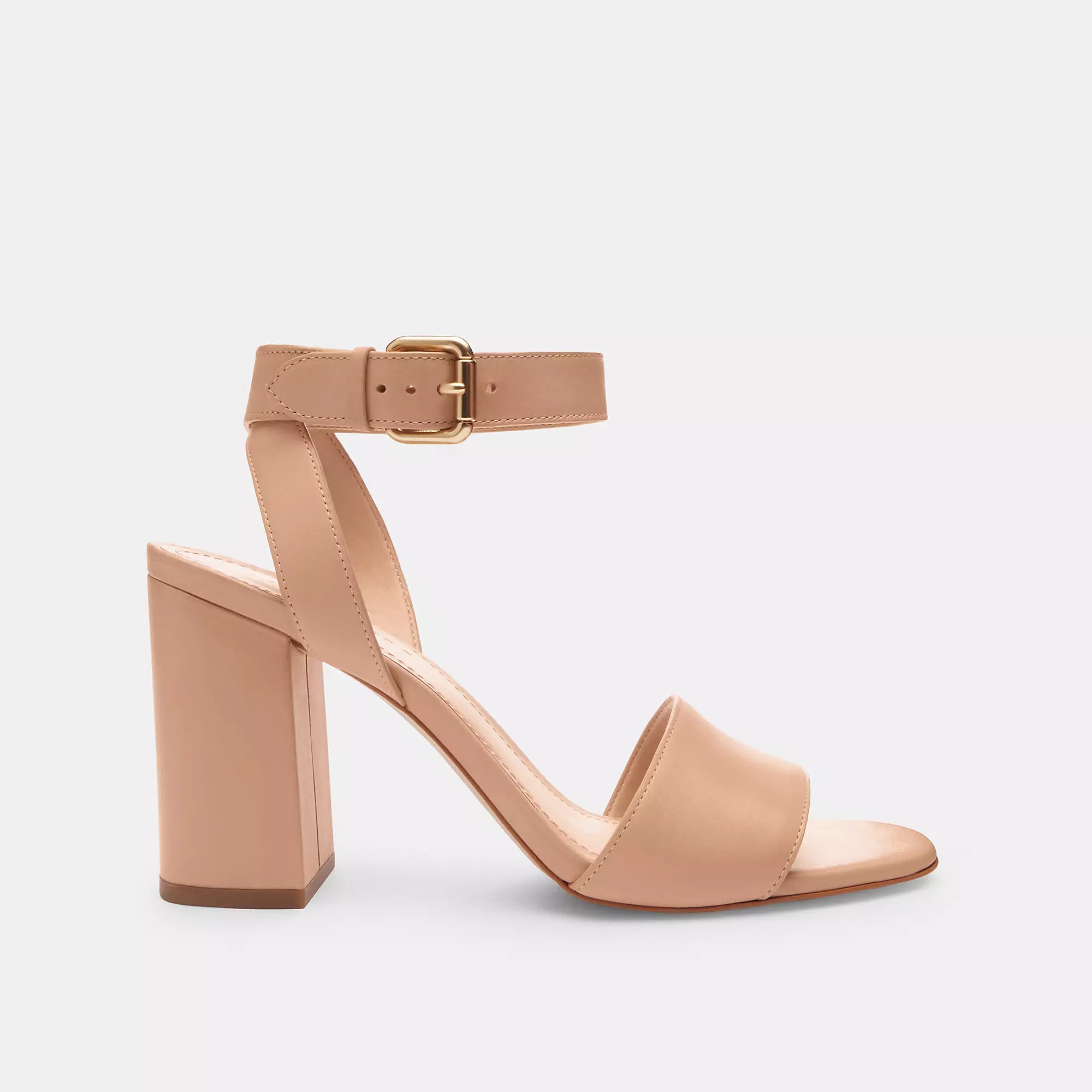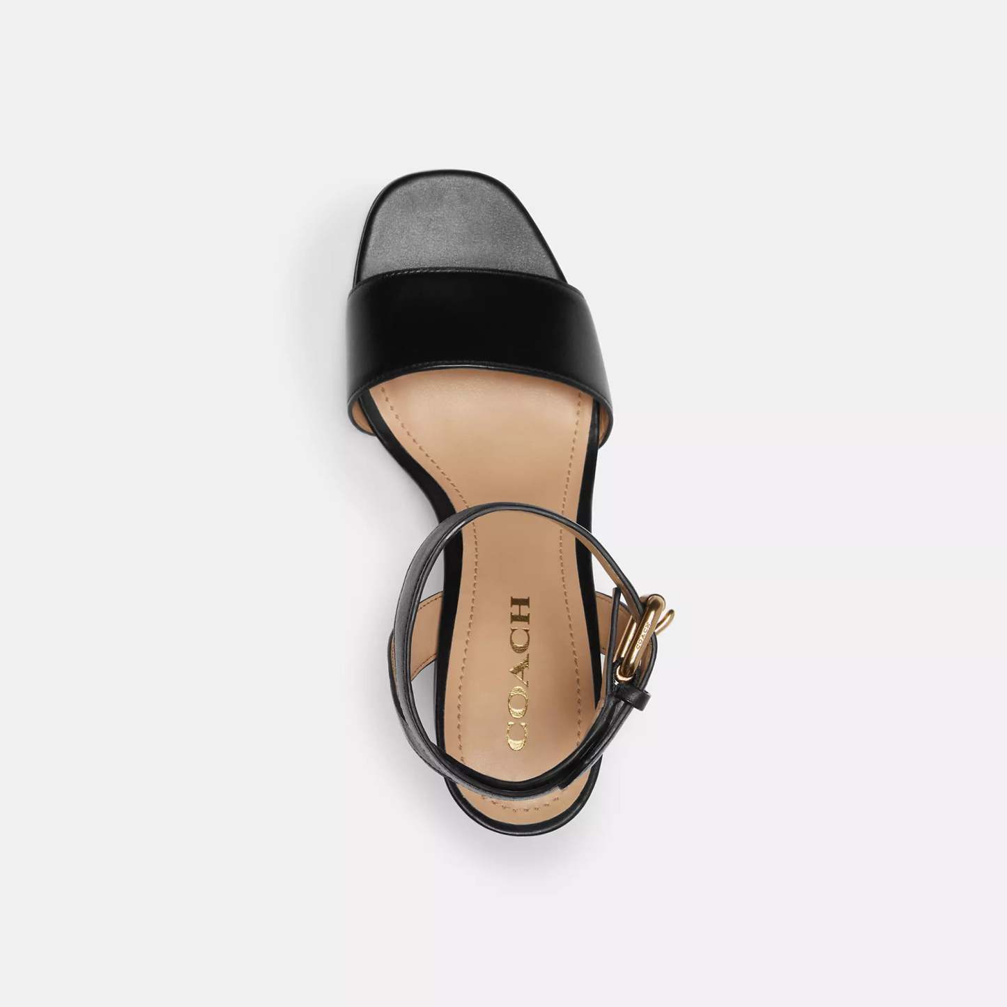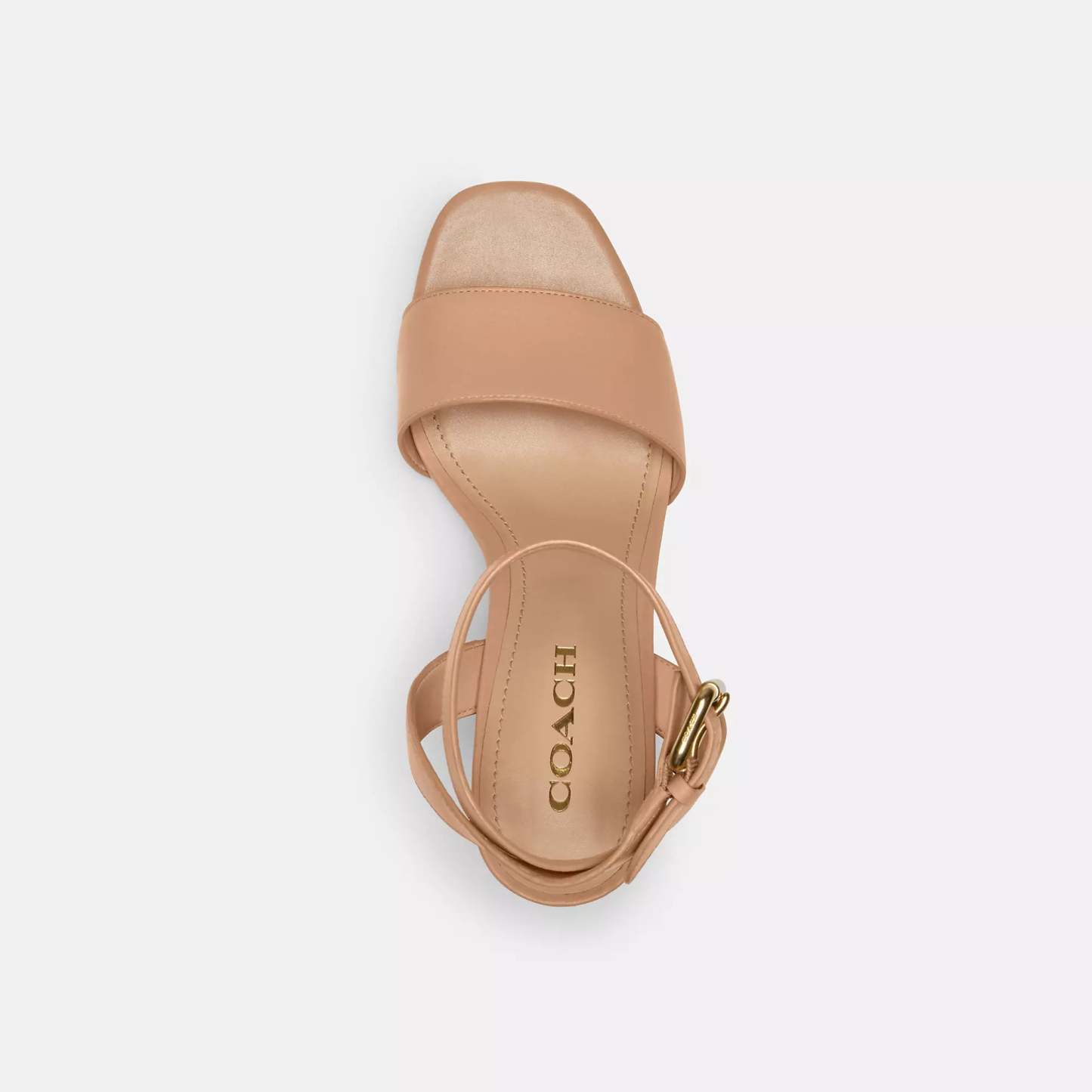 Leather upper Man-made leather lining and footbed Rubber outsole Buckle closure 3 1/4 heel Style No. CR880 | Coach Outlet Shelby Sandal - Beige, Size - 5