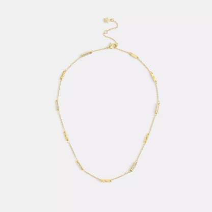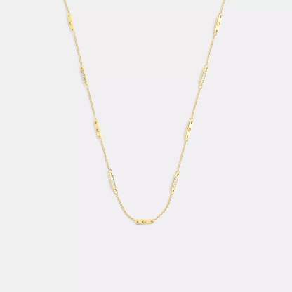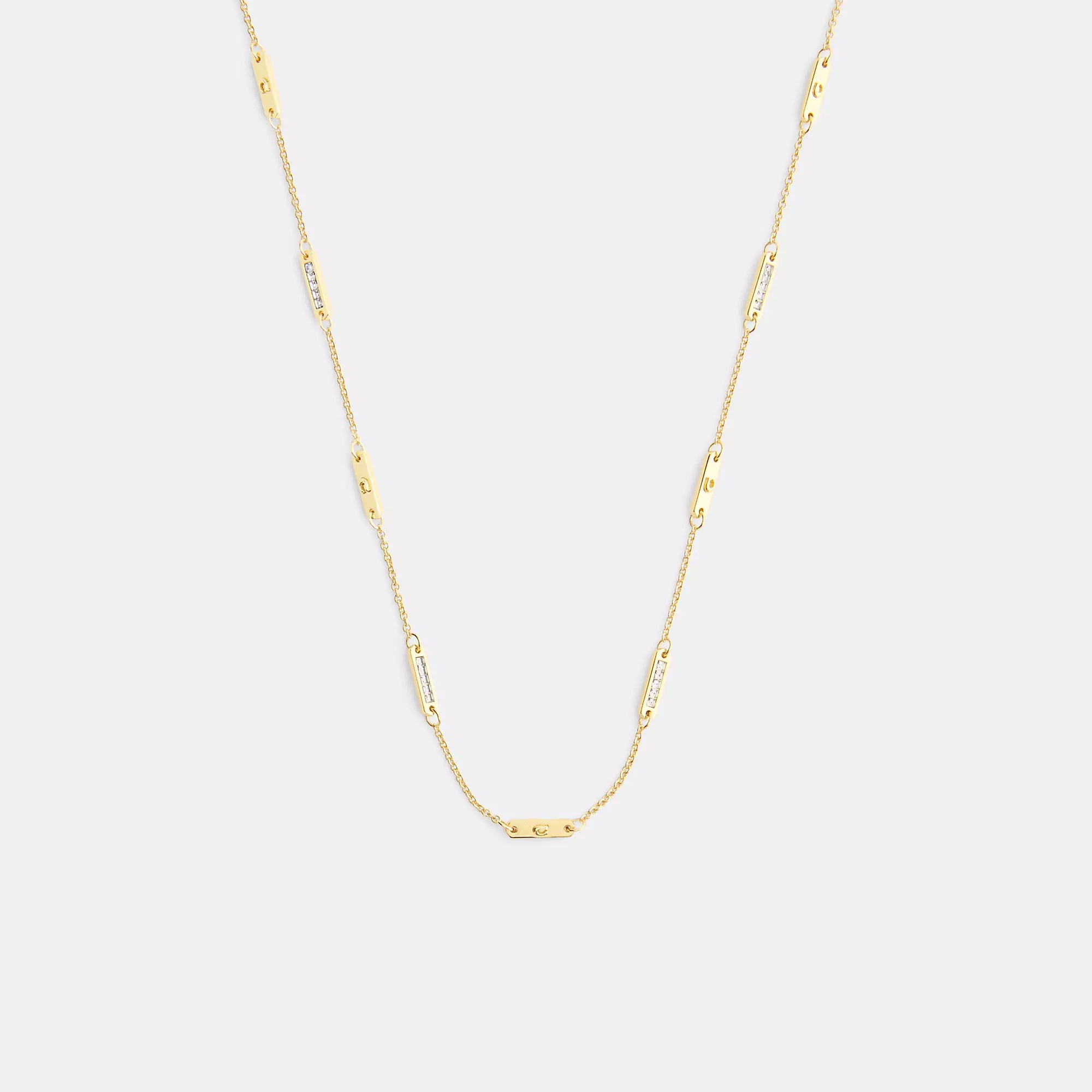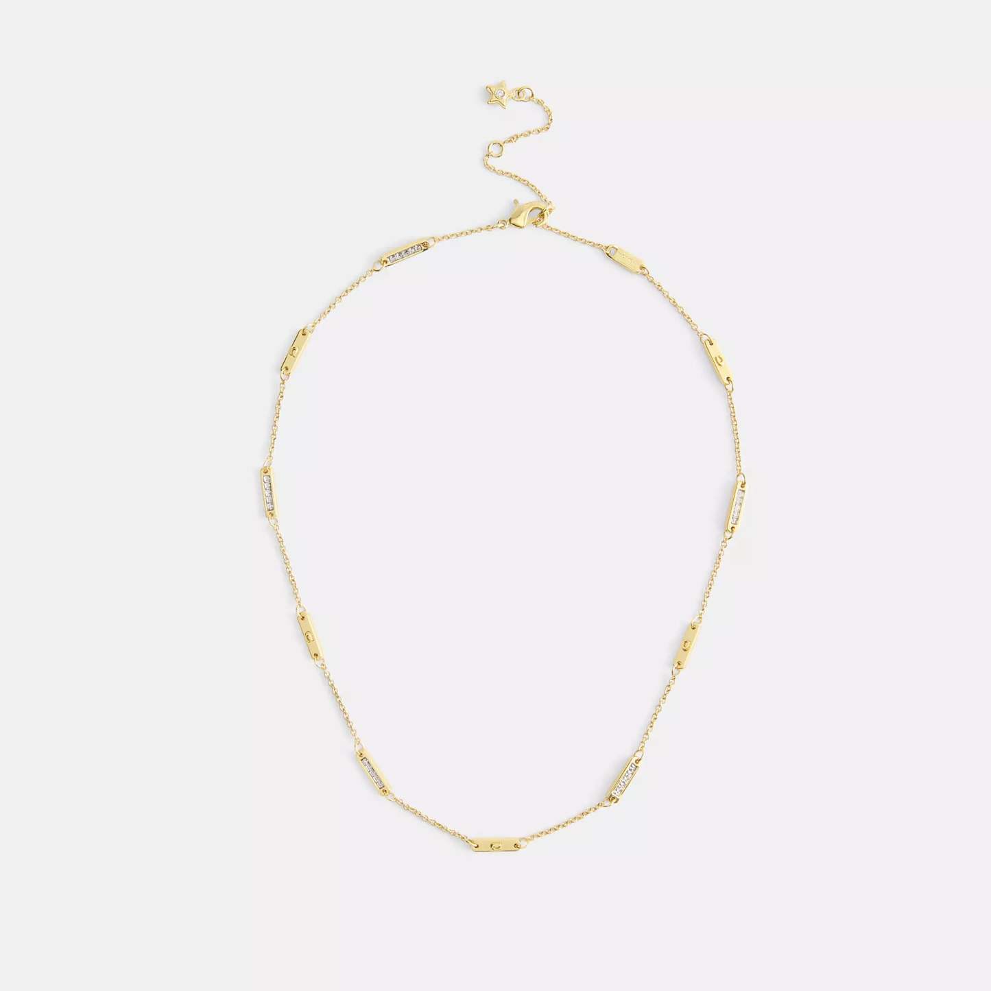 Plated brass glass and cubic zirconia Lobster clasp closure Adjustable 16–18 (L) Style No. CCU50 | Coach Outlet Signature Bar Chain Necklace - Yellow