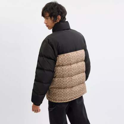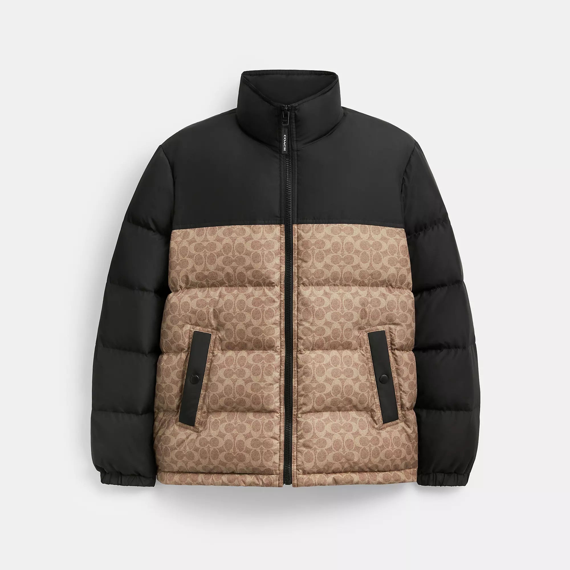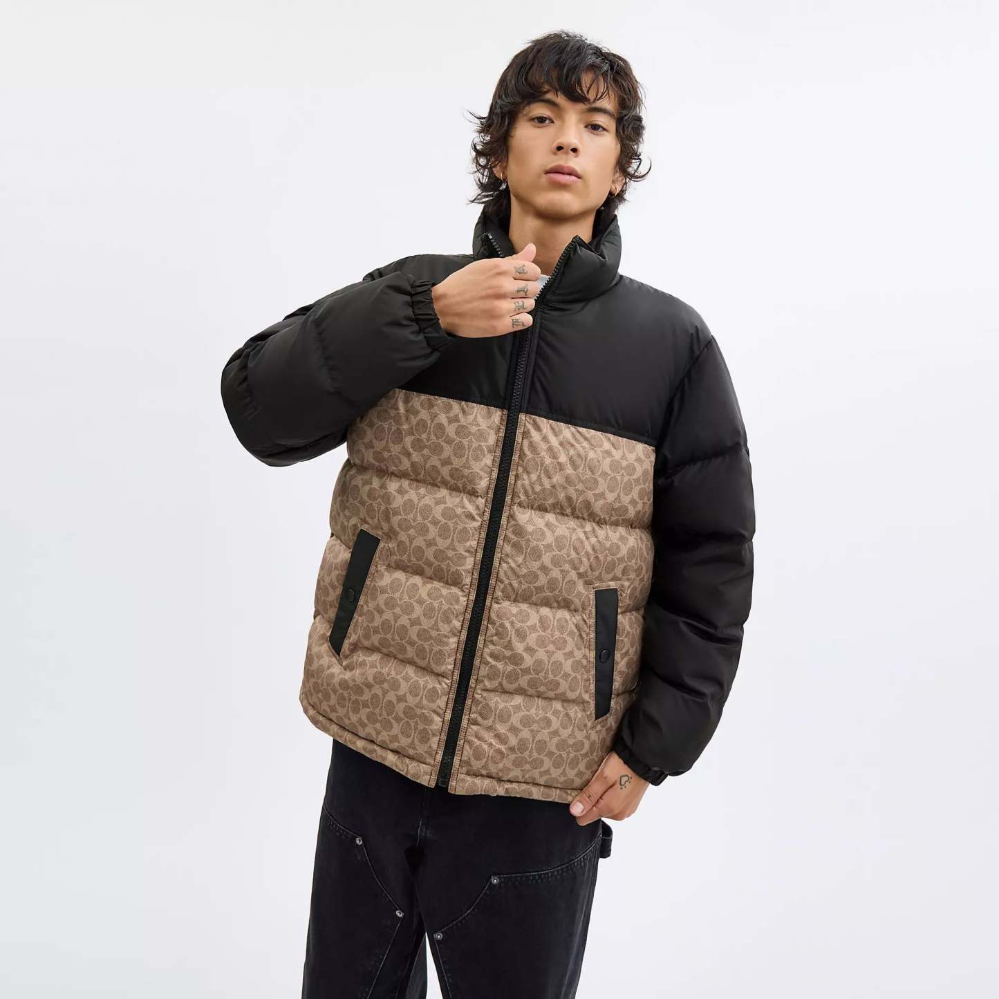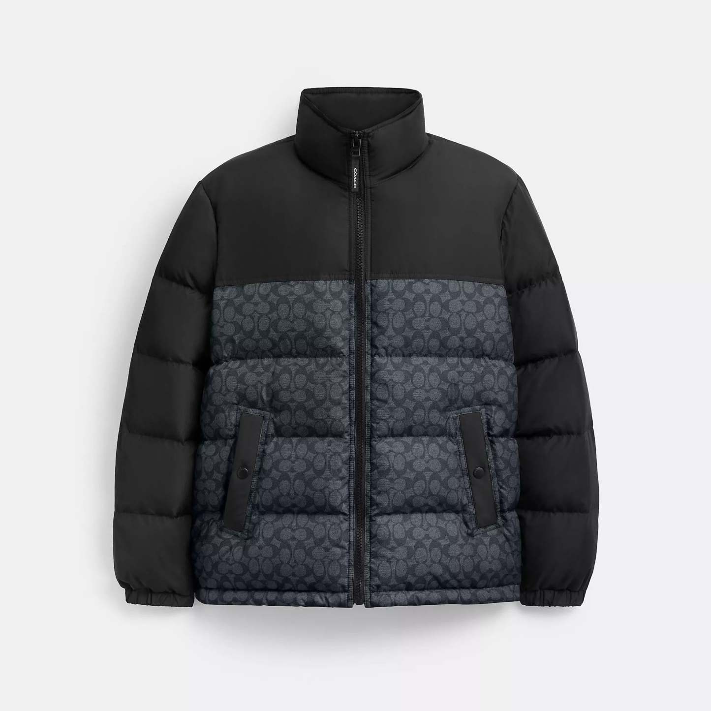 100% recycled polyester Lining - 100% polyester Fill 1 - 90% down 10% feathers Fill 2 - 100% polyester Zip closure Snap pockets Length - 28 1/2 Machine wash Model is 6'2 (188cm) and wears a size M Style No. CU798 | Coach Outlet Signature Down Jacket In Recycled Polyester - Multi, Size - Large