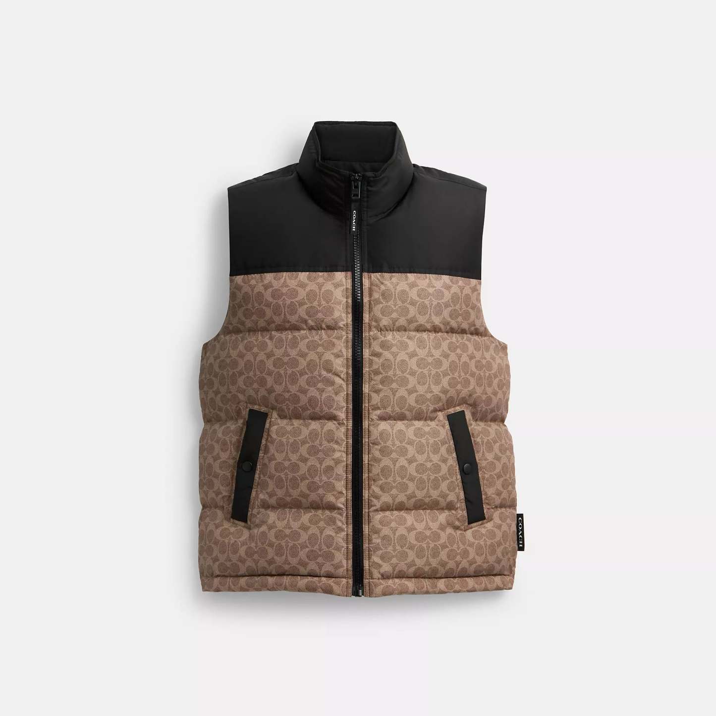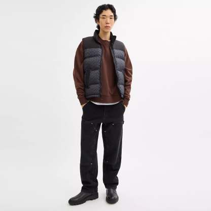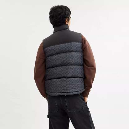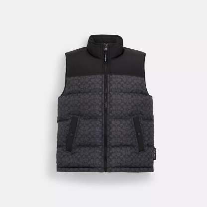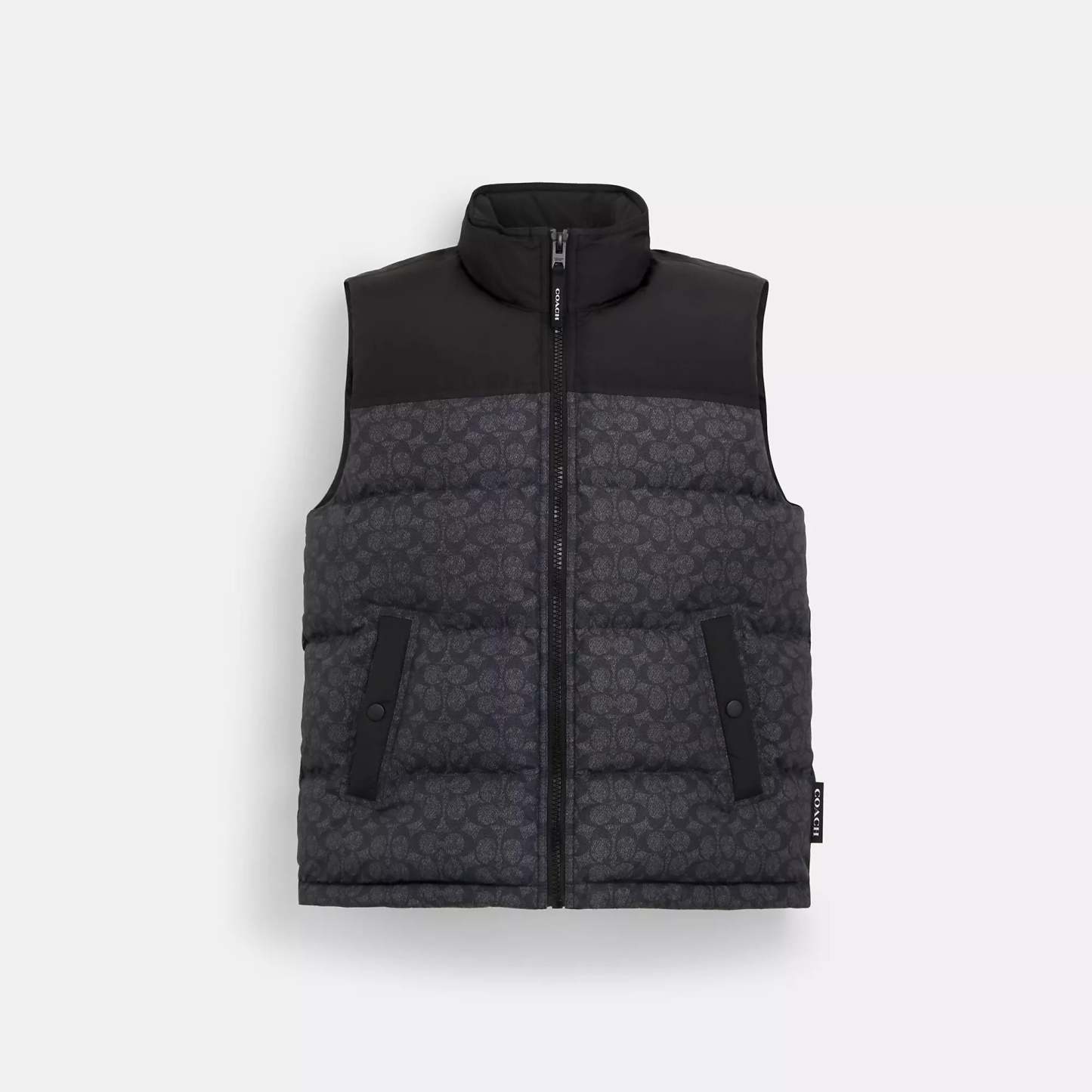 100% recycled polyester Lining - 100% polyester Fill 1 - 90% down 10% feathers Fill 2 - 100% polyester Zip closure Snap pockets Length - 27 1/4 Machine wash Model is 6'2 (188cm) and wears a size M Style No. CU801 | Coach Outlet Signature Down Vest In Recycled Polyester - Grey, Size - Medium