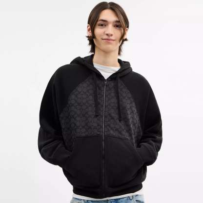 100% organic cotton Zip closure Slip pockets Length - 26 Machine wash Model is 6'2 (188cm) chest 37 (94cm) waist 28 (71cm) hips 28 (71cm) and wears a size M Style No. CBW38 | Coach Outlet Signature Full Zip Hoodie In Organic Cotton - Grey, Size - Small