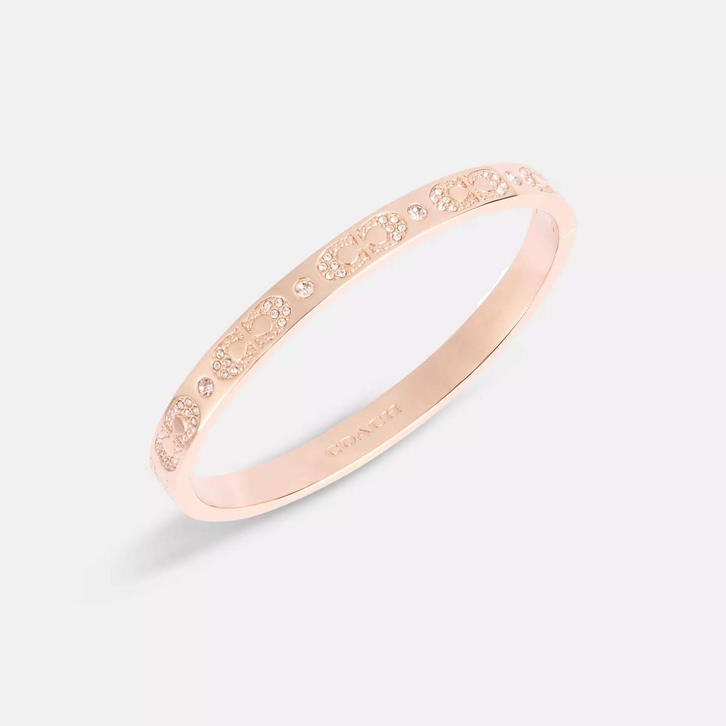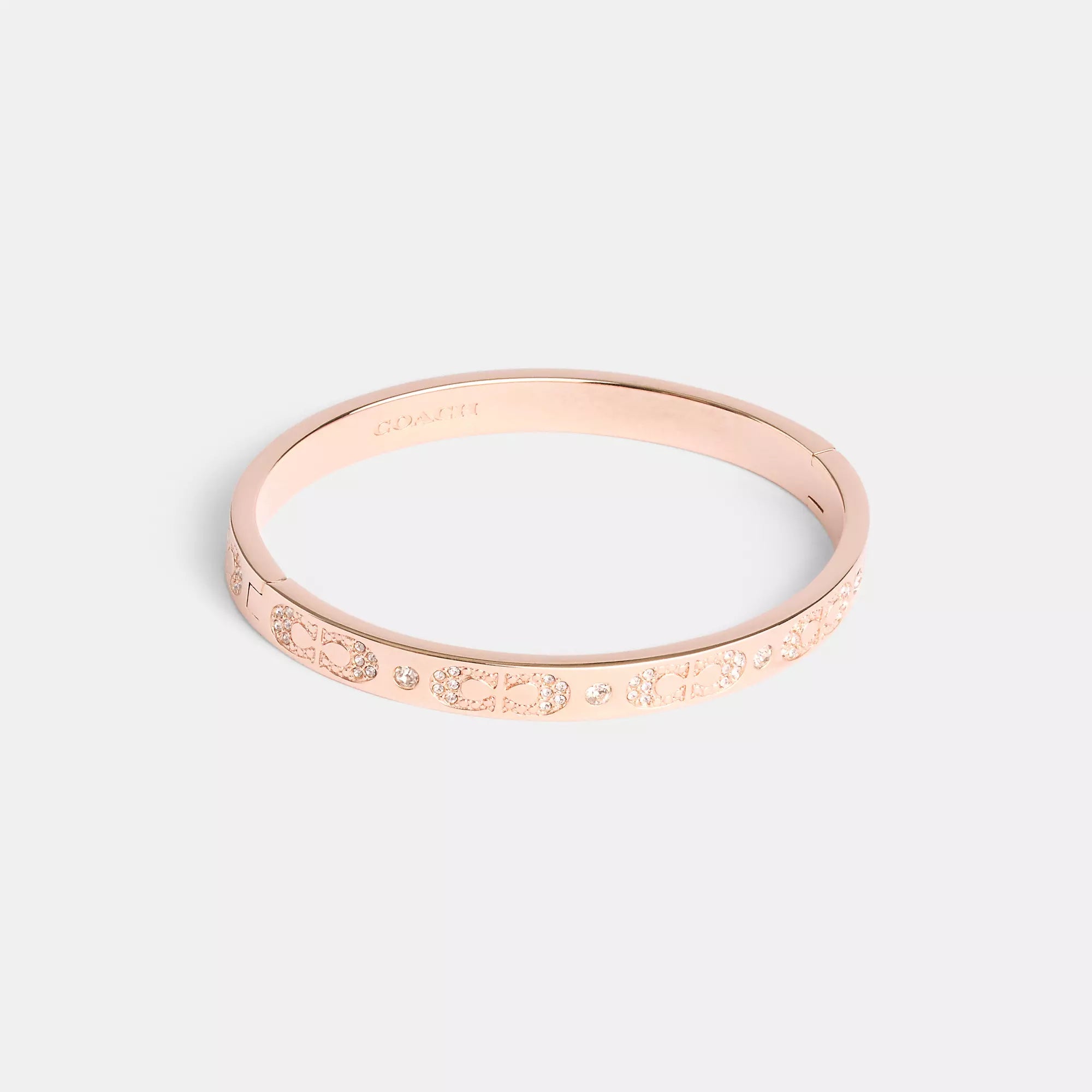 Plated brass glass and cubic zirconia Pushlock closure Diameter - 2 1/4 (L) x 2 (H) Style No. CAD64 | Coach Outlet Signature Pavé Hinged Bangle - Rose Gold