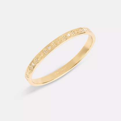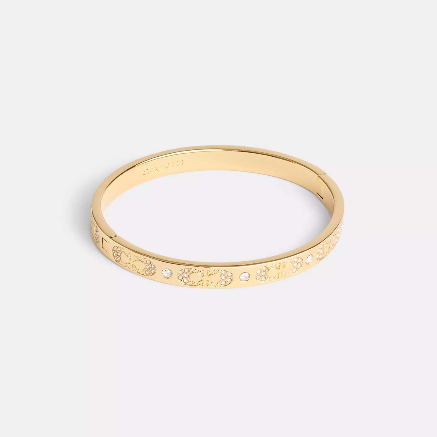 Plated brass glass and cubic zirconia Pushlock closure Diameter - 2 1/4 (L) x 2 (H) Style No. CAD62 | Coach Outlet Signature Pavé Hinged Bangle - Yellow