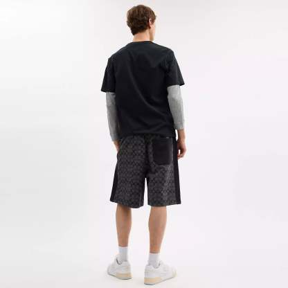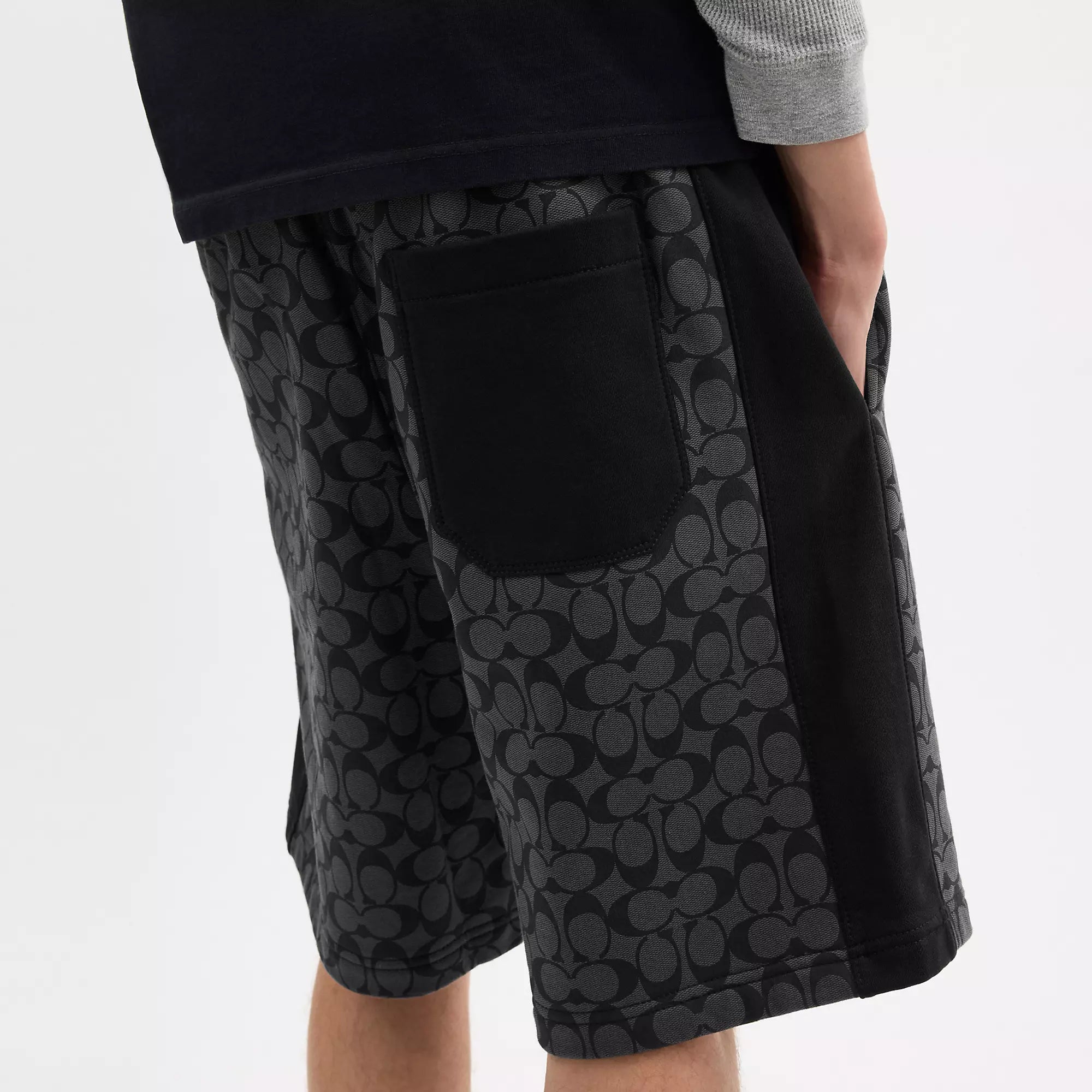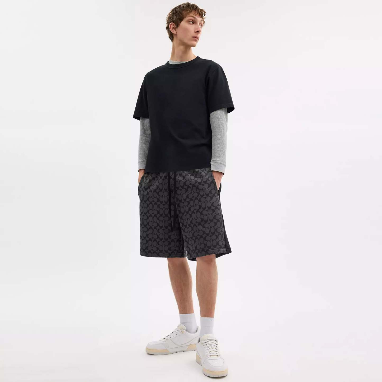 100% cotton Drawstring closure Slip pocket Inseam - 8 1/2 Machine wash Model is 6'2 (188cm) and wears a size M Style No. CY588 | Coach Outlet Signature Shorts - Grey, Size - X-Large