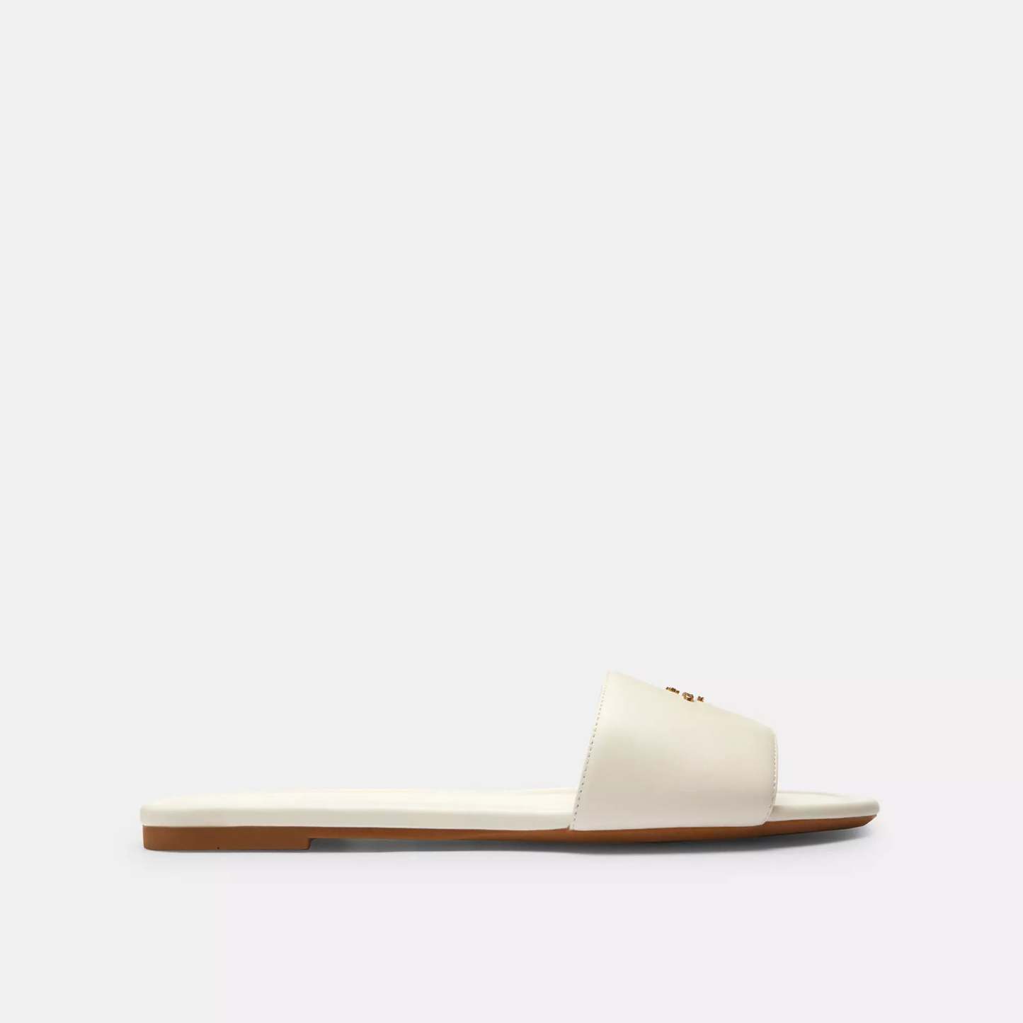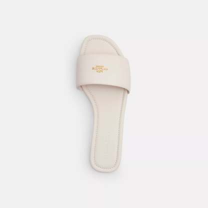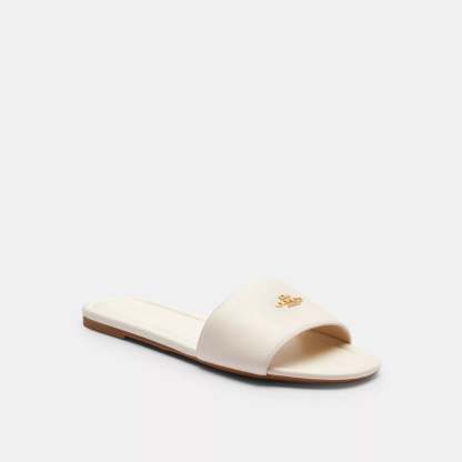 Leather upper Man-made leather lining and footbed Rubber outsole Slip on Style No. CAQ67 | Coach Outlet Signature Slide Sandal - White, Size - 5.5