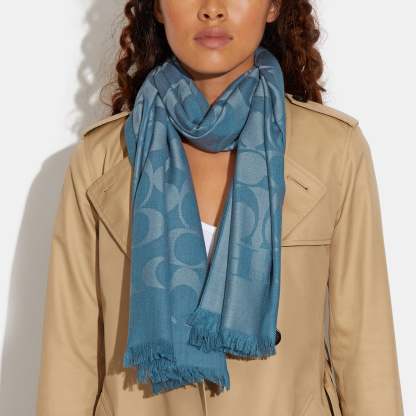 85% wool 15% silk 66 x 24 Style No. CB700 | Coach Outlet Signature Wrap - Blue