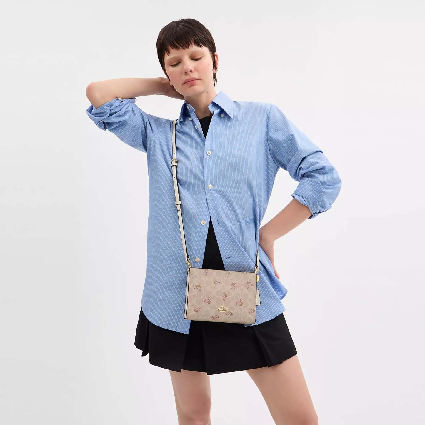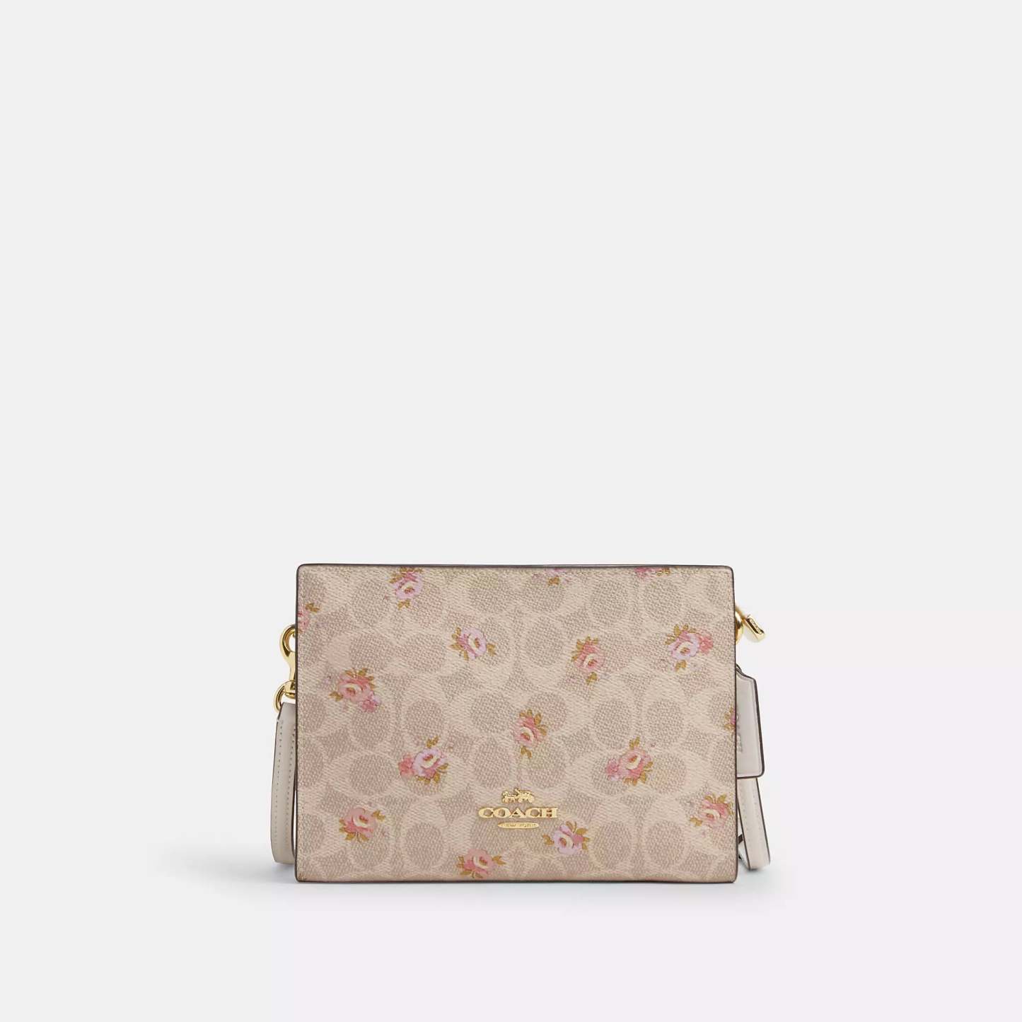 Signature coated canvas Two credit card slots Zip-top closure fabric lining Chain strap with 22 1/2 drop for shoulder or crossbody wear 7 3/4 (L) x 5 1/2 (H) x 1 1/4 (W) Style No. CBA71 | Coach Outlet Slim Crossbody Bag In Signature Canvas With Floral Print - Beige
