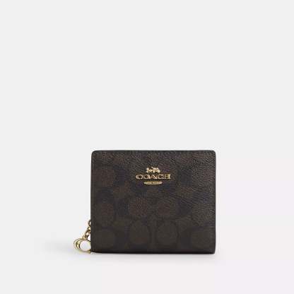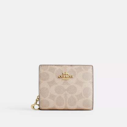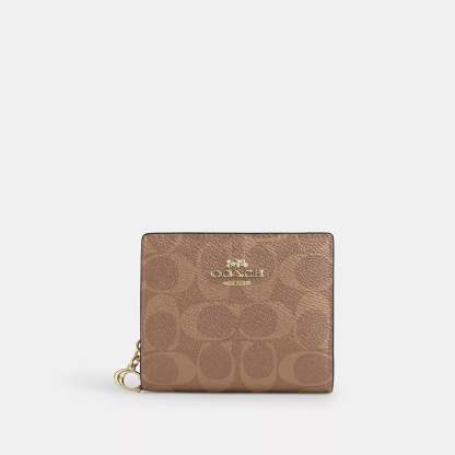 Signature coated canvas Three credit card slots ID window Full-length bill compartment Snap closure Outside zip coin pocket 4 1/4 (L) x 3 1/2 (H) x 1 (W) Style No. CW789 | Coach Outlet Snap Wallet In Signature Canvas - Beige