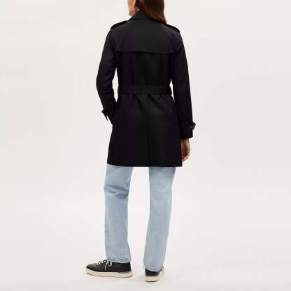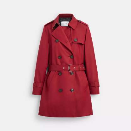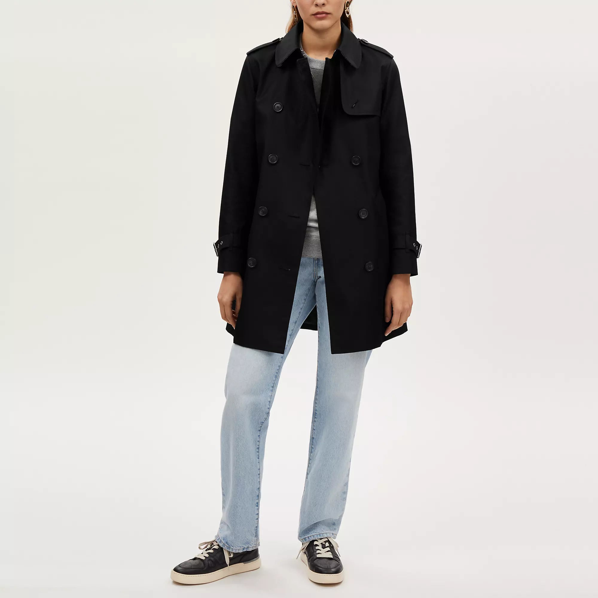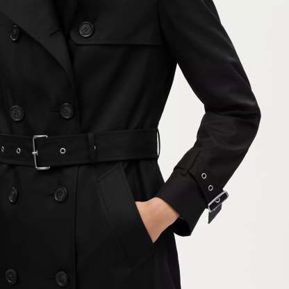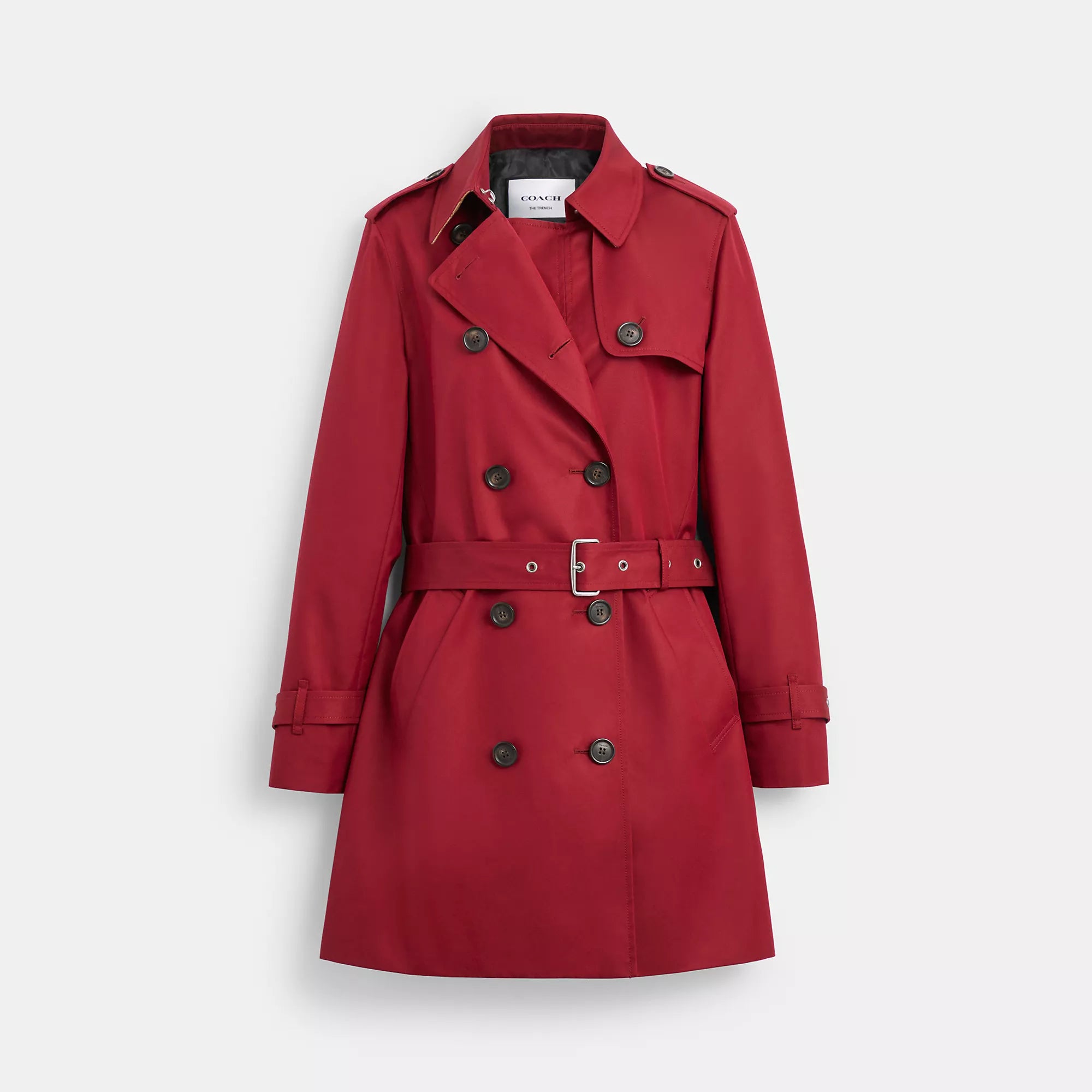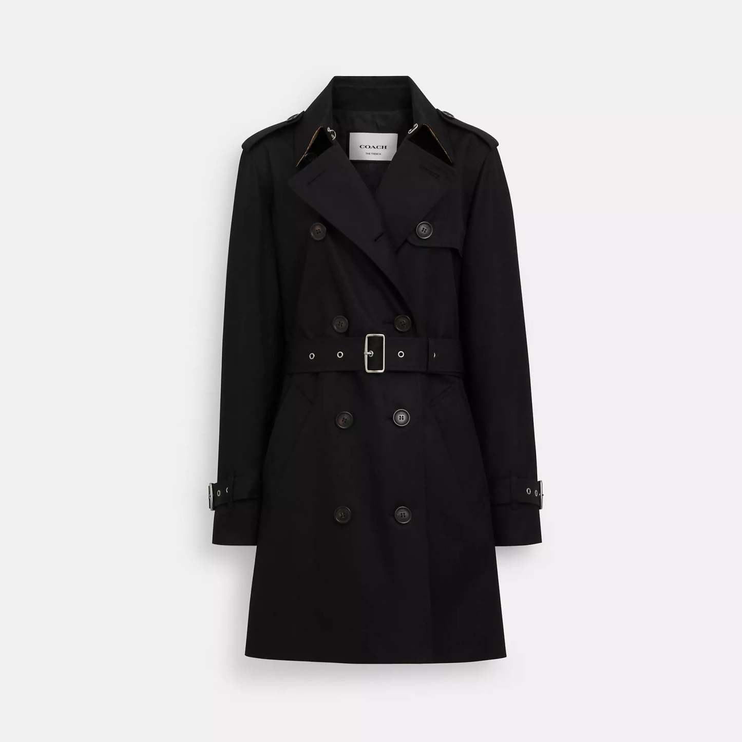 68% organic cotton 32% recycled polyester Facings - 56% polyester 44% viscose Body lining - 58% polyester 42% viscose Sleeve lining - 56% polyester 44% viscose Button closure Slip pockets Adjustable belt Length - 33 1/2 Dry clean Model is 5'10 (178cm) chest 31 (79cm) waist 24 (61cm) hips 35 (89cm) and wears a size S Style No. CR116 | Coach Outlet Solid Mid Trench - Black, Size - Small