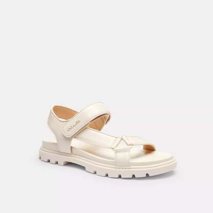 Leather upper Man-made leather lining and footbed Rubber outsole Velcro closure Style No. CAP70 | Coach Outlet Sport Sandal - White, Size - 5