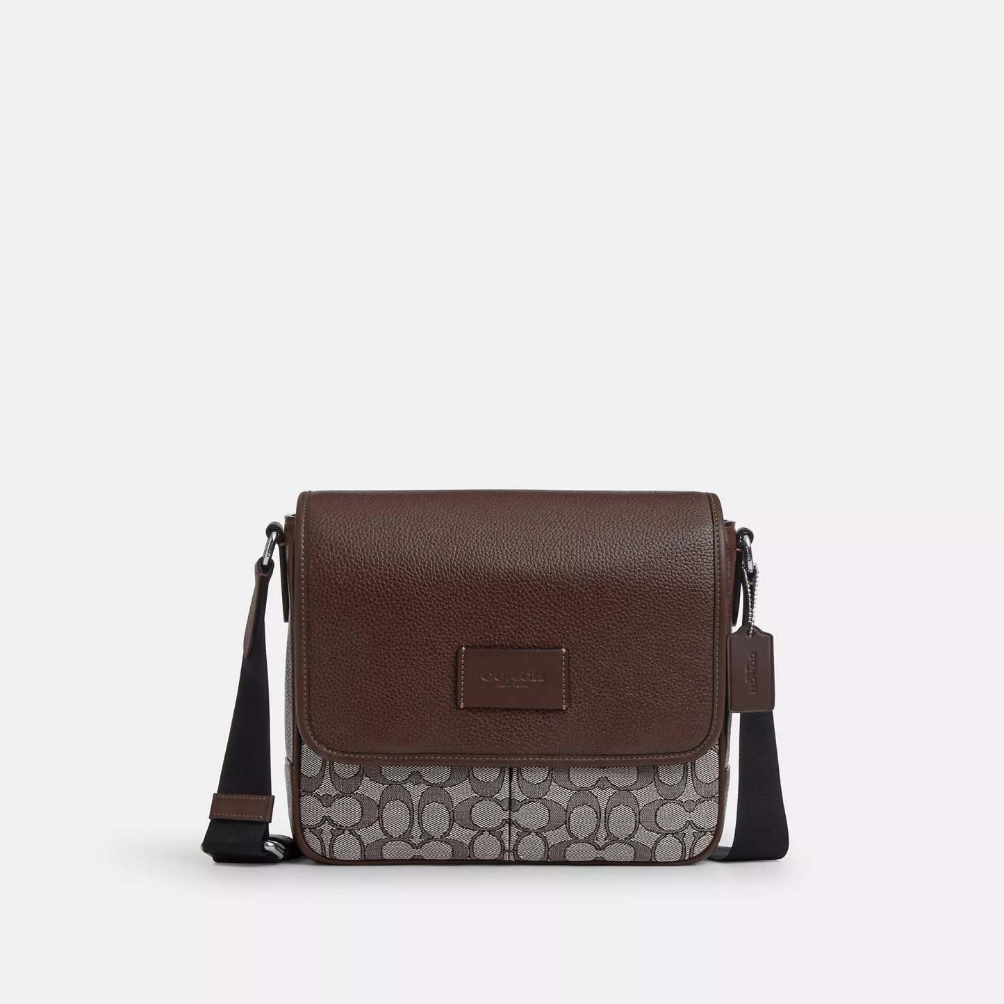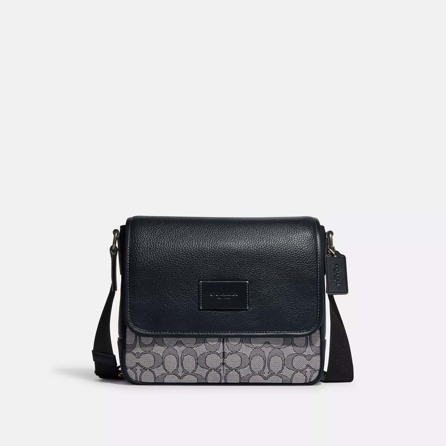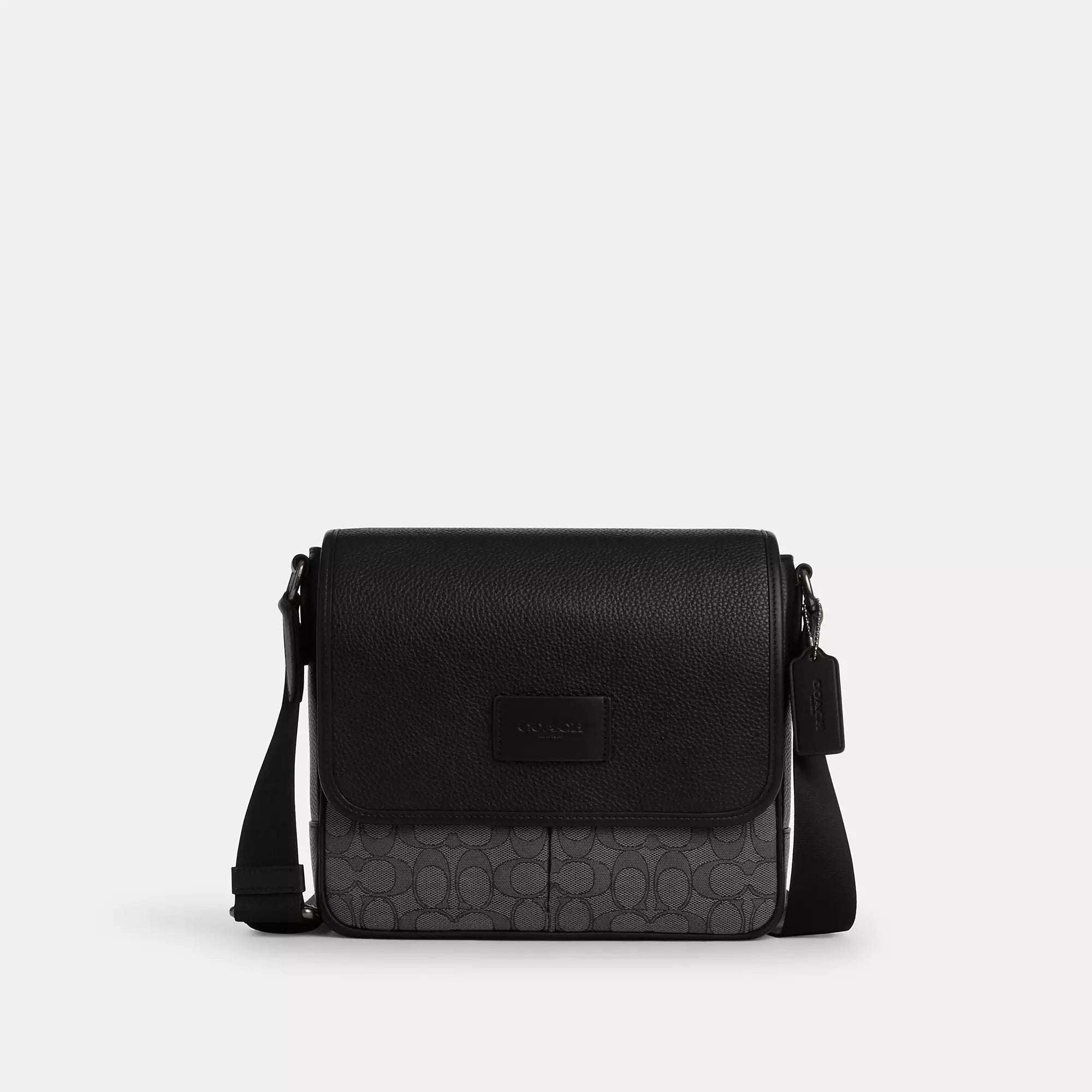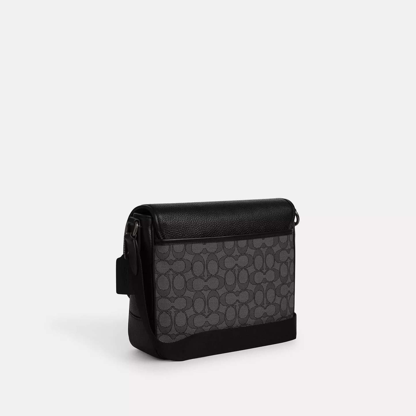 Signature jacquard refined pebble leather and smooth calf leather Inside zip and multifunction pockets Magnetic snap closure fabric lining Outside open pocket Adjustable strap with 25 drop for shoulder or crossbody wear 10 (L) x 8 1/4 (H) x 2 3/4 (W) Exclusive of trim this Coach piece is crafted of our Signature jacquard made from a blend of organic cotton and recycled polyester Style No. CE534 | Coach Outlet Sprint Map Bag 25 In Signature Jacquard - Black
