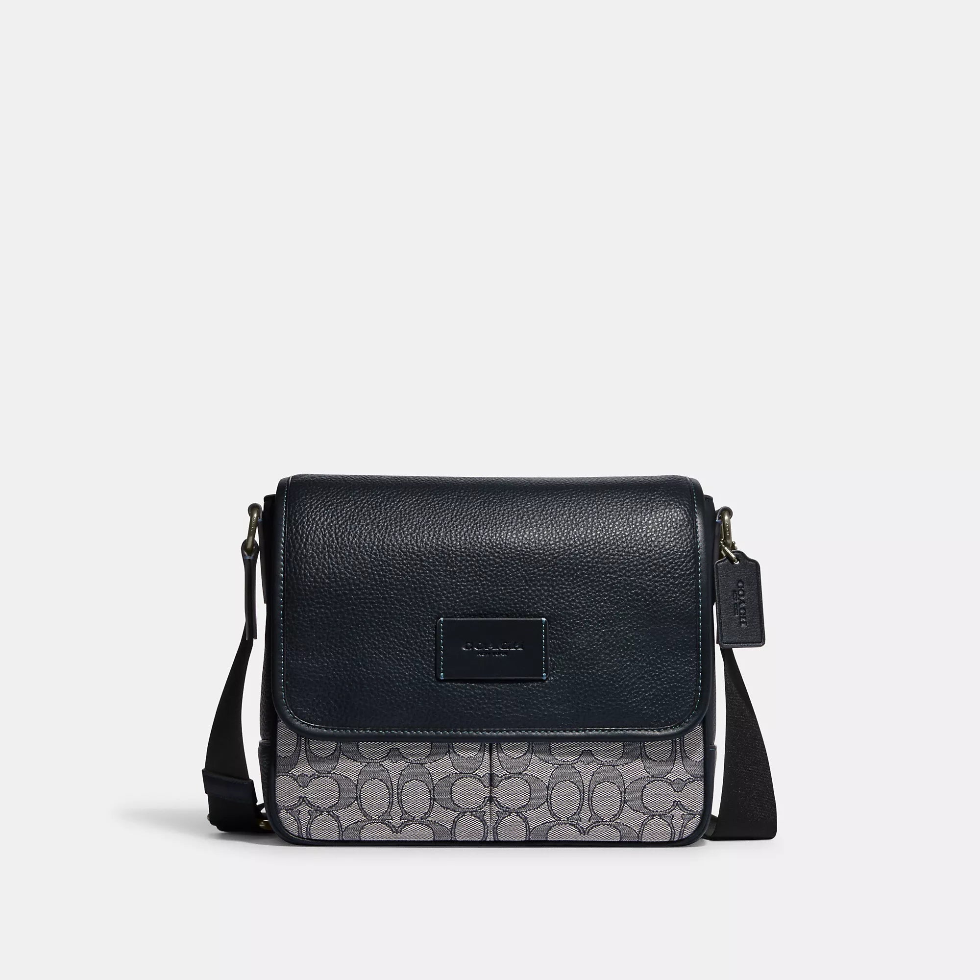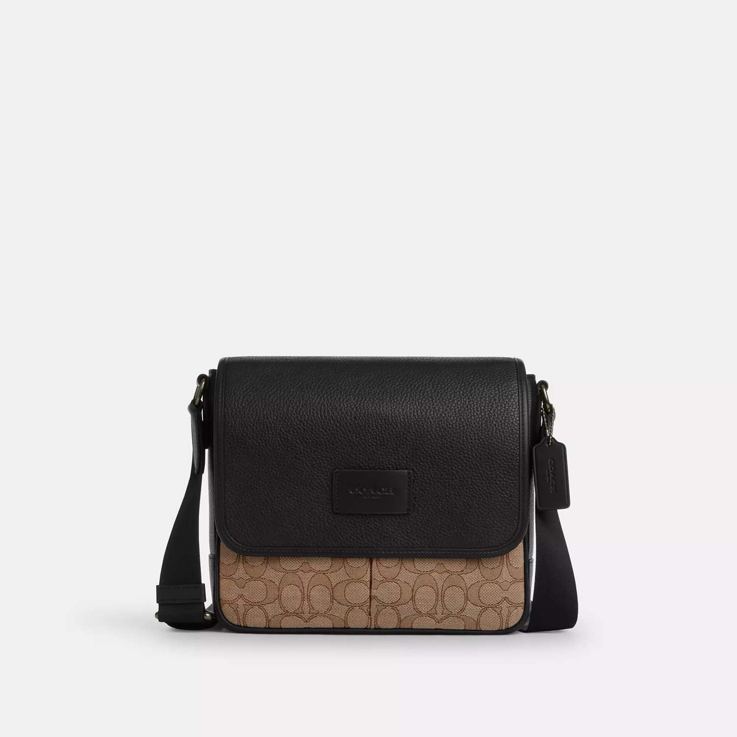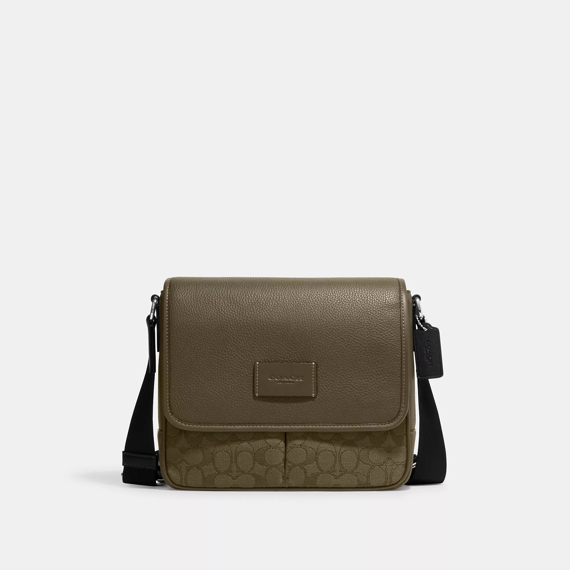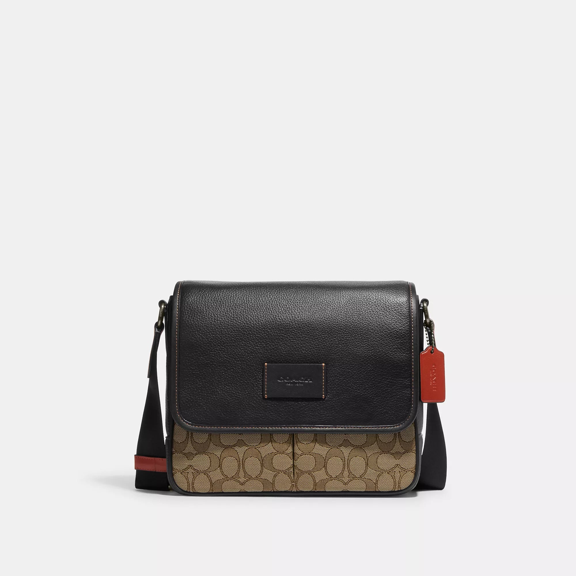 Signature jacquard refined pebble leather and smooth calf leather Inside zip and multifunction pockets Magnetic snap closure fabric lining Outside open pocket Adjustable strap with 25 drop for shoulder or crossbody wear 10 (L) x 8 1/4 (H) x 2 3/4 (W) Exclusive of trim this Coach piece is crafted of our Signature jacquard made from a blend of organic cotton and recycled polyester Style No. CE534 | Coach Outlet Sprint Map Bag 25 In Signature Jacquard - Black