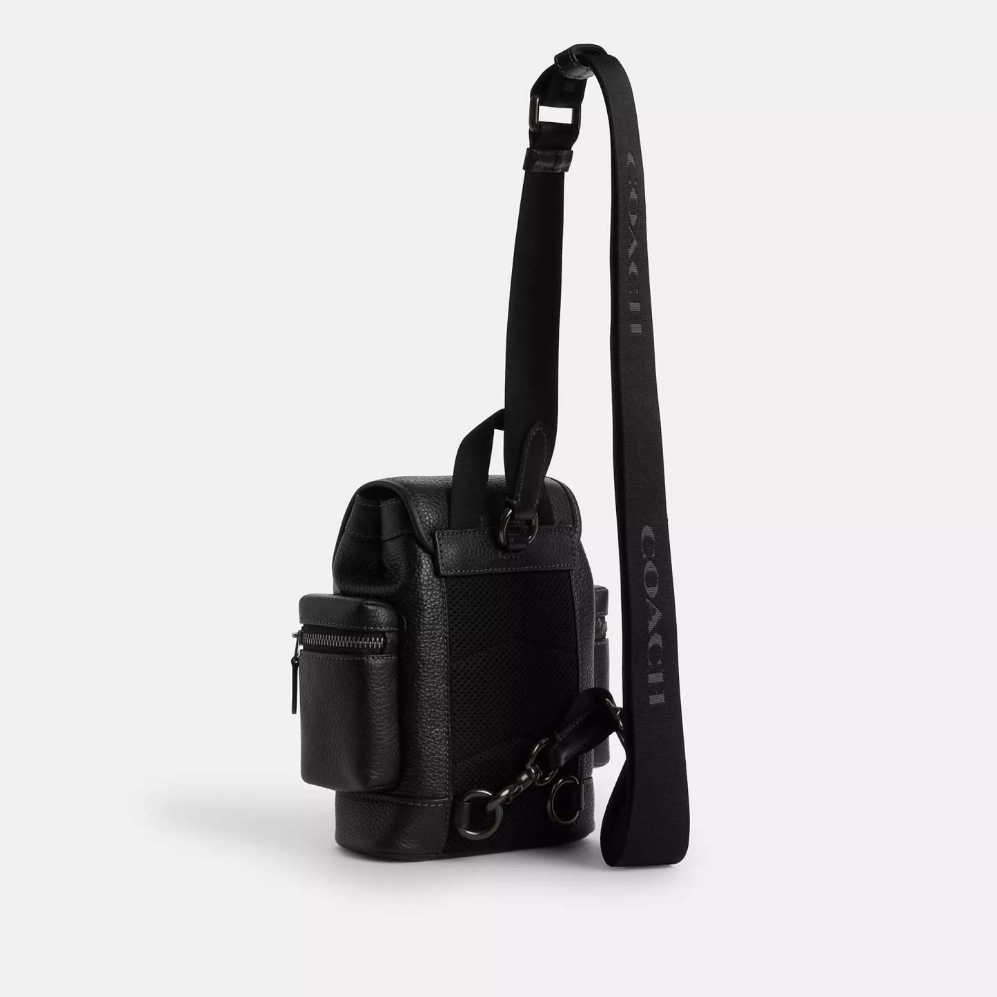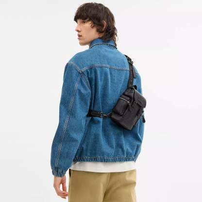 Refined pebble leather and smooth calf leather Inside multifunction pocket Magnetic snap and buckle closures fabric lining Outside zip pockets Adjustable shoulder strap with 55 length for crossbody wear (clip left or right) 5 3/4 (L) x 8 (H) x 2 1/2 (W) Style No. CBF63 | Coach Outlet Sprint Sling Pack - Black