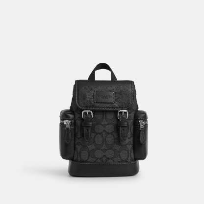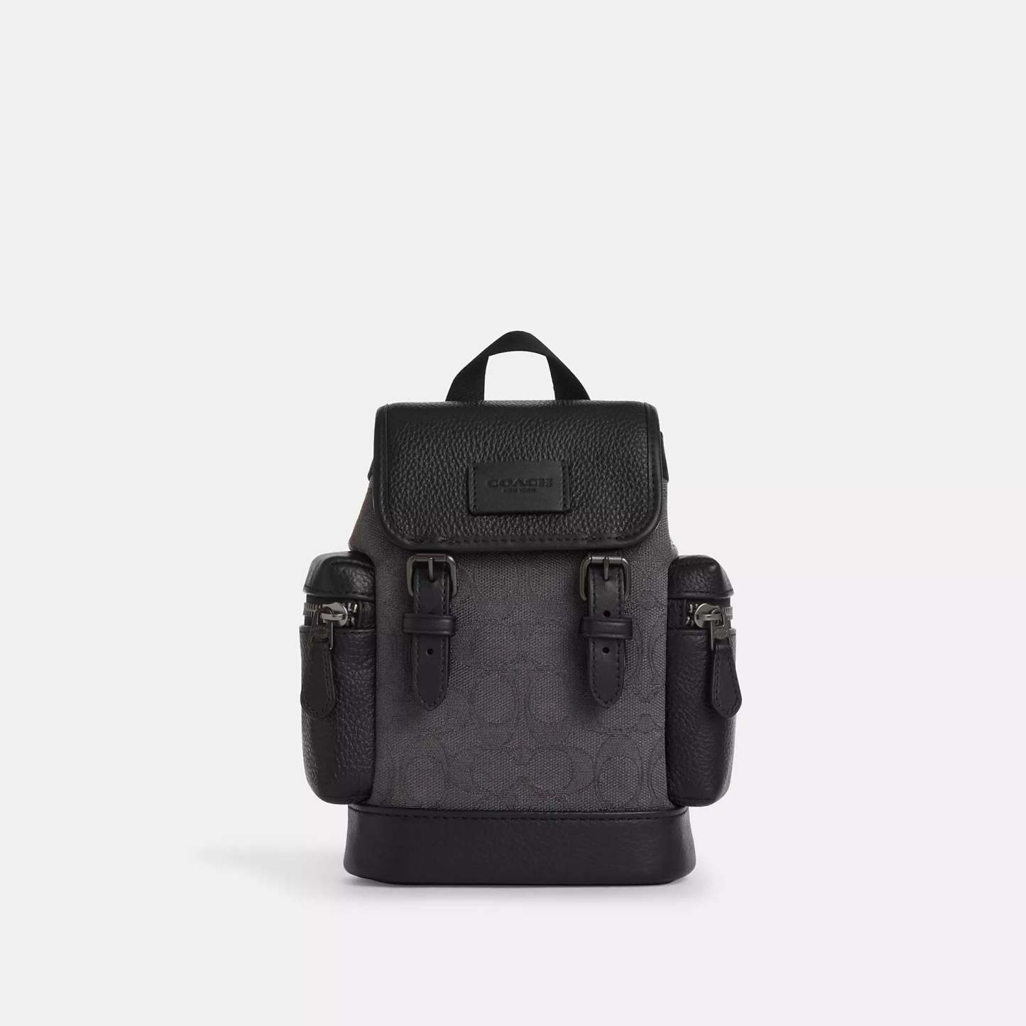 Signature jacquard refined pebble leather and smooth calf leather Inside multifunction pocket Magnetic snap and buckle closures fabric lining Outside zip pockets Adjustable shoulder strap with 55 length for crossbody wear (clip left or right) 5 3/4 (L) x 8 (H) x 2 1/2 (W) Style No. CBF64 | Coach Outlet Sprint Sling Pack In Signature Jacquard - Black