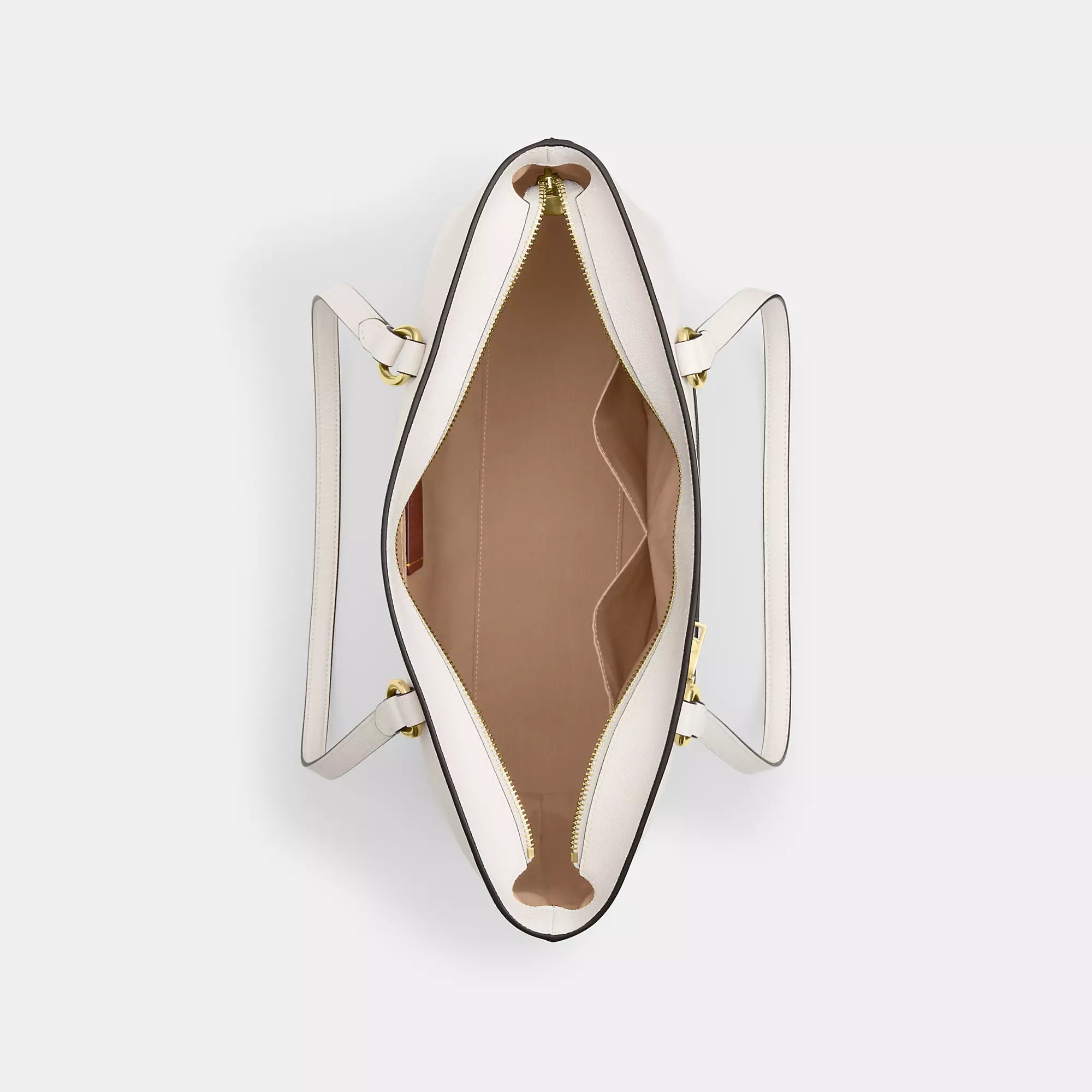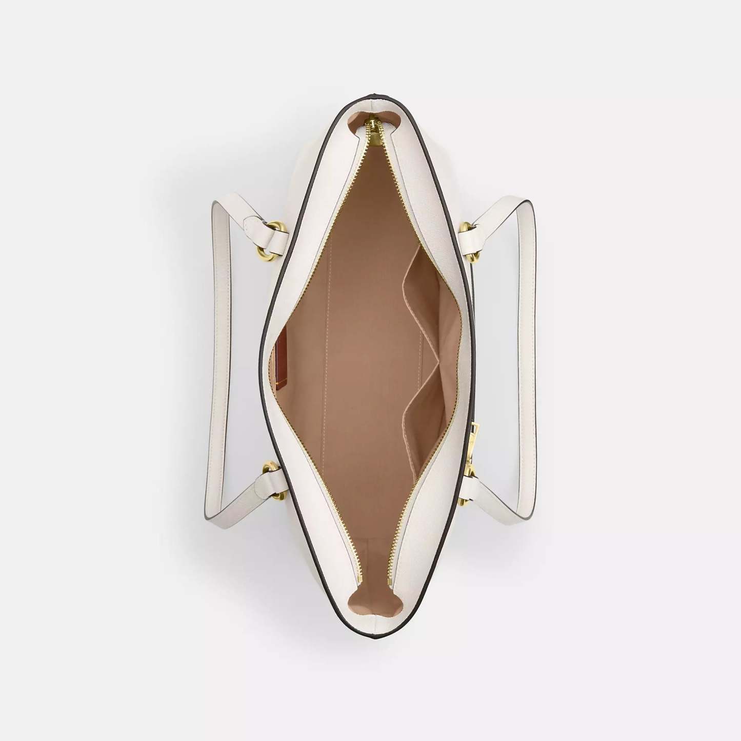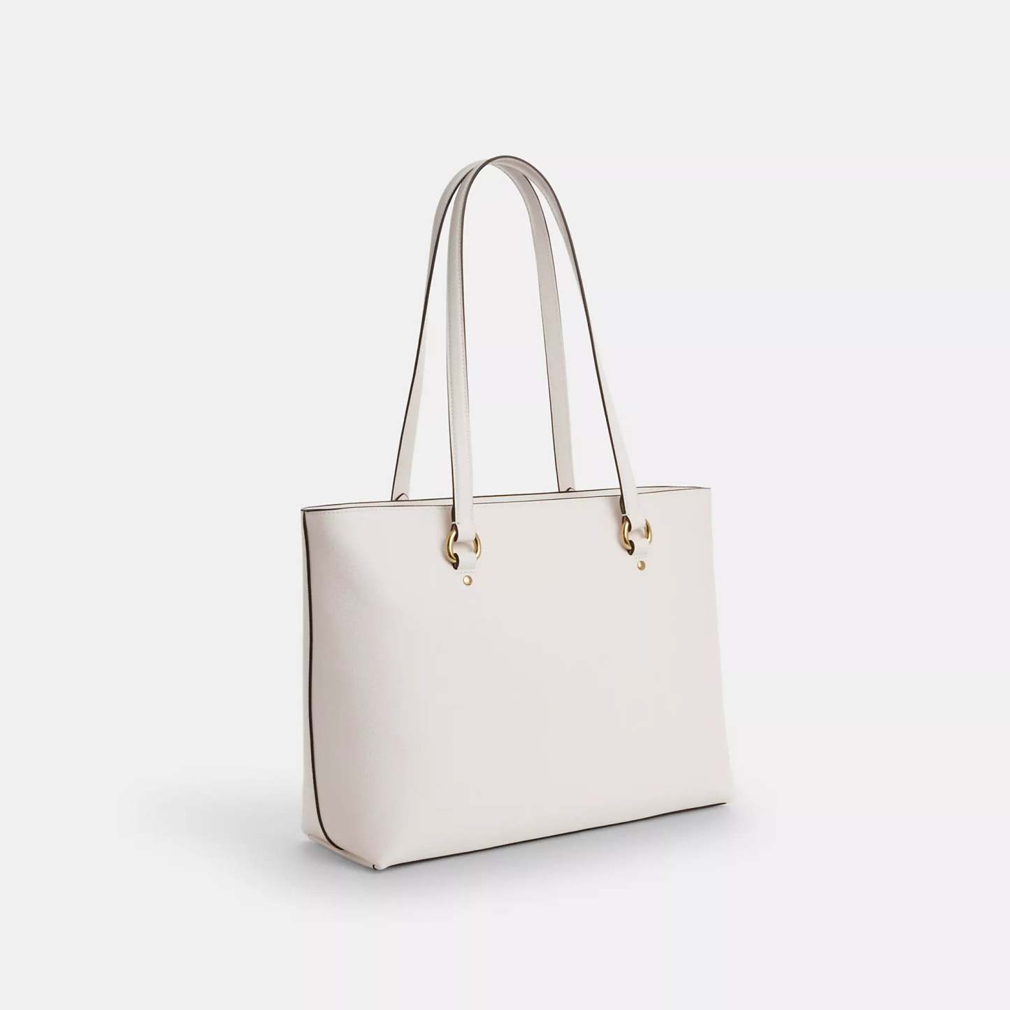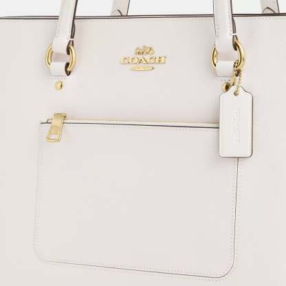 Crossgrain leather and coated canvas Inside zip cell phone and multifunction pockets Zip-top closure fabric lining Handles with 10 1/2 drop Outside zip pocket 13 3/4 (L) x 10 1/4 (H) x 5 (W) Style No. CCD71 | Coach Outlet Station Tote Bag - White, Size - Large