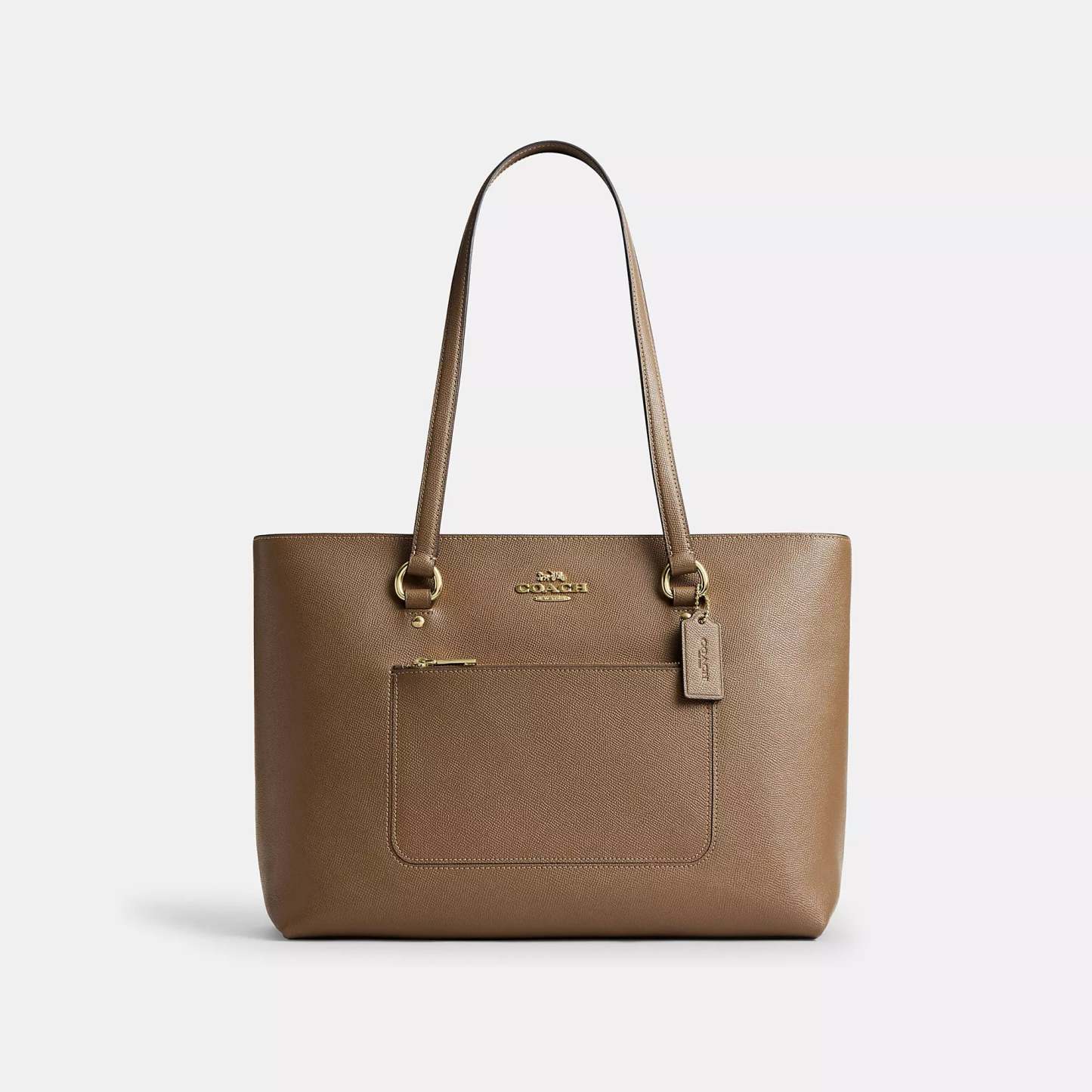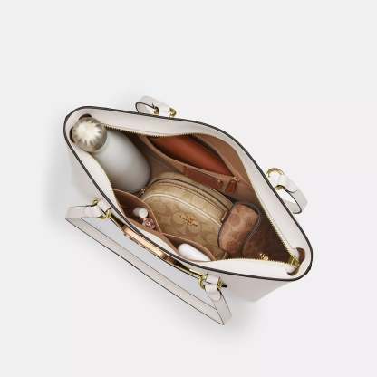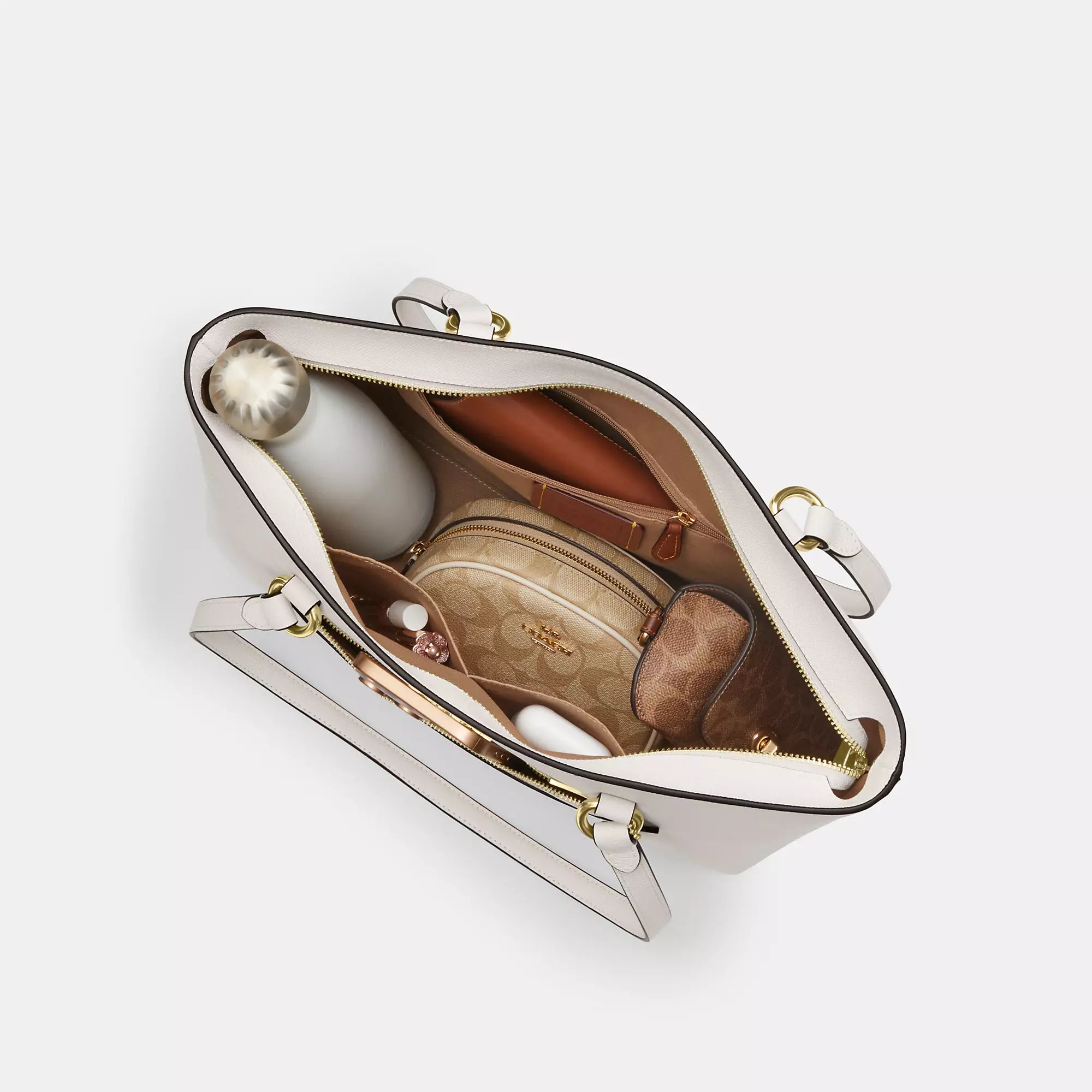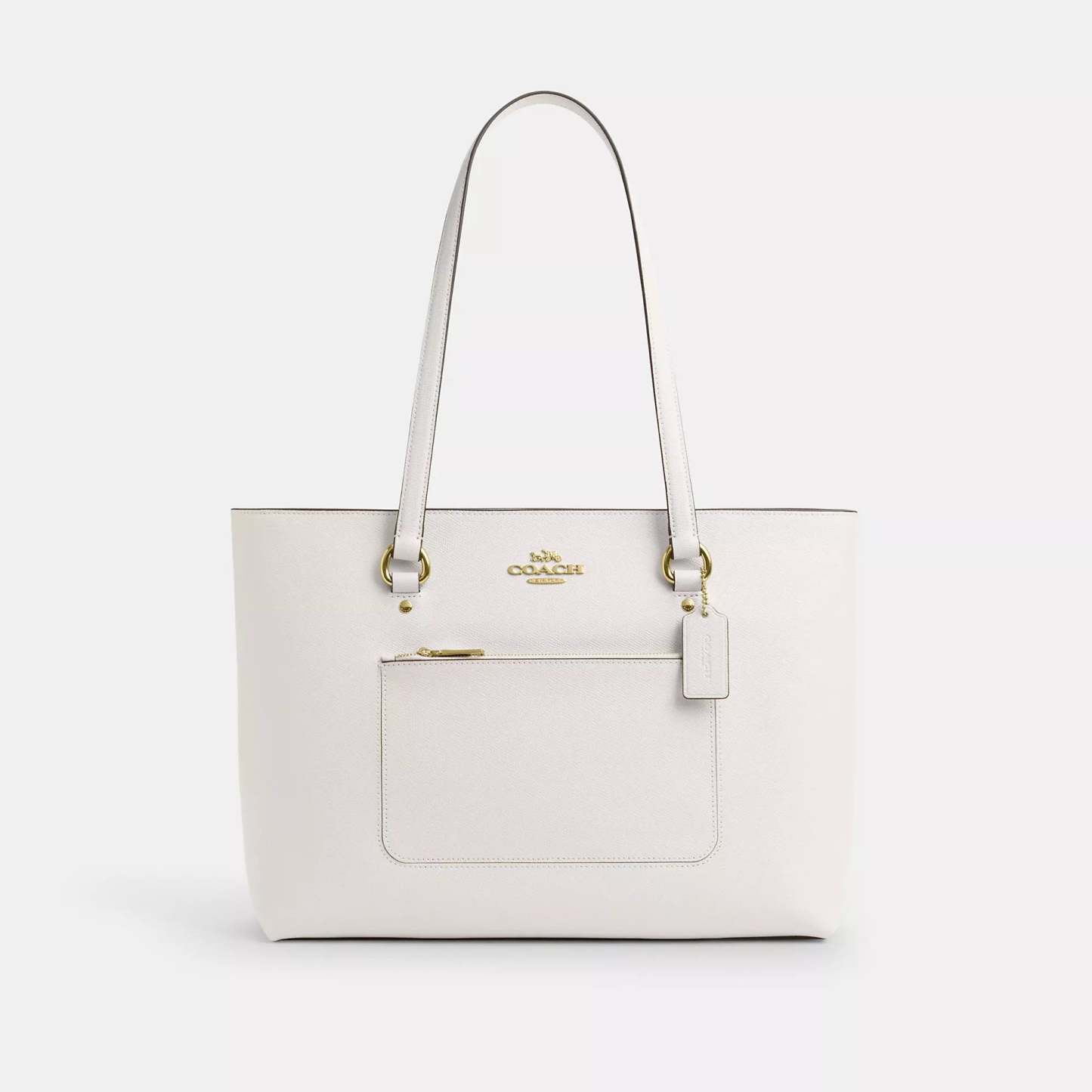 Crossgrain leather and coated canvas Inside zip cell phone and multifunction pockets Zip-top closure fabric lining Handles with 10 1/2 drop Outside zip pocket 13 3/4 (L) x 10 1/4 (H) x 5 (W) Style No. CCD71 | Coach Outlet Station Tote Bag - White, Size - Large