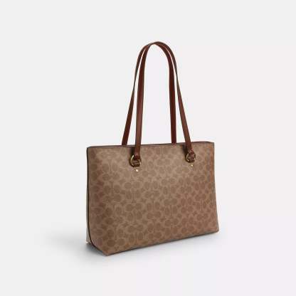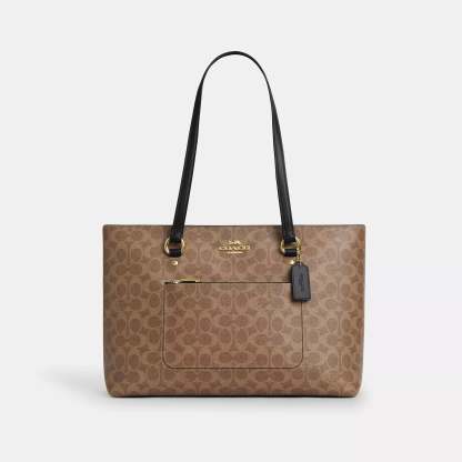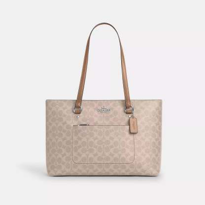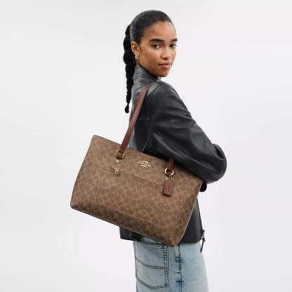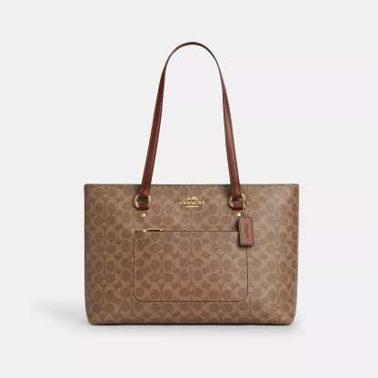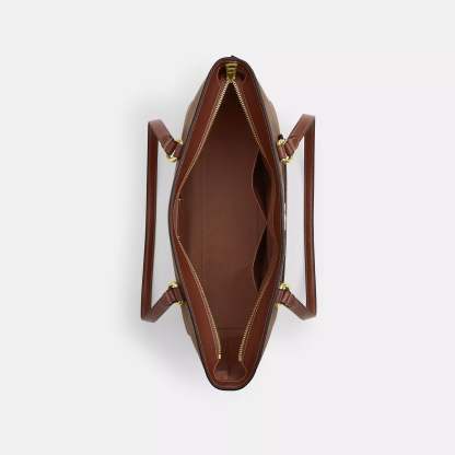 Signature coated canvas and smooth leather Inside zip cell phone and multifunction pockets Zip-top closure fabric lining Handles with 10 1/2 drop Outside zip pocket 13 3/4 (L) x 10 1/4 (H) x 5 (W) Style No. CCD69 | Coach Outlet Station Tote Bag In Signature Canvas - Brown