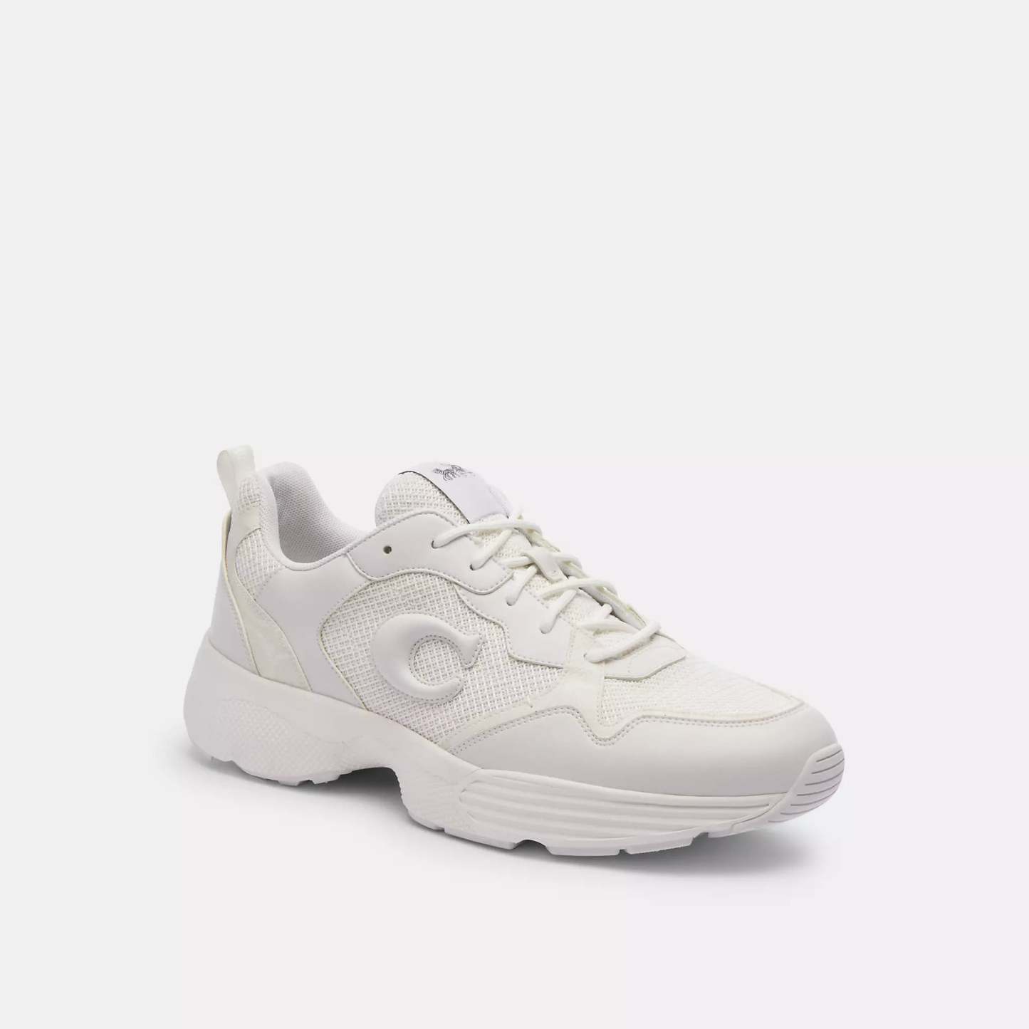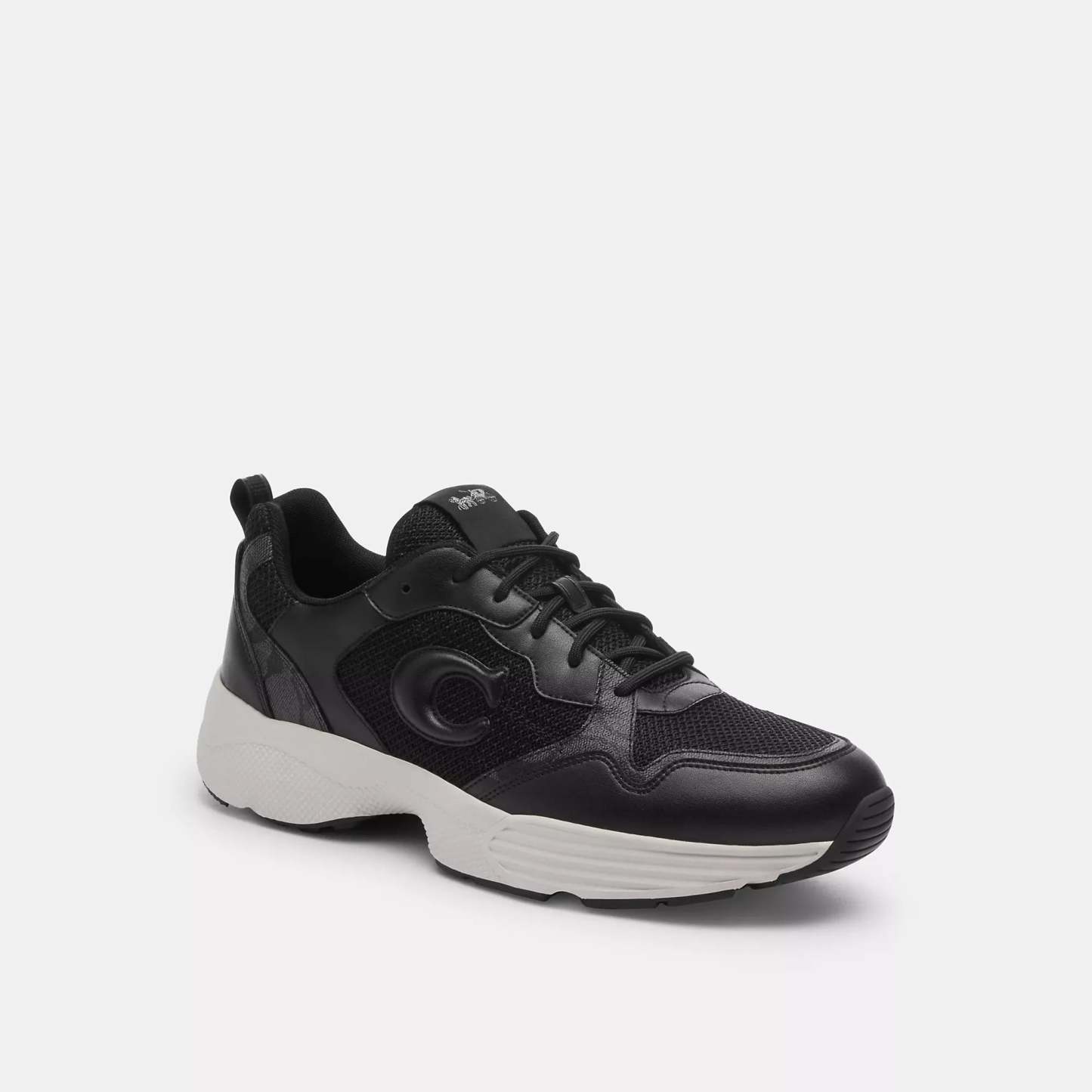 Mesh leather and Signature coated canvas upper Fabric lining and footbed Rubber outsole Lace-up closure Style No. CY250 | Coach Outlet Strider Sneaker In Signature Canvas - Black, Size - 9.5