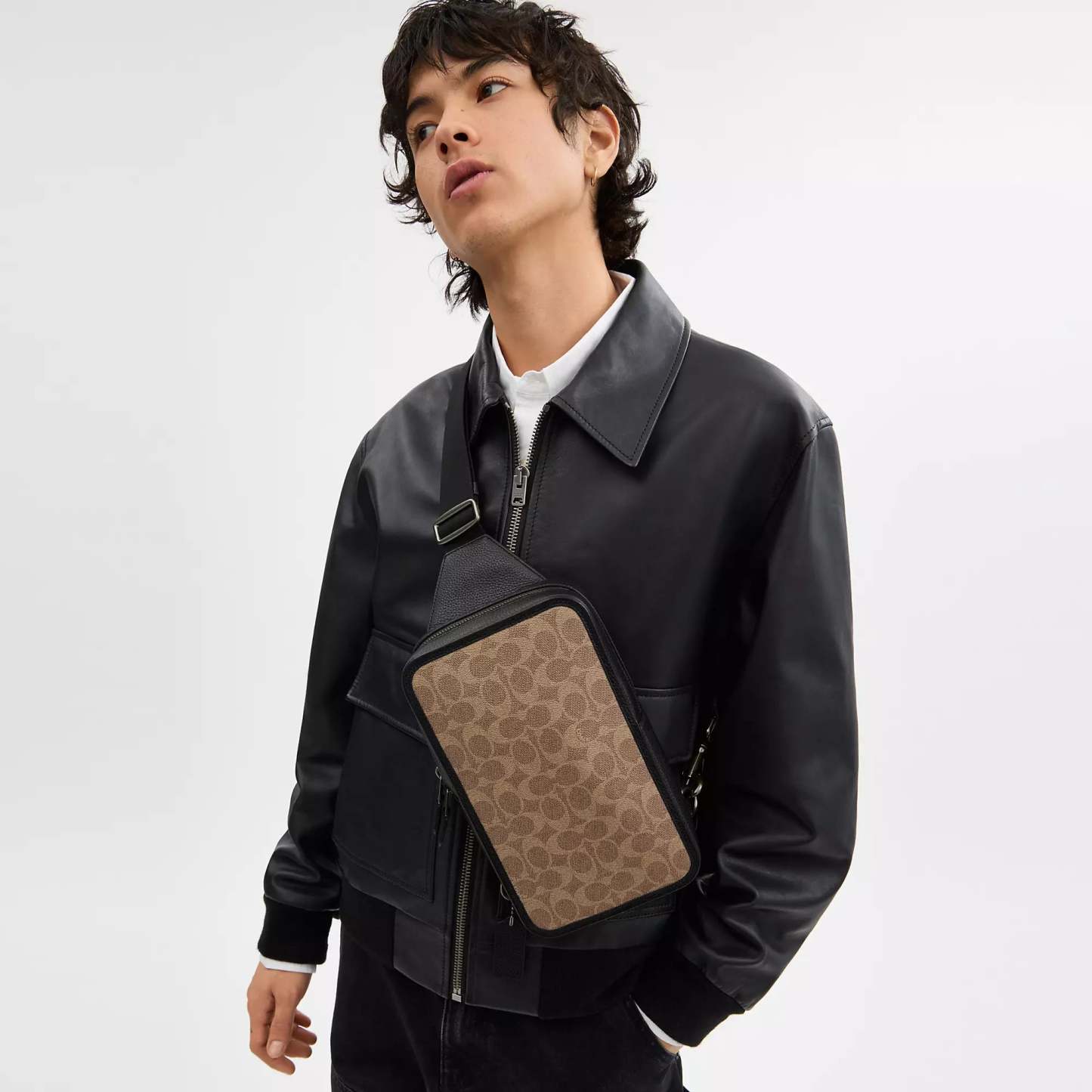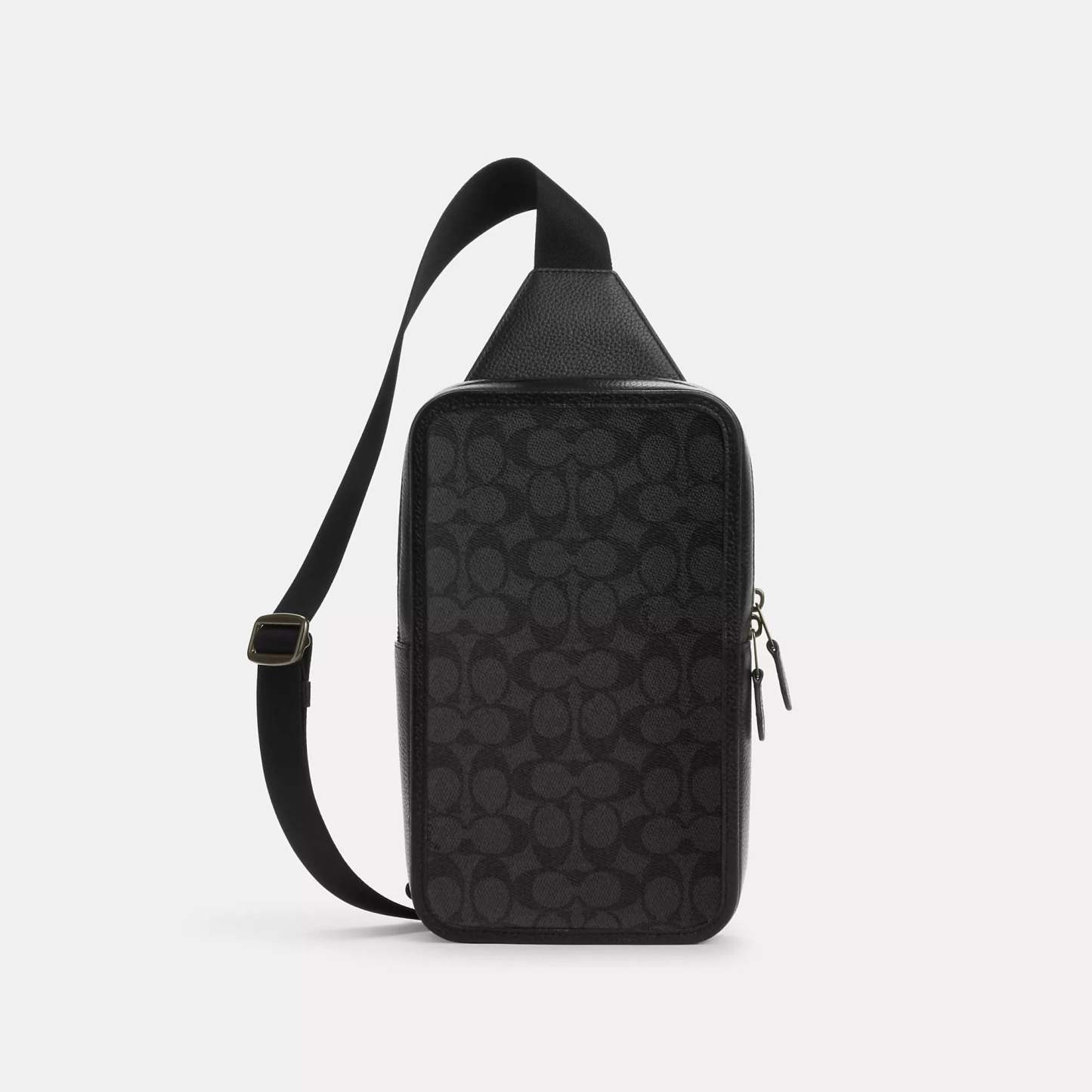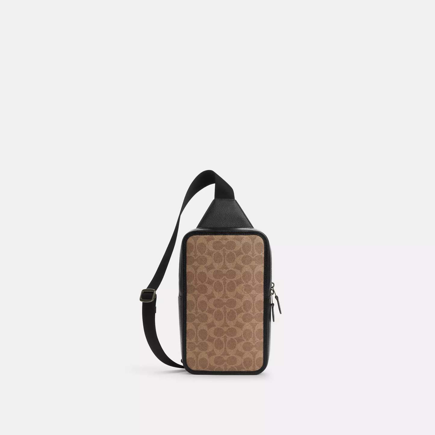 Signature coated canvas and refined pebble leather Inside multifunction pocket Zip closure fabric lining Adjustable shoulder strap with 41 1/4 length for crossbody wear (clip left or right) 6 1/4 (L) x 10 1/2 (H) x 2 1/4 (W) Style No. CZ397 | Coach Outlet Sullivan Pack In Signature Canvas - Multi