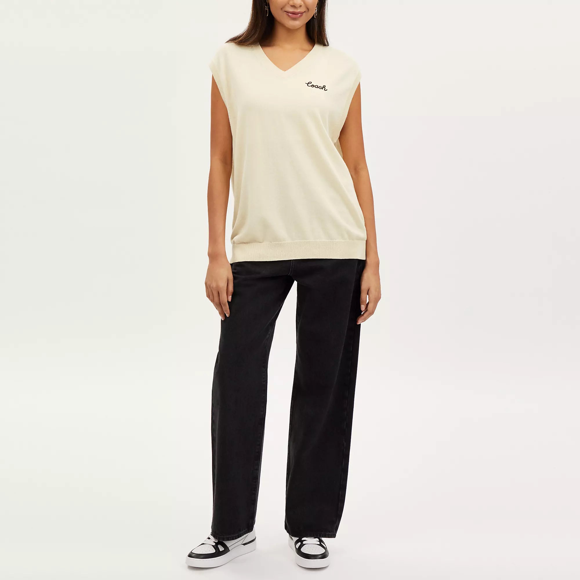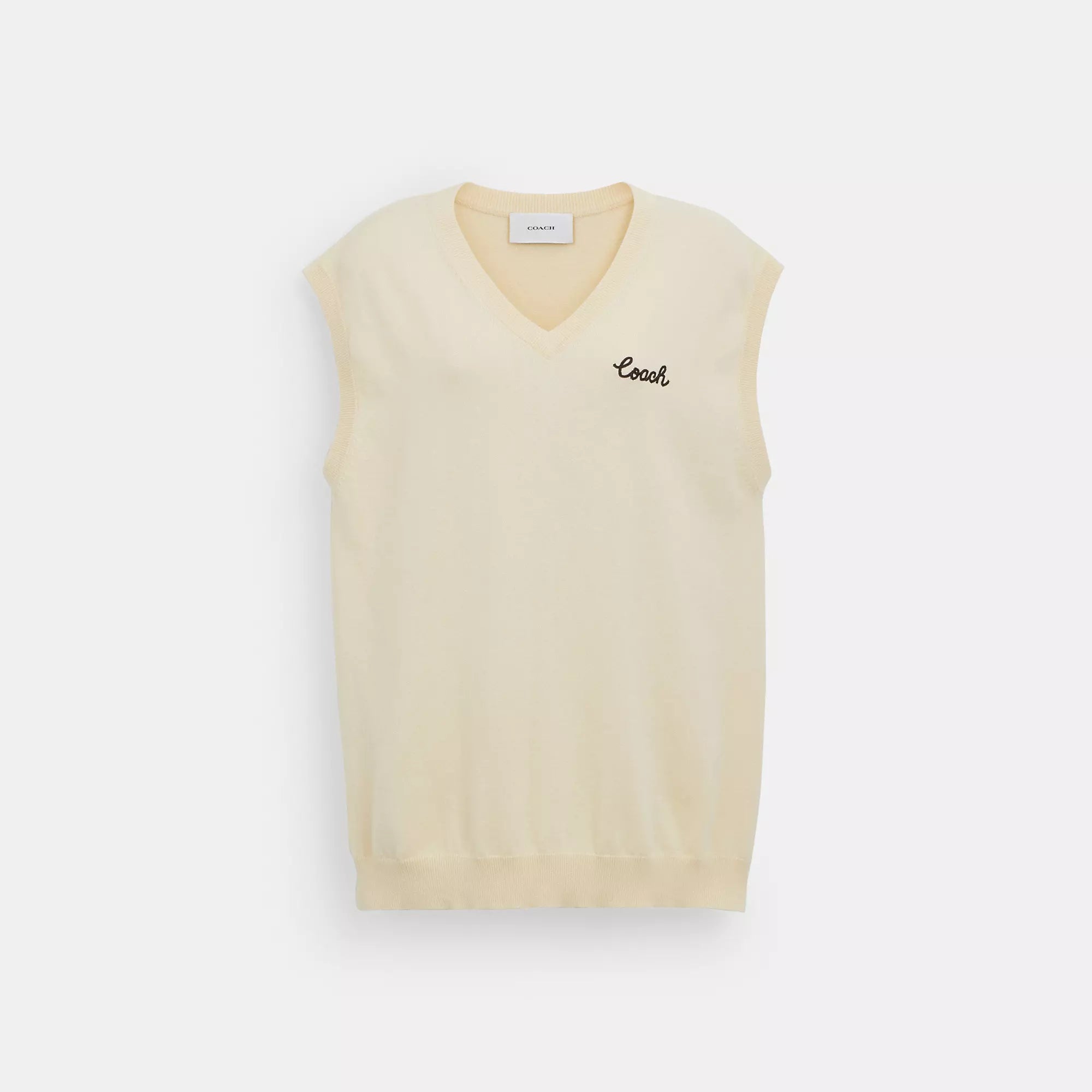 84% cotton 16% cashmere Length - 26 Model is 5'10 (178cm) chest 31 (79cm) waist 24 (61cm) hips 35 (89cm) and wears a size S Style No. CQ844 | Coach Outlet Sweater Vest - Beige, Size - 2X-Small