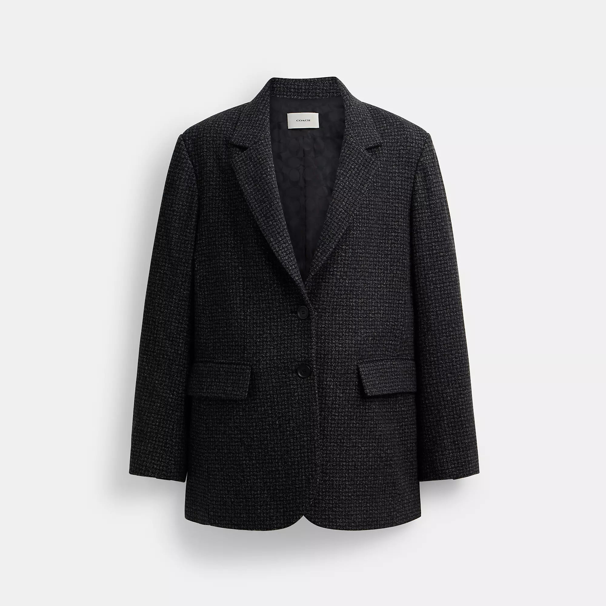 58% wool 24% polyester 11% polyamide 7% acrylic Body lining - 58% polyester 42% viscose Sleeve lining - 56% polyester 44% viscose Button closure Flap pockets Length - 31 Dry clean Model is 5'10 (178cm) chest 31 (79cm) waist 24 (61cm) hips 35 (89cm) and wears a size S Style No. CV313 | Coach Outlet Tailored Wool Jacket - Black, Size - 2X-Small
