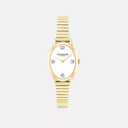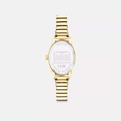 Gold tone case and stretch bracelet Approx. case diameter - 22mm Mineral crystal Quartz movement Slip-on Water-resistant to 99 feet Style No. CAZ16 | Coach Outlet Talia Watch, - Yellow, Size - 22 Mm