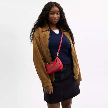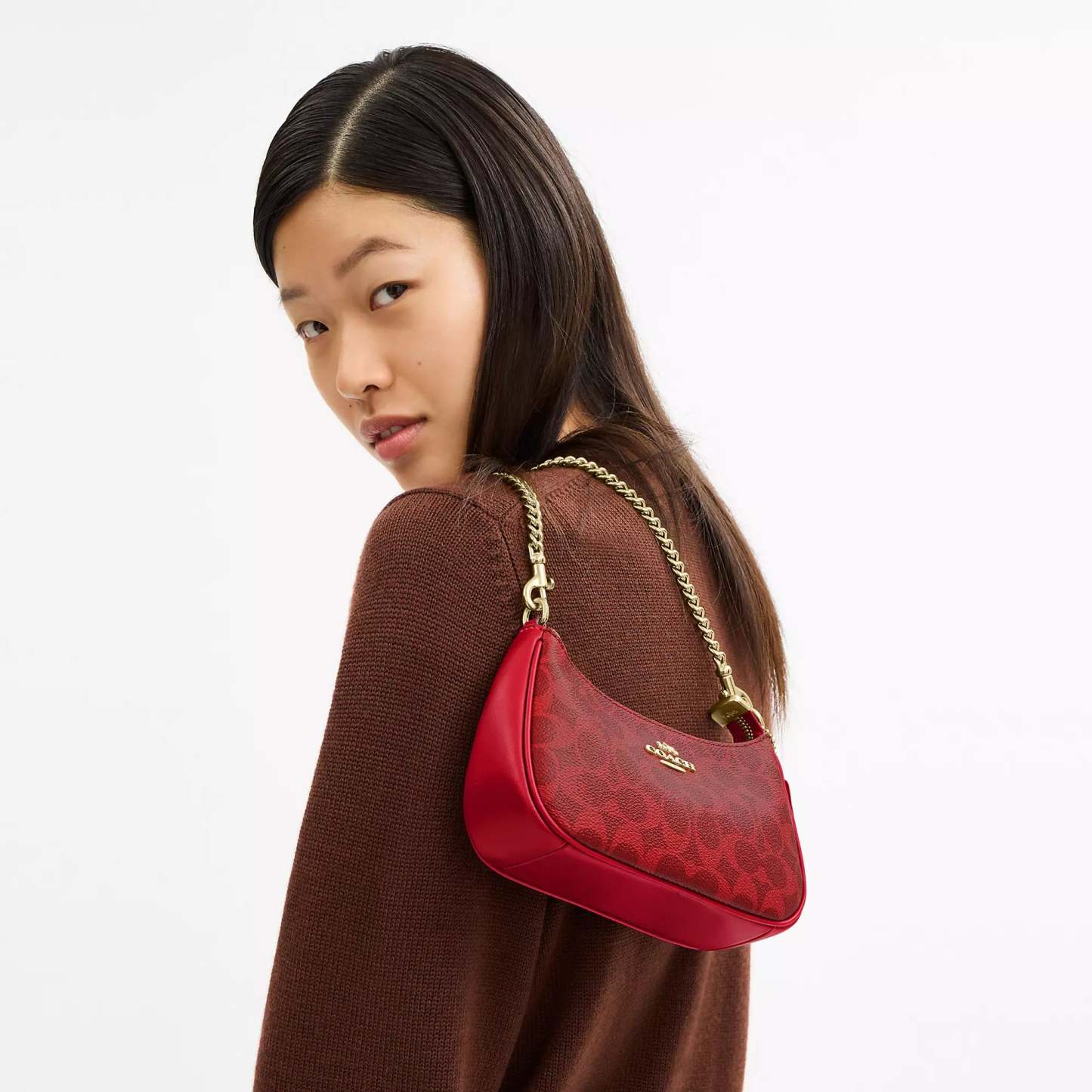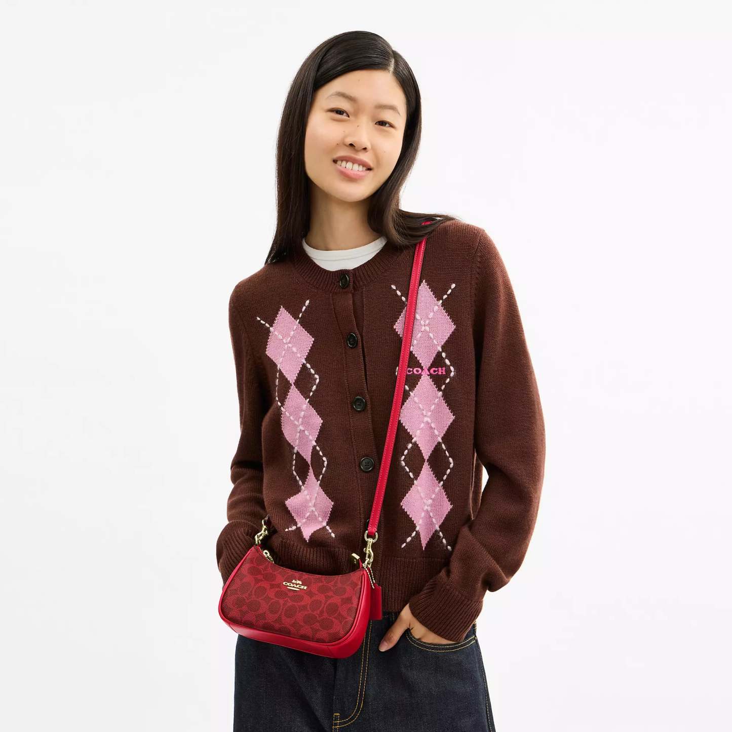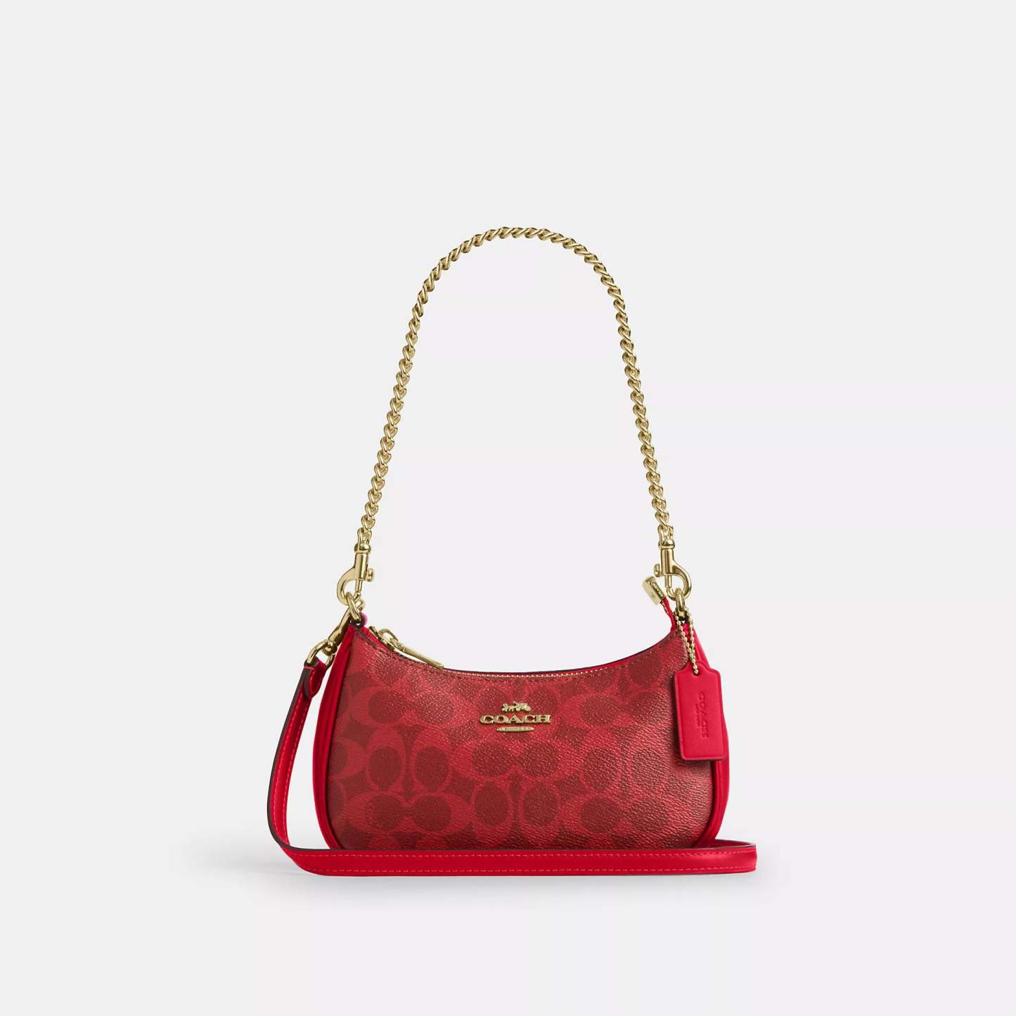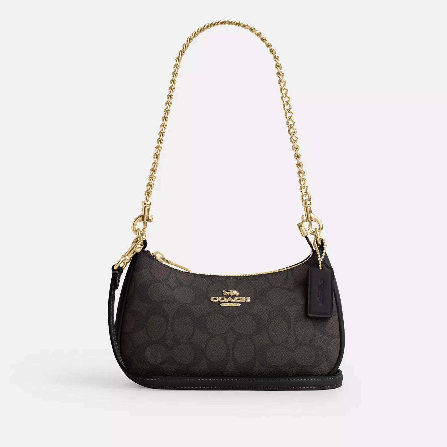 Signature coated canvas Two credit card slots Inside snap pocket Zip closure fabric lining Detachable short strap with 8 3/4 drop Detachable long strap with 22 1/2 drop for shoulder or crossbody wear 7 3/4 (L) x 5 (H) x 2 1/4 (W) Style No. CW323 | Coach Outlet Teri Mini Crossbody Bag In Signature Canvas - White