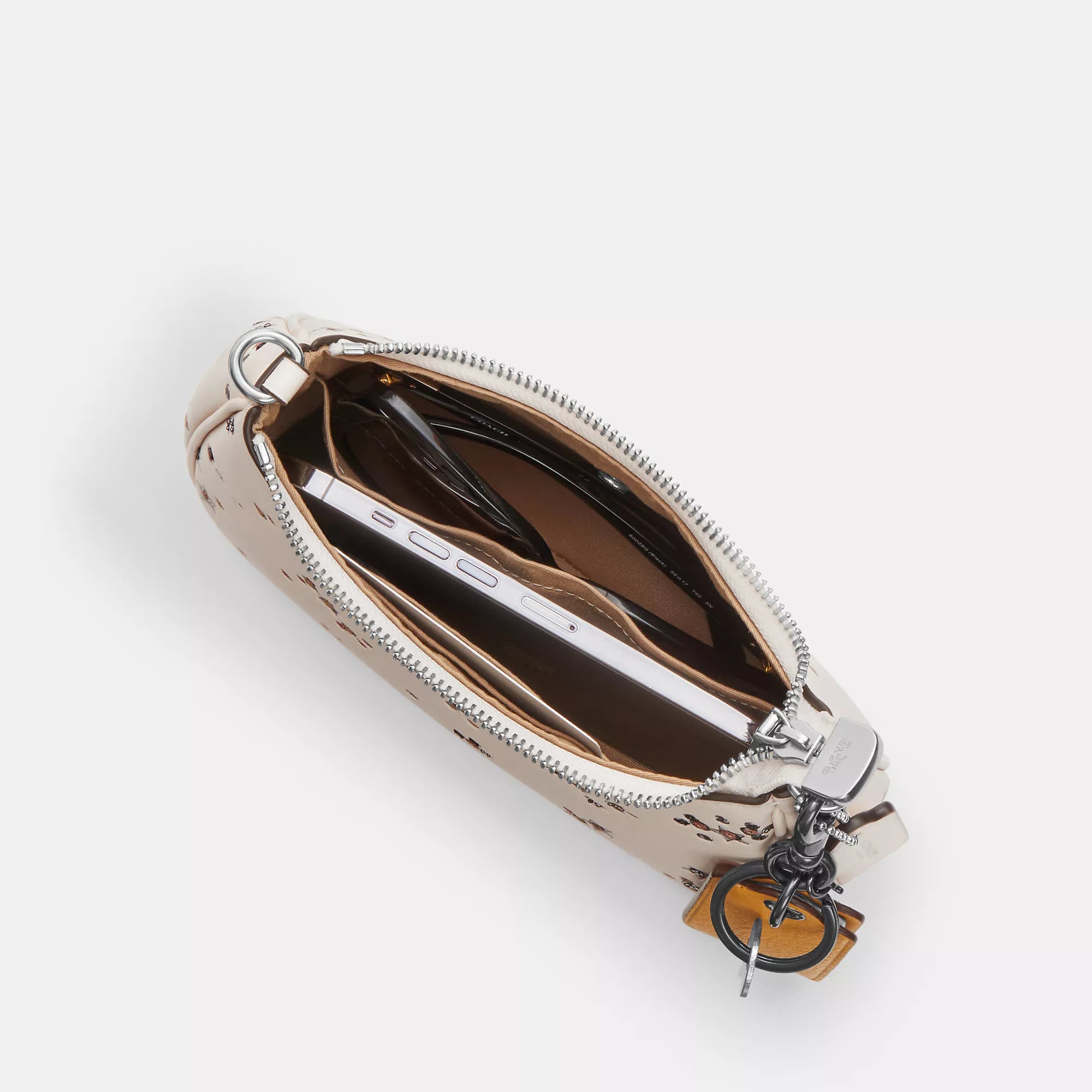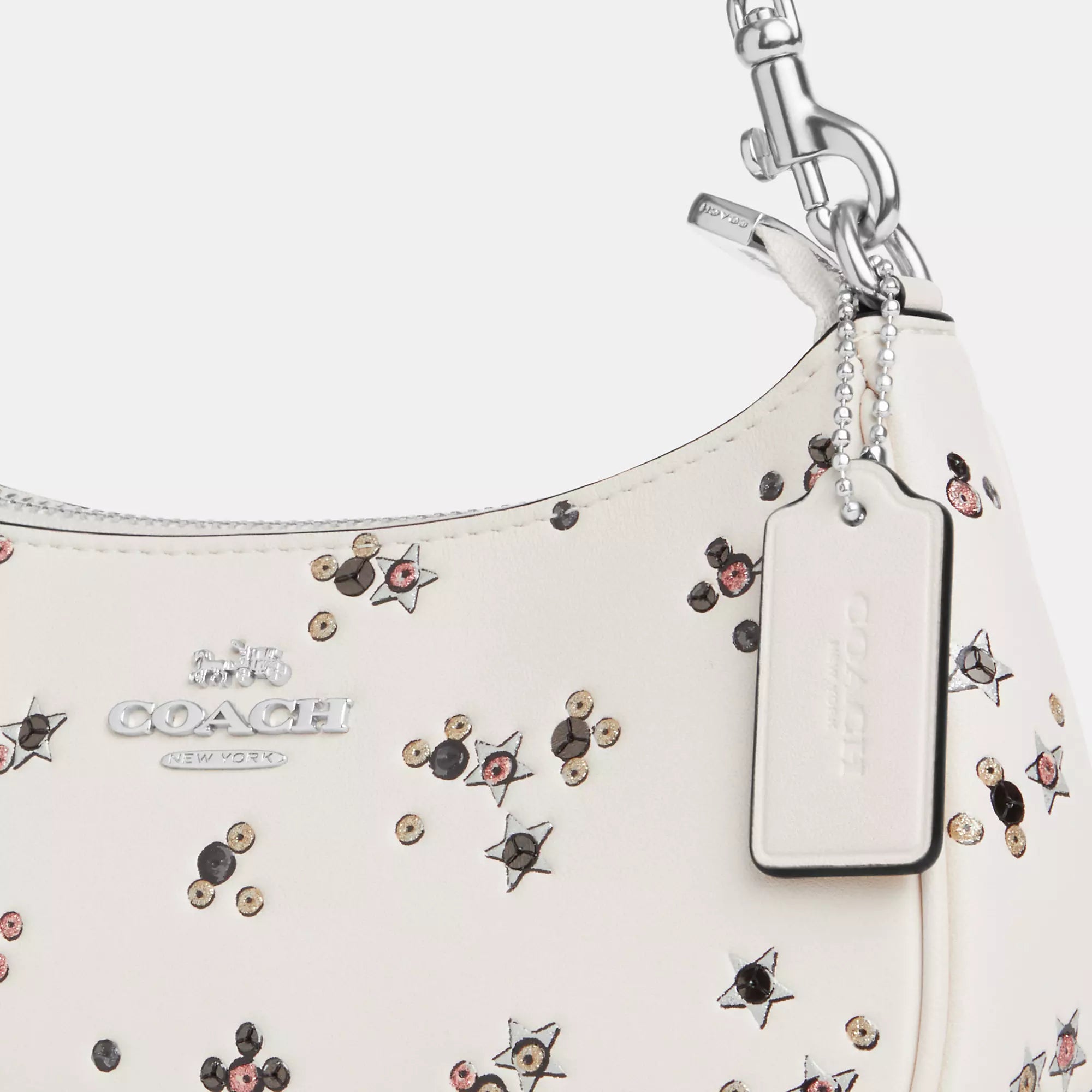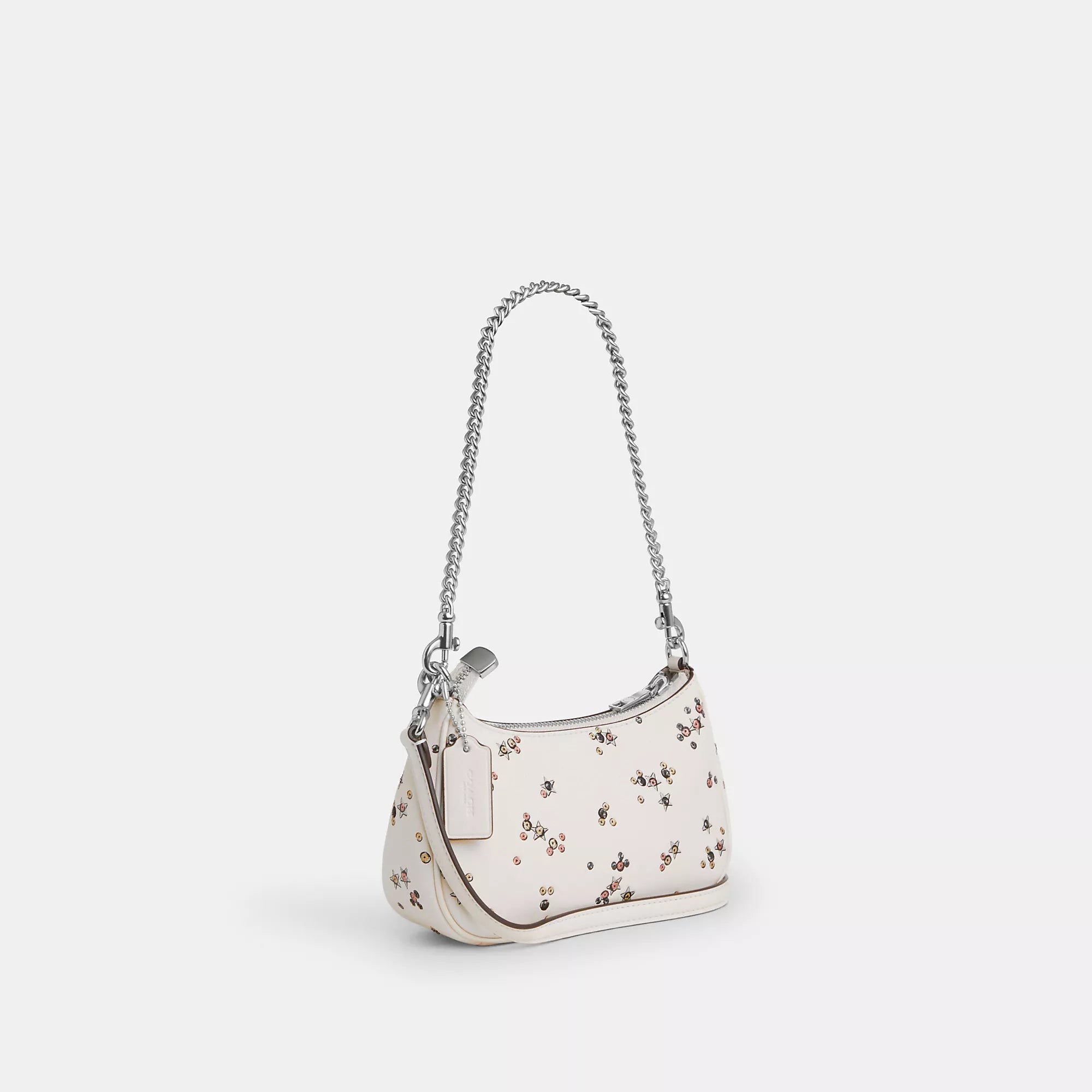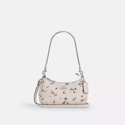Smooth leather Two credit card slots Inside snap pocket Zip-top closure fabric lining Detachable short strap with 8 3/4 drop Detachable long strap with 22 1/2 drop for shoulder or crossbody wear 7 3/4 (L) x 5 (H) x 2 1/4 (W) Style No. CCE46 | Coach Outlet Teri Mini Crossbody Bag With Star Print - White