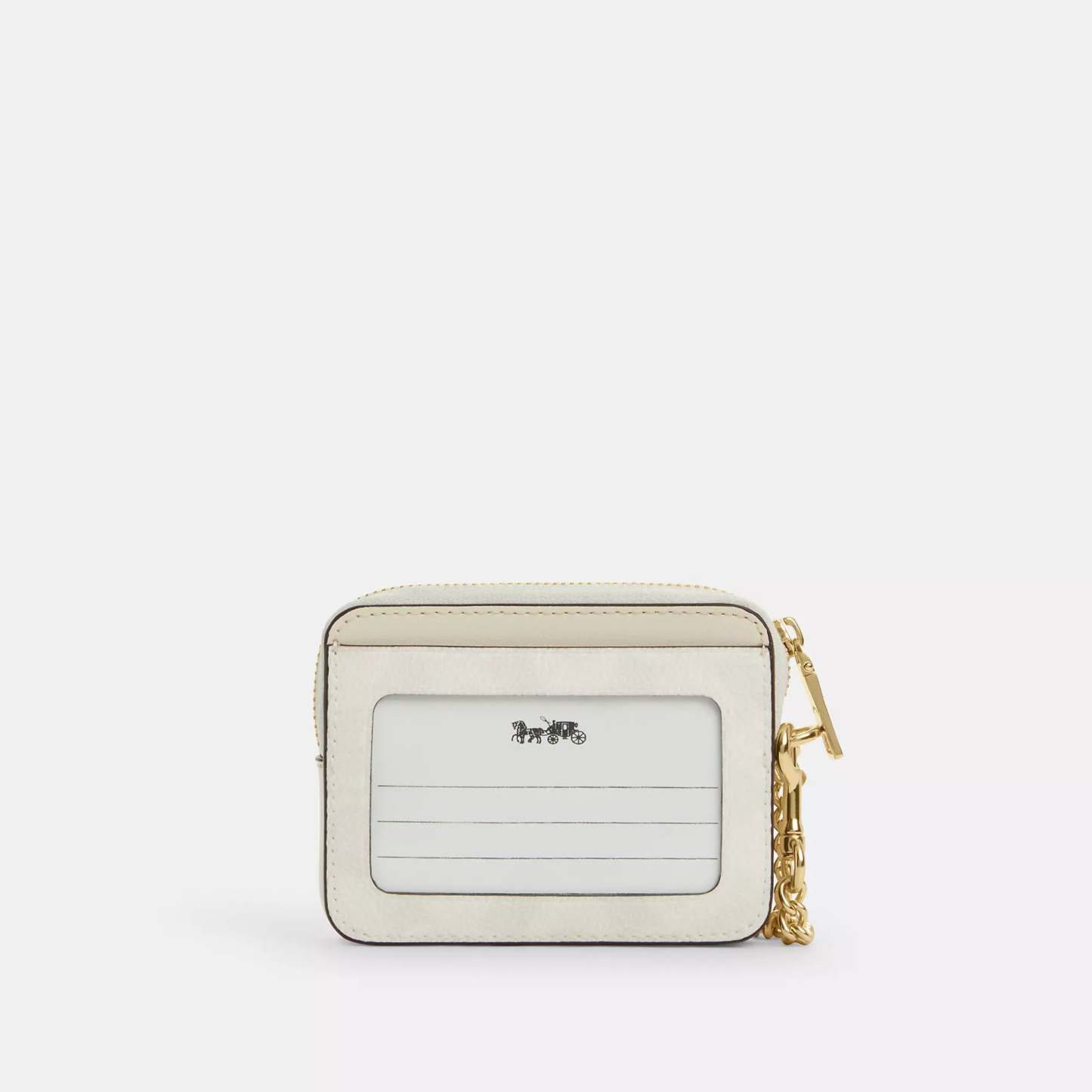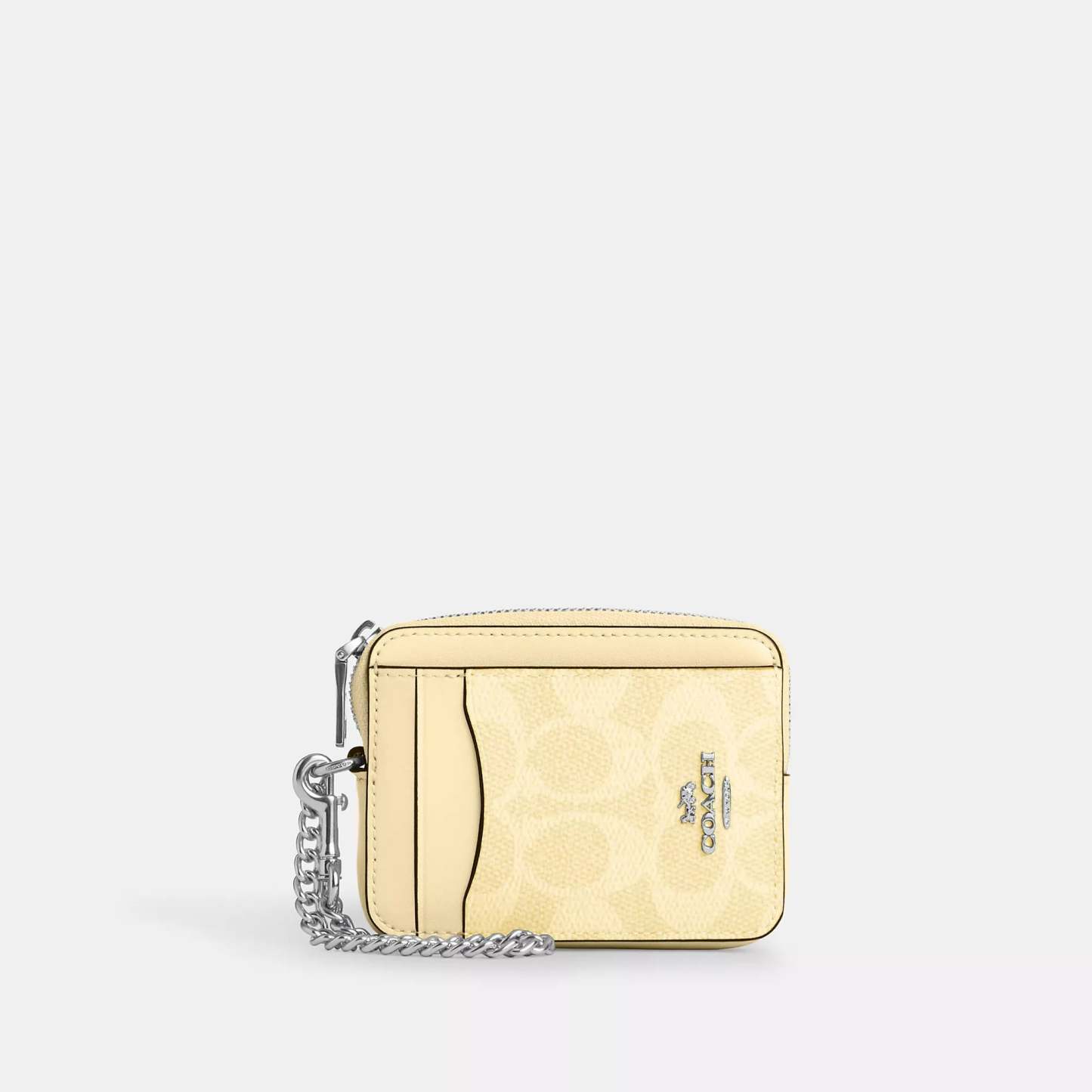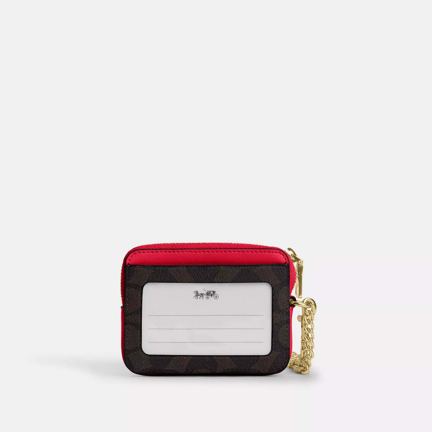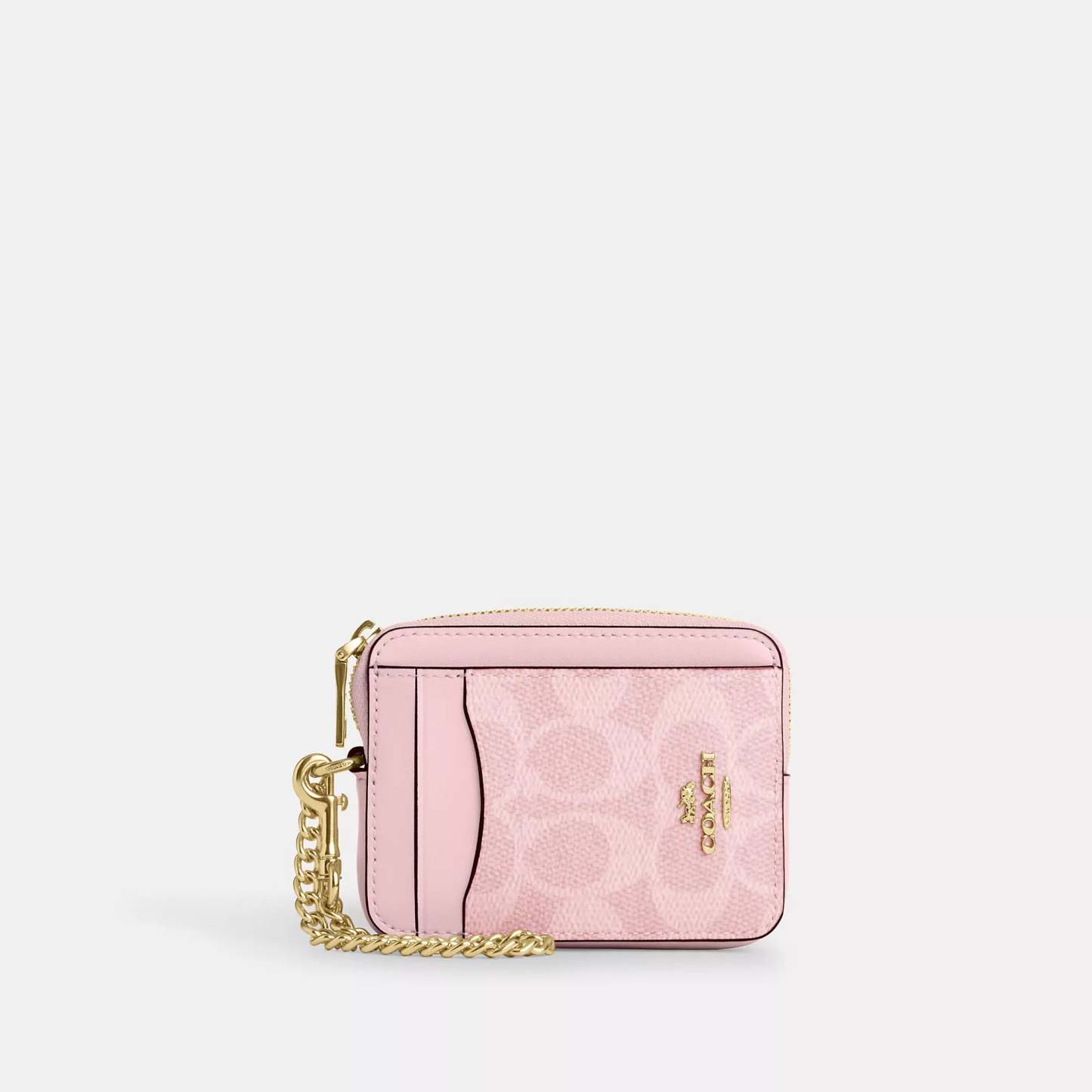 Signature coated canvas Two credit card slots ID window Open pocket Zip compartment Chain wrist strap with dogleash clip attached 3 (L) x 4 1/4 (H) x 3/4 (W) Style No. CW883 | Coach Outlet Zip Card Case In Signature Canvas - Multi