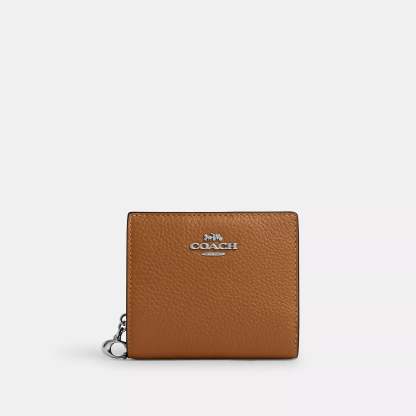 Refined pebble leather Three credit card slots ID window Full-length bill compartment Snap closure Outside zip coin pocket 4 1/4 (L) x 3 1/2 (H) x 1 (W) Style No. C2862 | Coach Outlet Snap Wallet - Orange