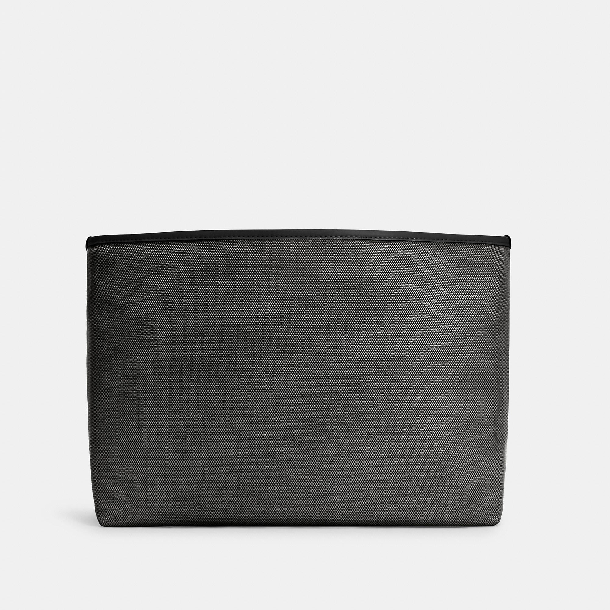 Canvas and smooth leather Inside zip snap and multifunction pockets Fabric lining 17 (L) x 9 1/2 (H) x 6 1/4 (W) Compatible with City Tote and Court Tote Style No. C4812