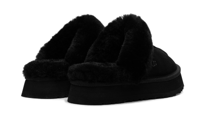 Step into cozy elevation with the UGG Disquette Slipper Wmns "Black". This women's slide features a bold, exaggerated platform sole and a thick, plush sheepskin lining for ultimate warmth. The soft black suede upper and durable outsole make it perfect for running errands or lounging in luxury.