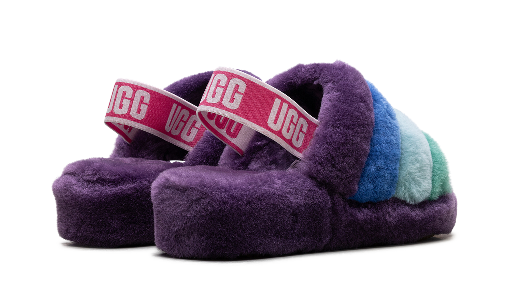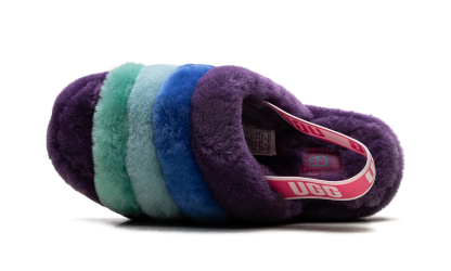 Dare to be bold with the ultra-cozy UGG Fluff Yeah Slide Wmns in vibrant "Purple". This signature slipper-sandal hybrid delivers playful style, perfect for home or strutting outside. Featuring a plush genuine sheepskin upper and lining, this slide feels incredibly soft with every step. The lightweight, cushioned platform sole is secured by an elastic slingback strap, providing stability and lift for a look that's as comfortable as it is eye-catching.