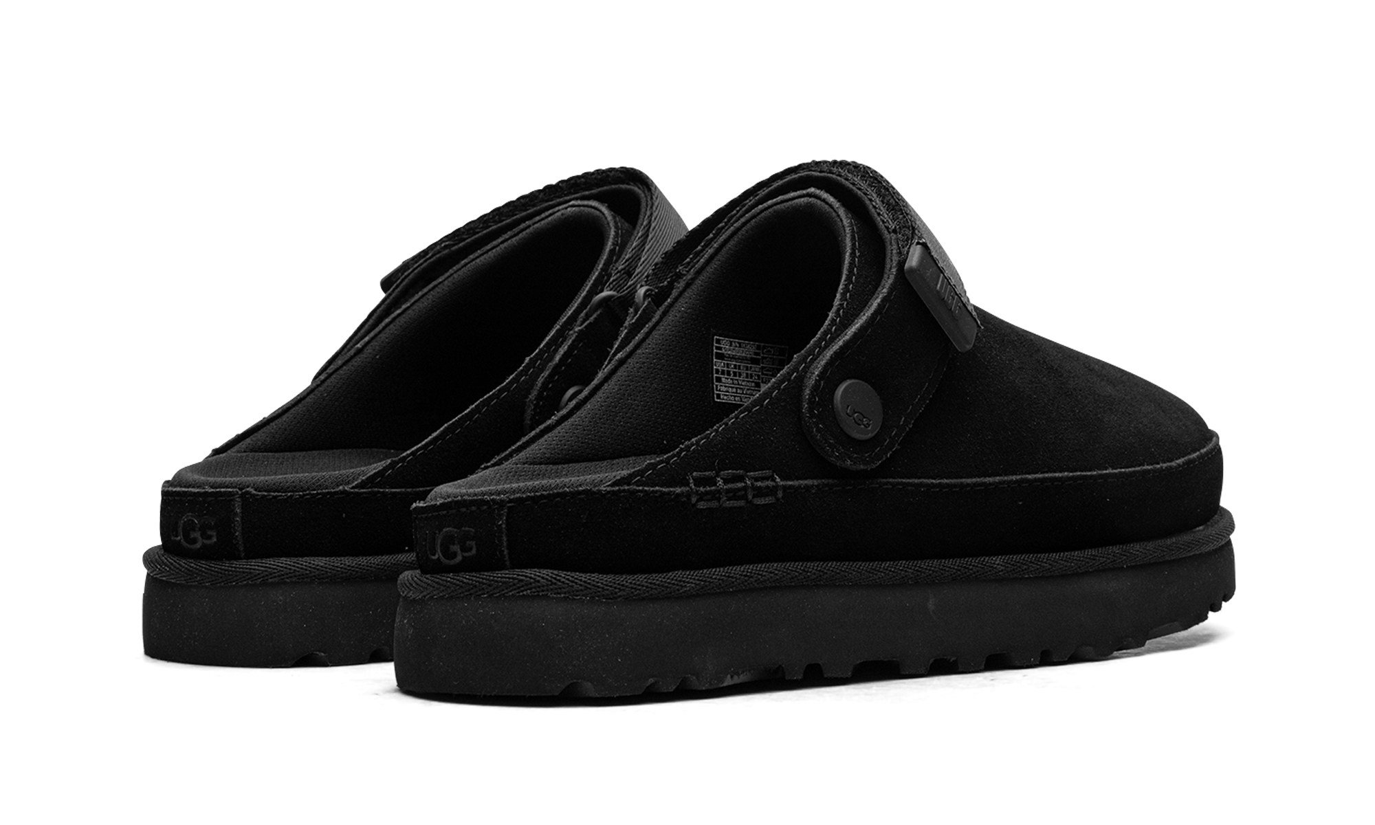 Own the versatile comfort of the UGG Goldenstar Clog WMNS "Black". This stylish women's clog features a premium black suede upper and a convenient convertible heel strap that pivots for a secure fit or simple slip-on entry. Built on a cushioned SugarSole™ EVA outsole made from renewable sugarcane, it offers all-day support with reduced fossil fuel reliance. This modern silhouette provides the ultimate blend of lightweight ease and confident, year-round style.