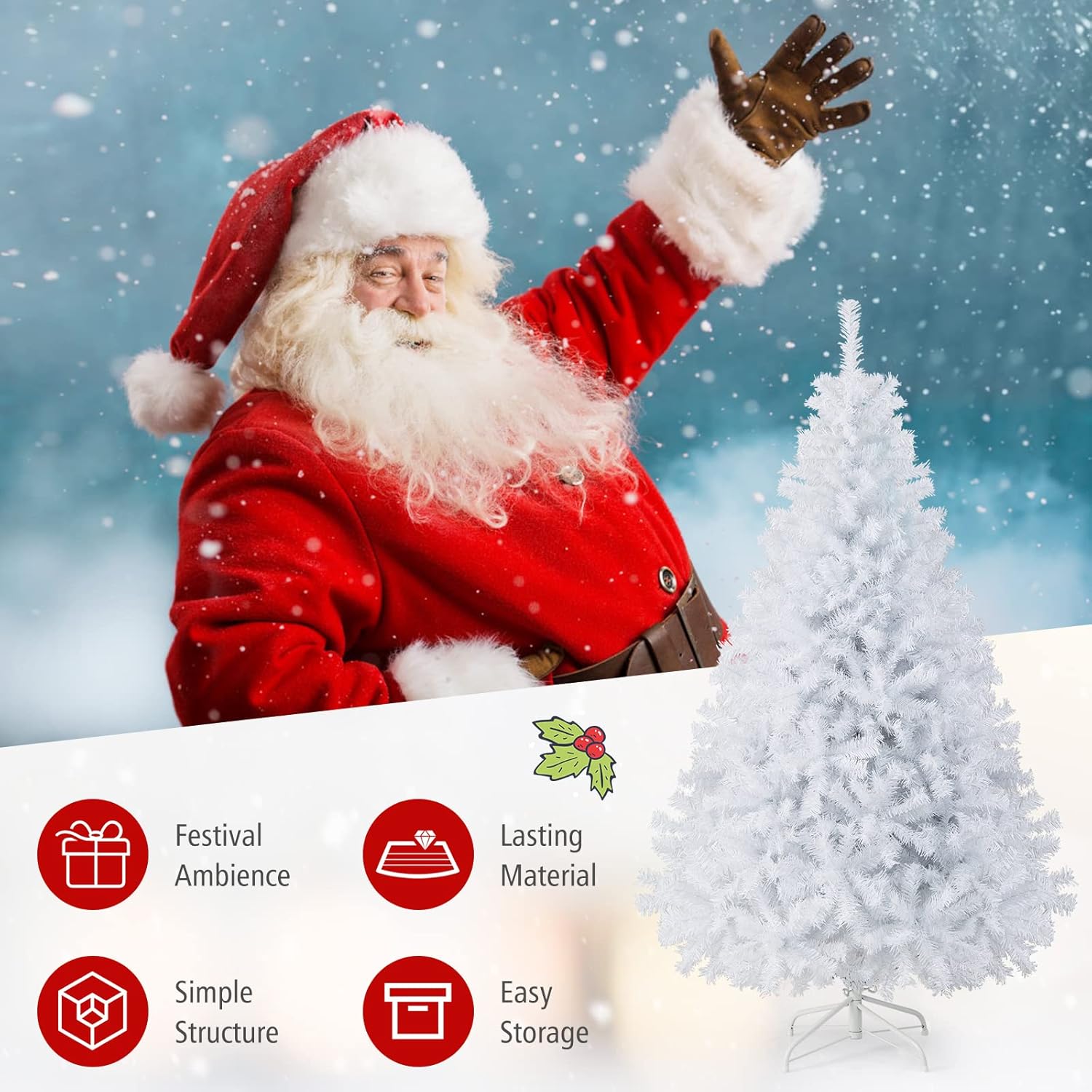 Vivid & Full Appearance: Transform your holiday decor with our 5ft artificial Christmas tree, featuring 350 lush branch tips and a full-bodied shape. Its verdant leaves create a vibrant and festive atmosphere, perfect for adding holiday cheer to any space.