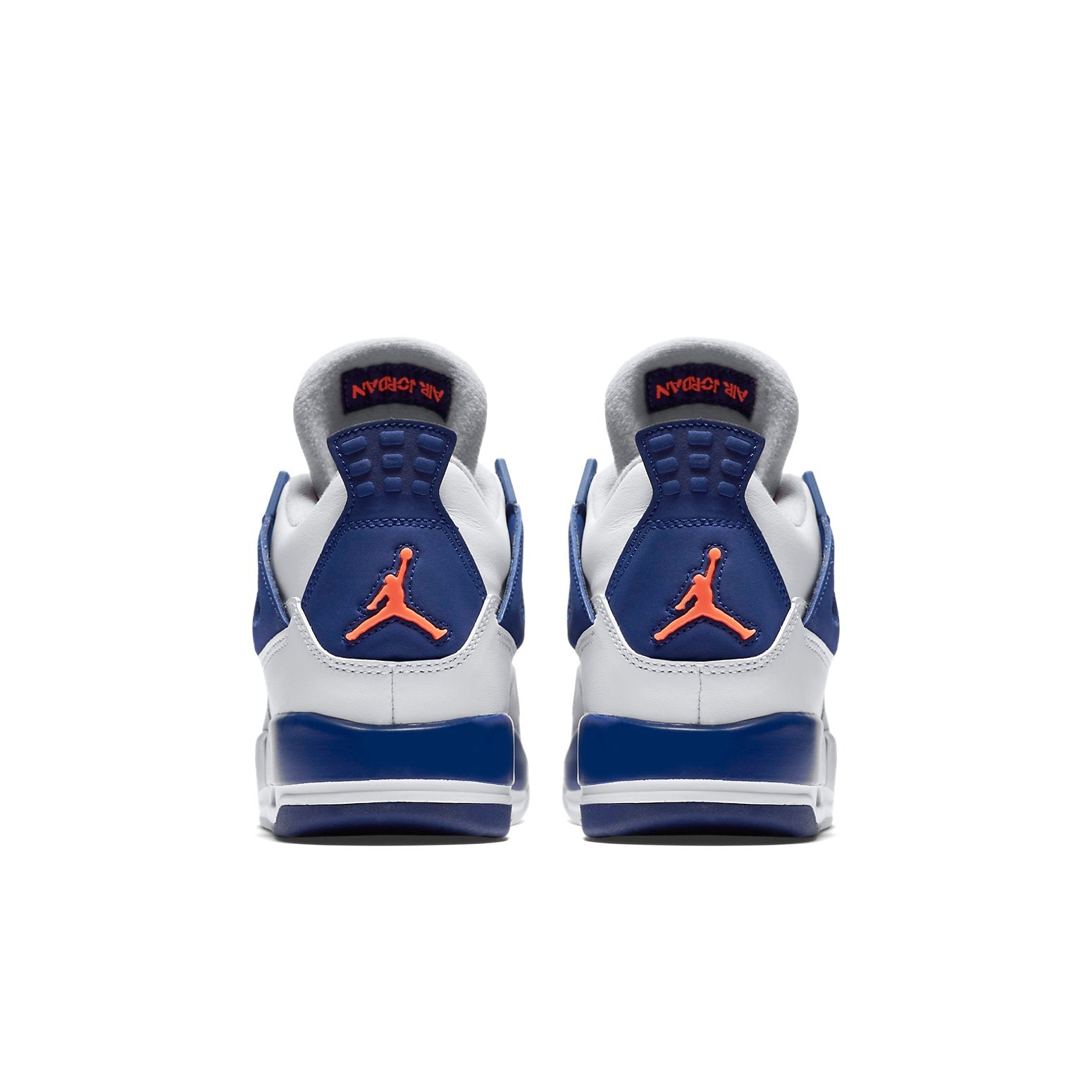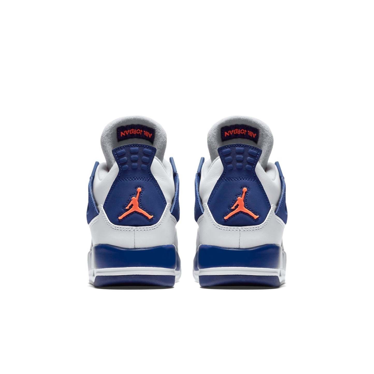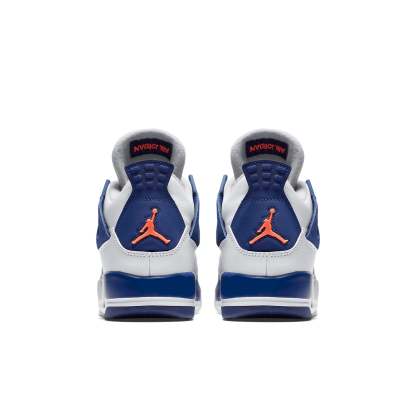 The Air Jordan 4 GS ‘Deep Royal Blue’ sneaker is a clean, tri-toned design that is perfect for the kids. This sneaker was designed by Tinker Hatfield and debuted in 1989 as the first global release for the Jordan franchise. The Air Jordan 4 has been updated in countless colorways since its debut, but this ‘Deep Royal Blue’ version is definitely one of the best. The white leather upper is accented perfectly with hits of ‘Wolf Grey’ on the heel collar, lining and as an overlay on the toe box. The branding is also done in ‘Hyper Orange’, which really pops against the blue and white.