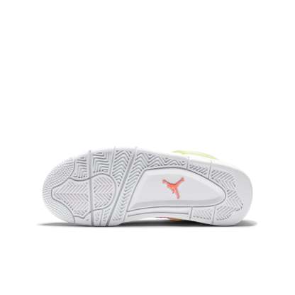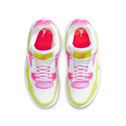This Kids Nike Air Jordan 4 Retro GS "White Lemon Pink" continues the excellence of the AJ4 line. This pair is using kids favorite colors neon Lemon Venom/Pink Blast on the white to create irresistible cuteness. With AJ4's signature visible Air-Sole unit and red inner softpad, all kids are gonna wear this all day long.