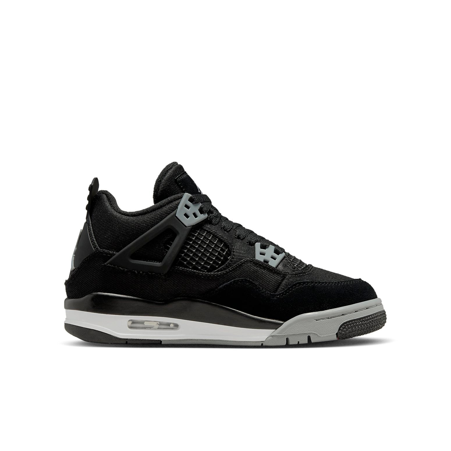 The Air Jordan 4 Retro SE 'Black Canvas' is a unisex sneaker that is perfect for any activity. Its sleek silhouette and rubber sole make it a comfortable and stylish choice. The black and gray colorway is inspired by the iconic basketball star Michael Jordan and his relentless pursuit of excellence. This sneaker is perfect for kids who want to stay active and look great while doing it. The Air Jordan 4 Retro SE 'Black Canvas' is a timeless classic that will never go out of style.